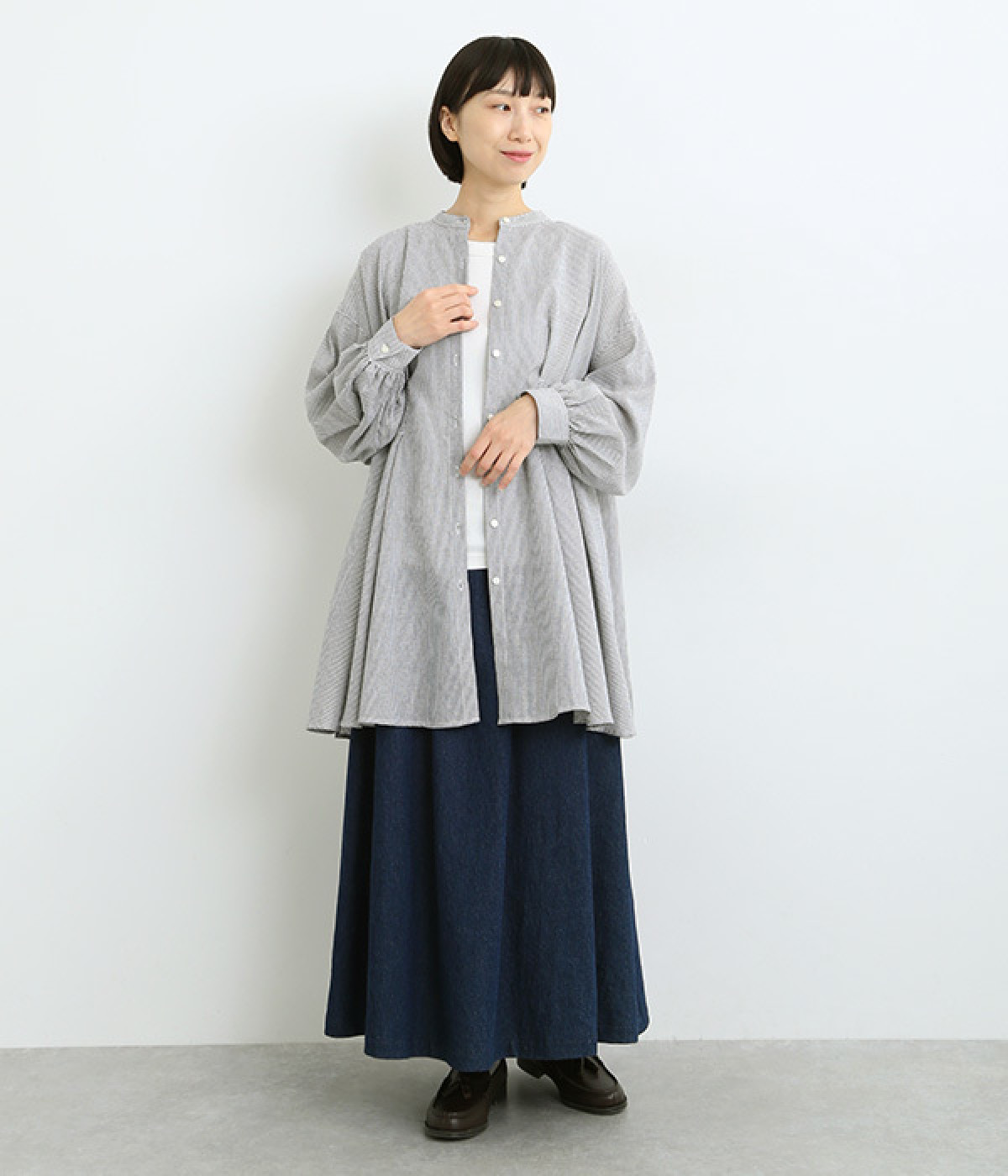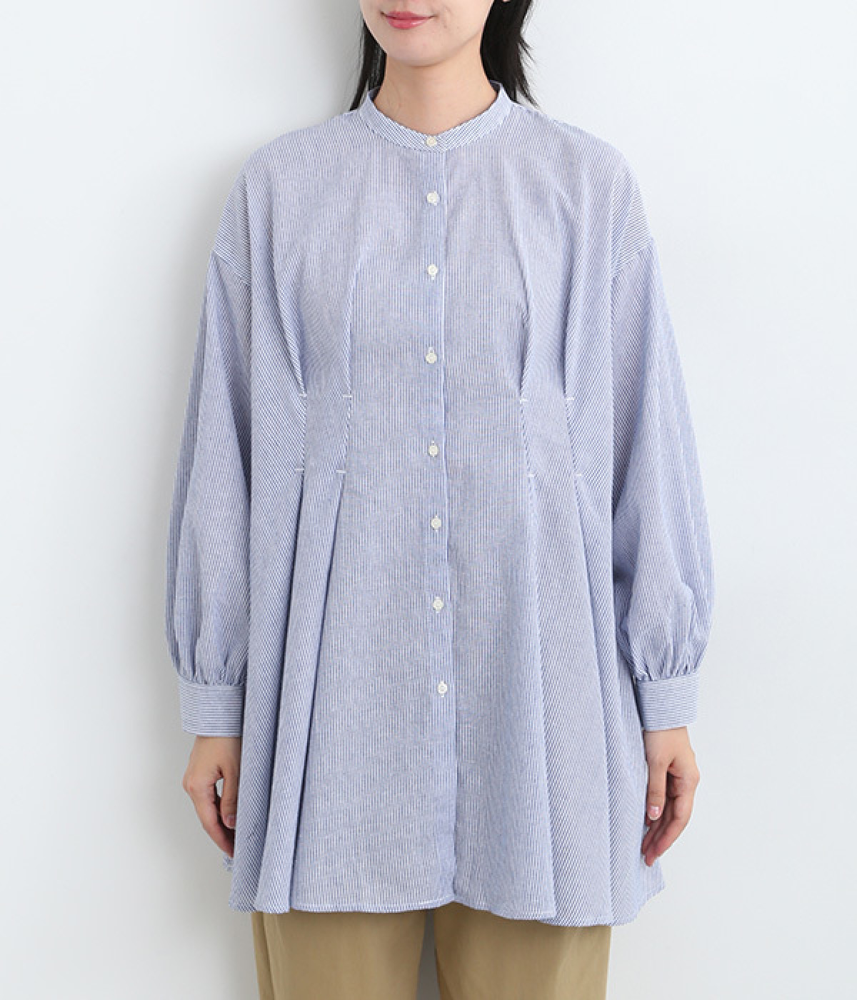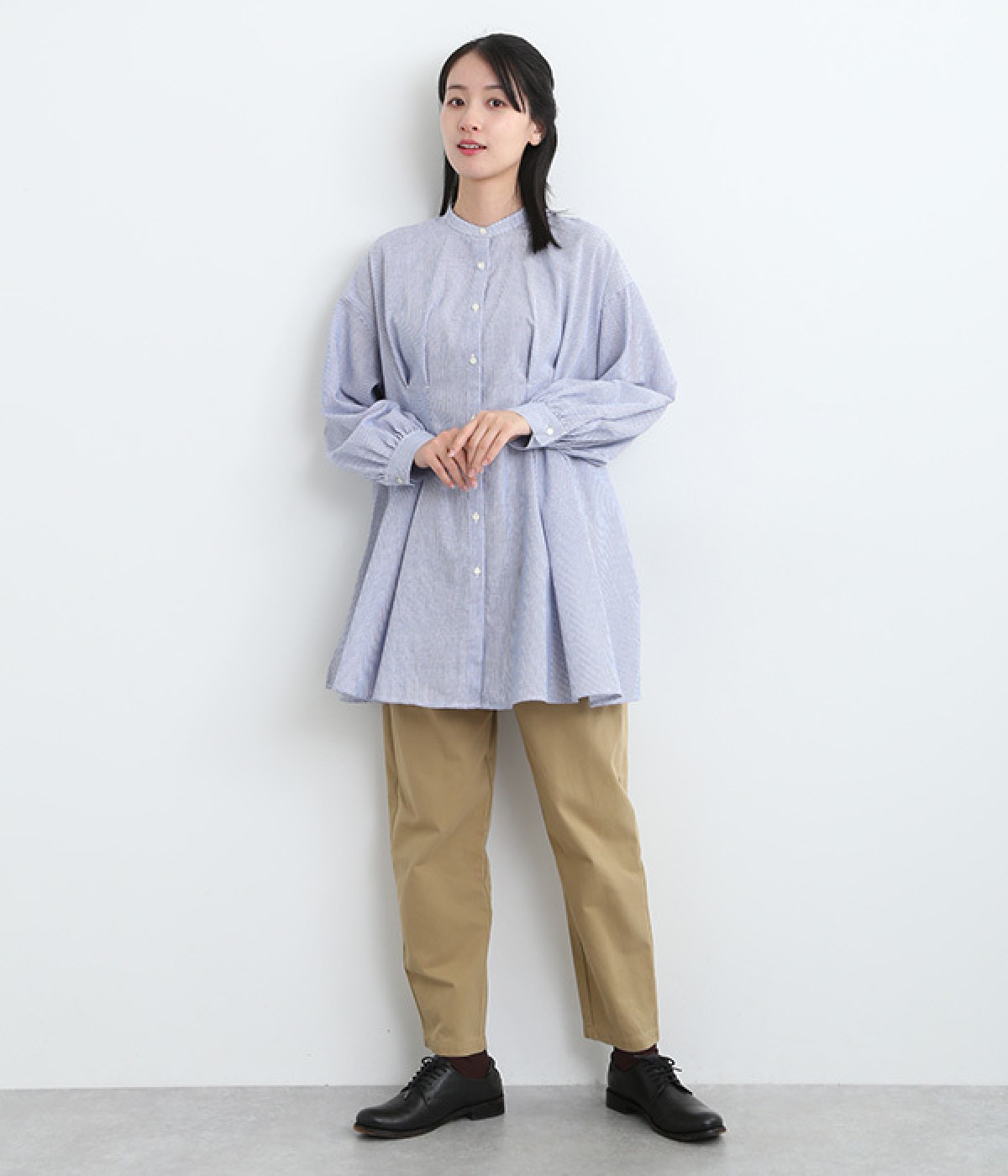 身頃のタックで立体感を出して、おなか&ヒップまわりをカバー