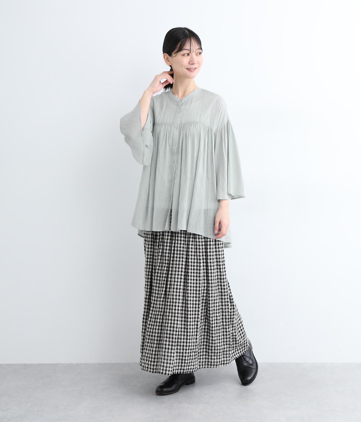 涼しげな印象を与える軽やかなボイル素材で仕立てました。肌に張りつきにくい、さらりとした肌ざわりが汗ばむ季節も快適な着心地です。
