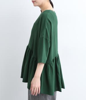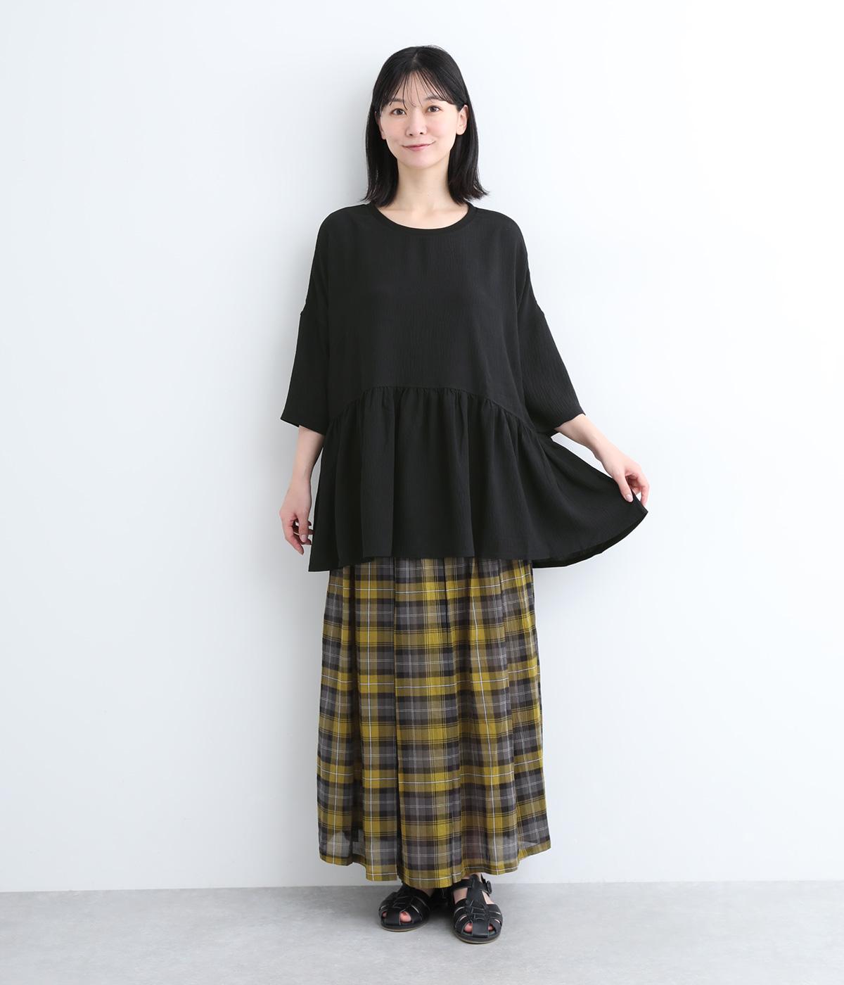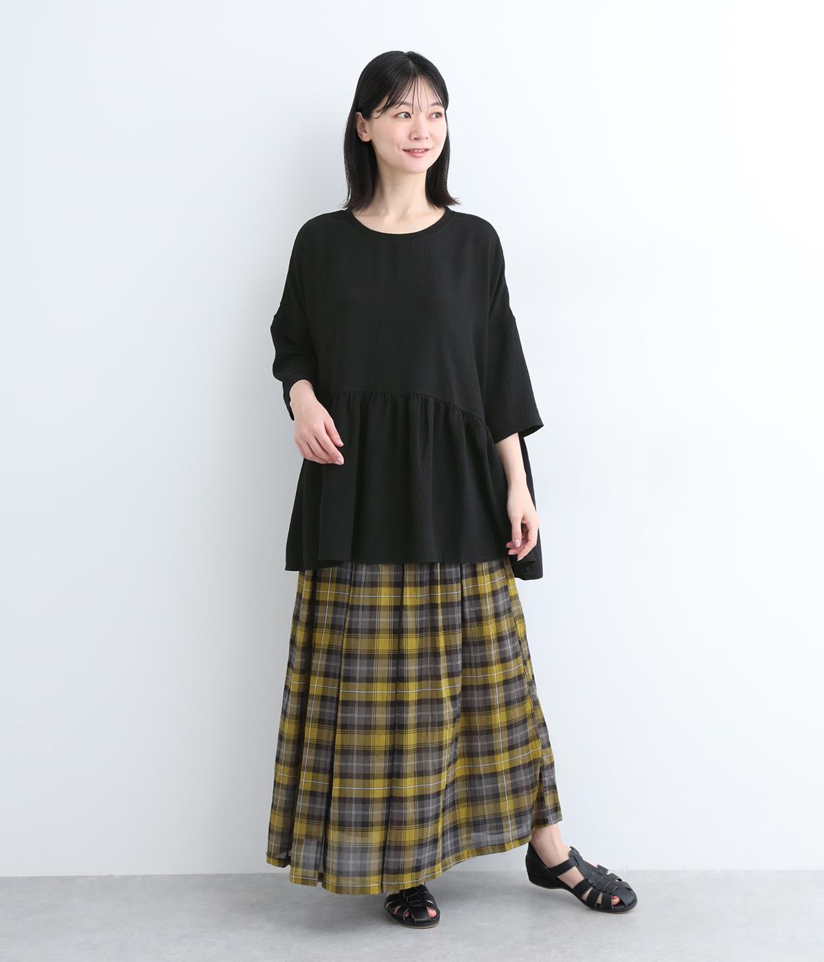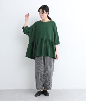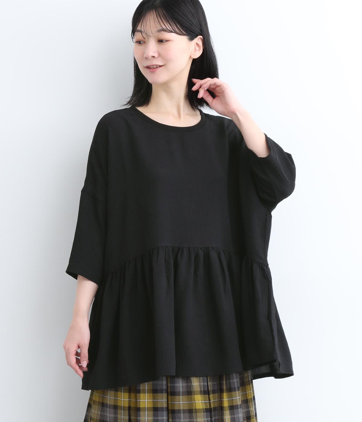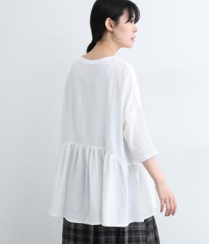 ウエスト部分に切り替えをいれた、ふんわりと軽やかなペプラムラインのプルオーバーです。袖は肘が隠れる7分袖で、ロングシーズン着まわせるのが嬉しいポイント。アクセサリーなどを組み合わせて、ニュアンスの変化を楽しむのもおすすめです。