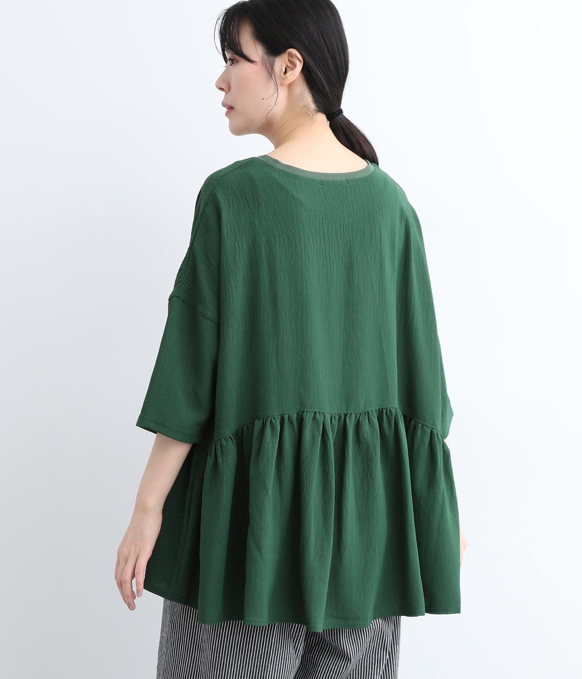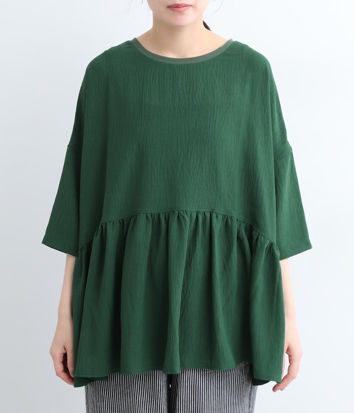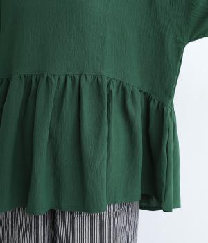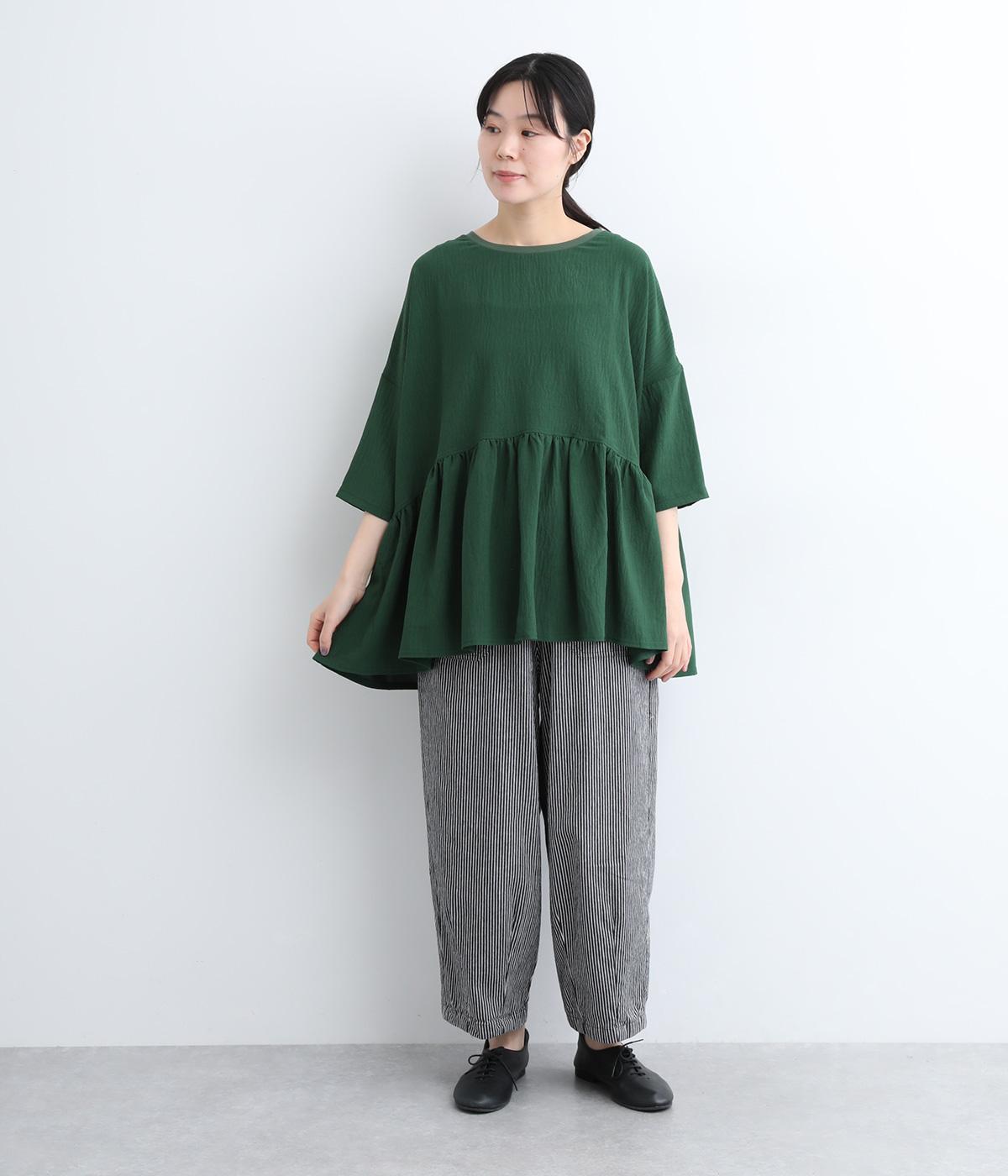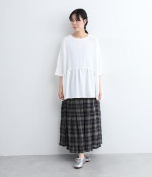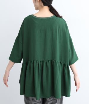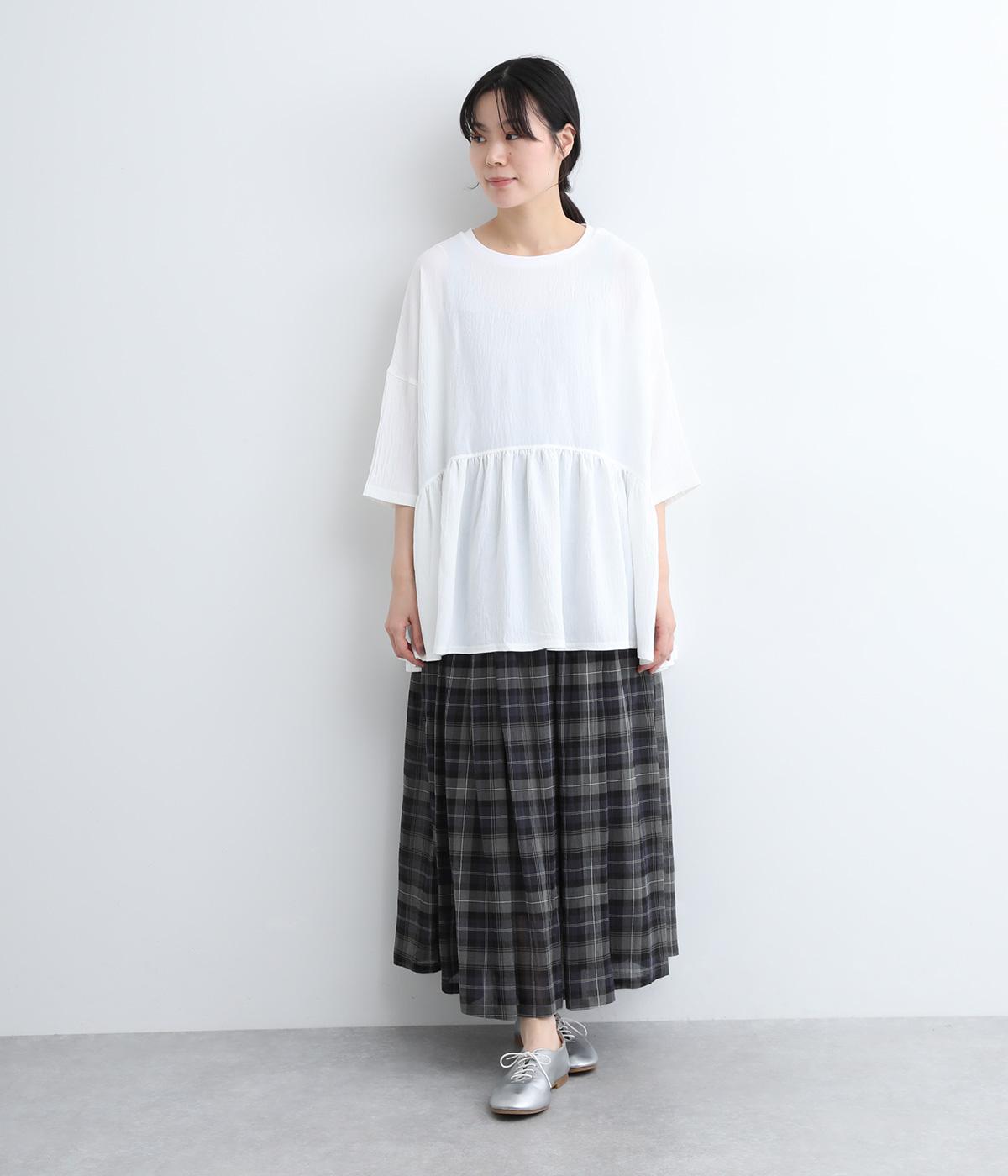 ウエスト部分に切り替えをいれた、ふんわりと軽やかなペプラムラインのプルオーバーです。袖は肘が隠れる7分袖で、ロングシーズン着まわせるのが嬉しいポイント。アクセサリーなどを組み合わせて、ニュアンスの変化を楽しむのもおすすめです。
