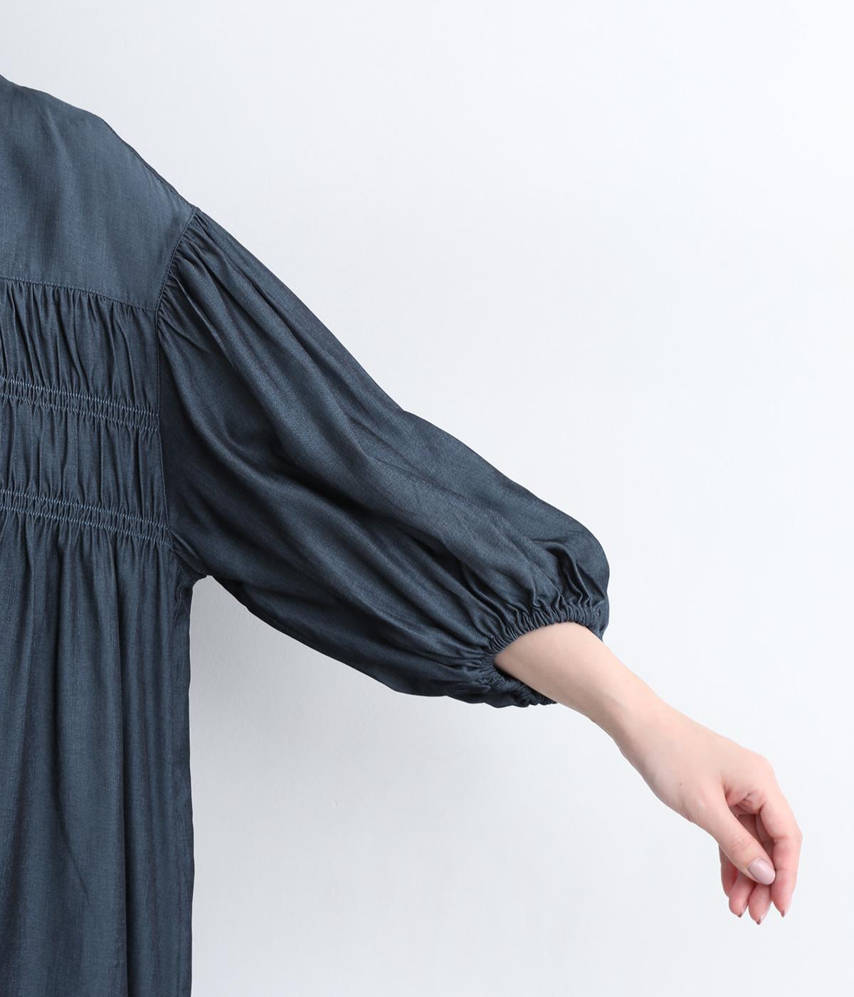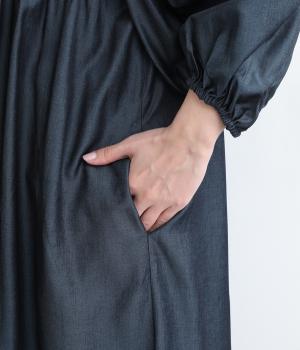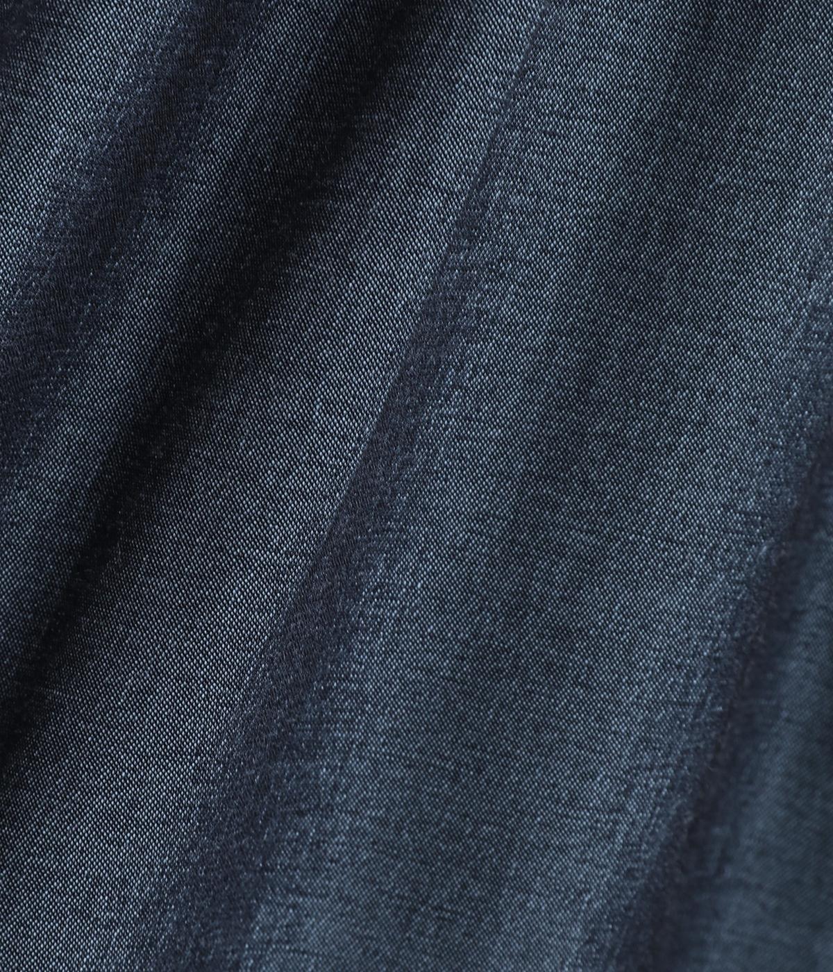 きれいめな印象に仕立てた、デニムライクなレーヨン混紡素材です。さらりとした滑らかな肌ざわりと、優しい光沢感が品の良さを高めます。