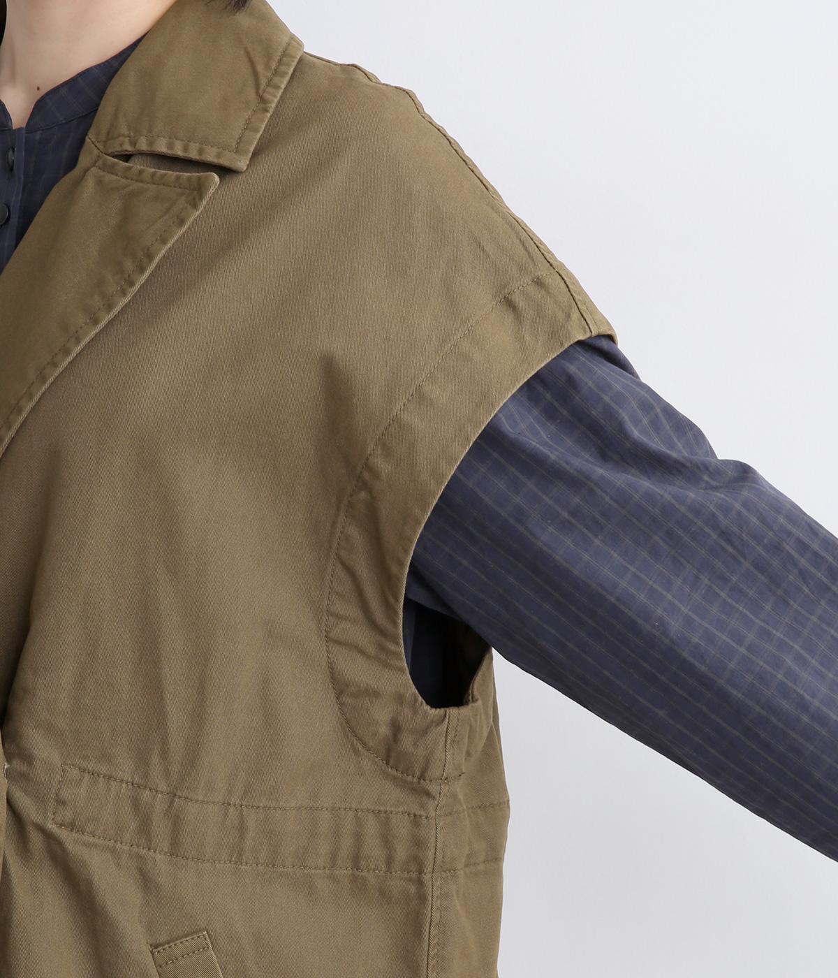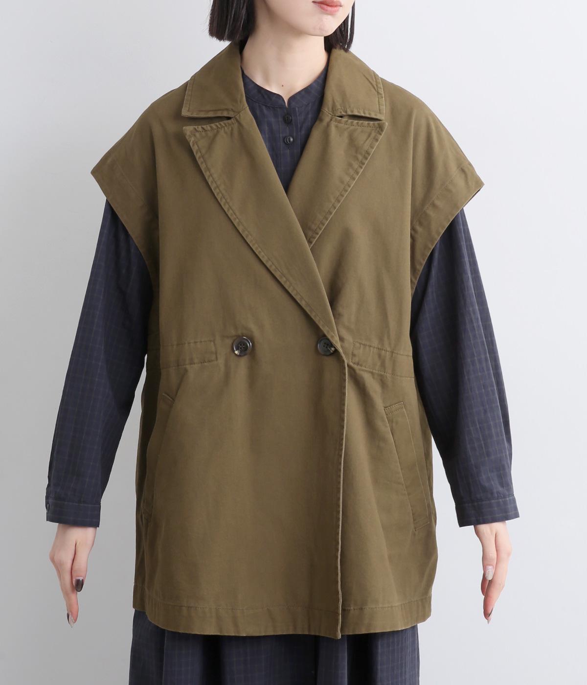 ツイルダブルテーラーフレンチベスト(カーキ-F)
