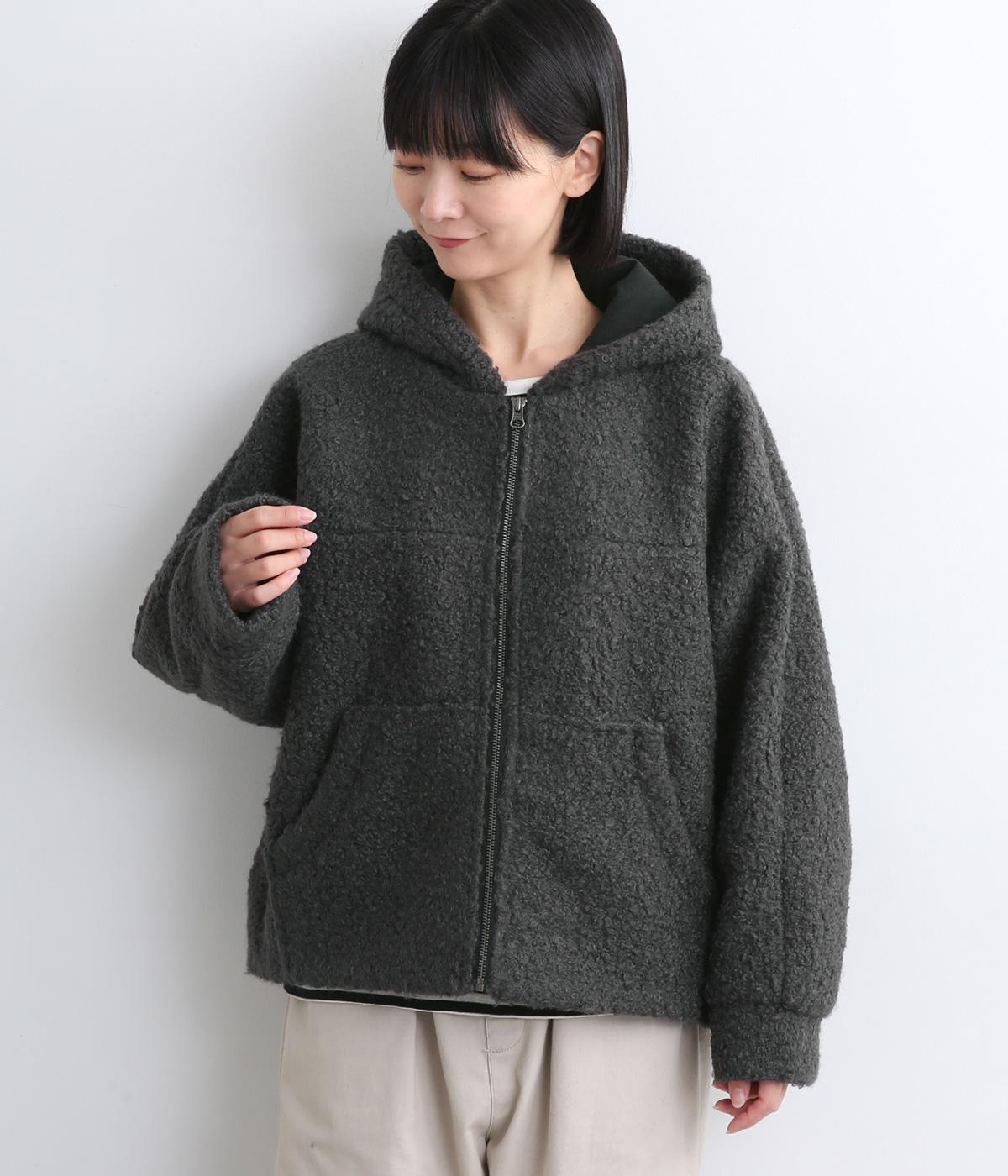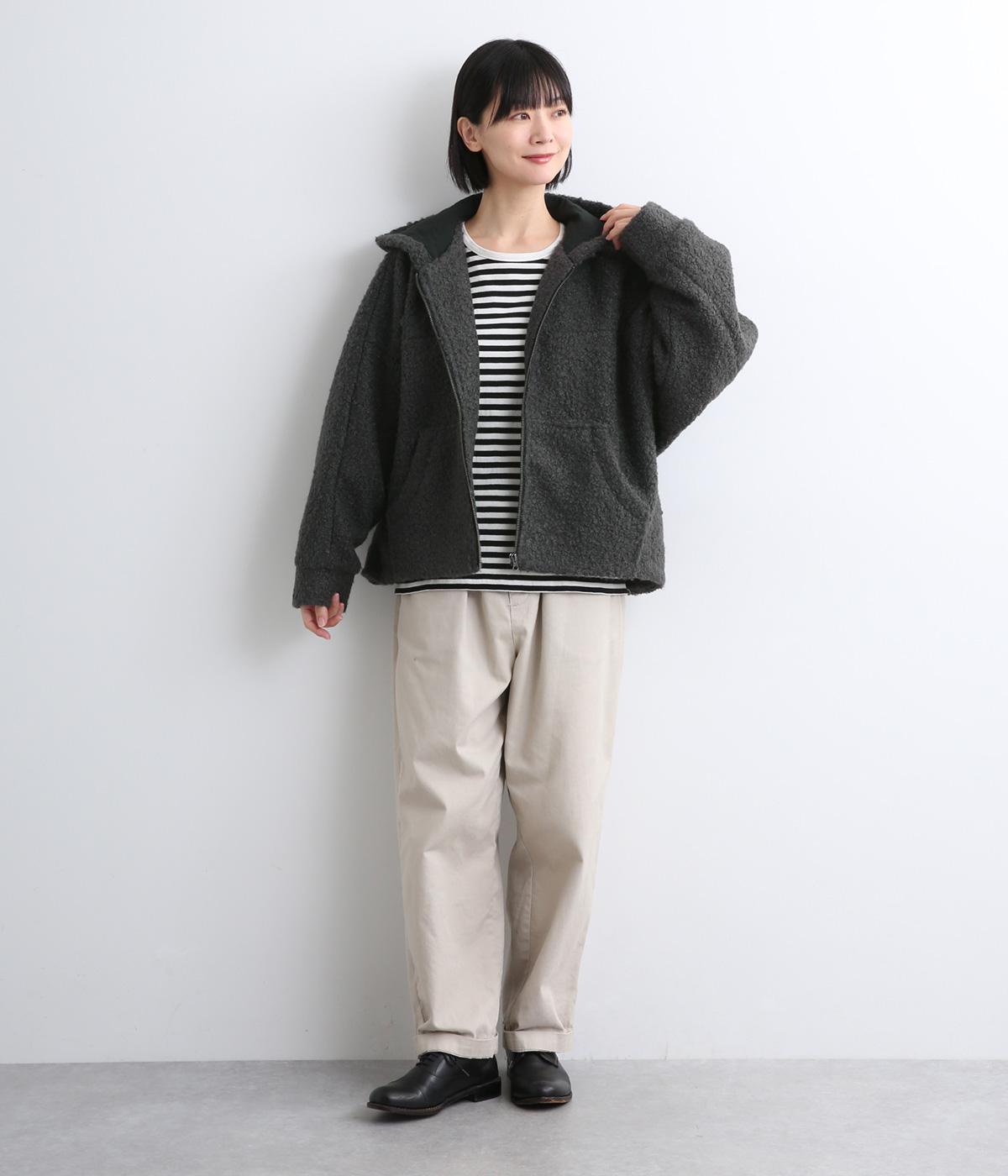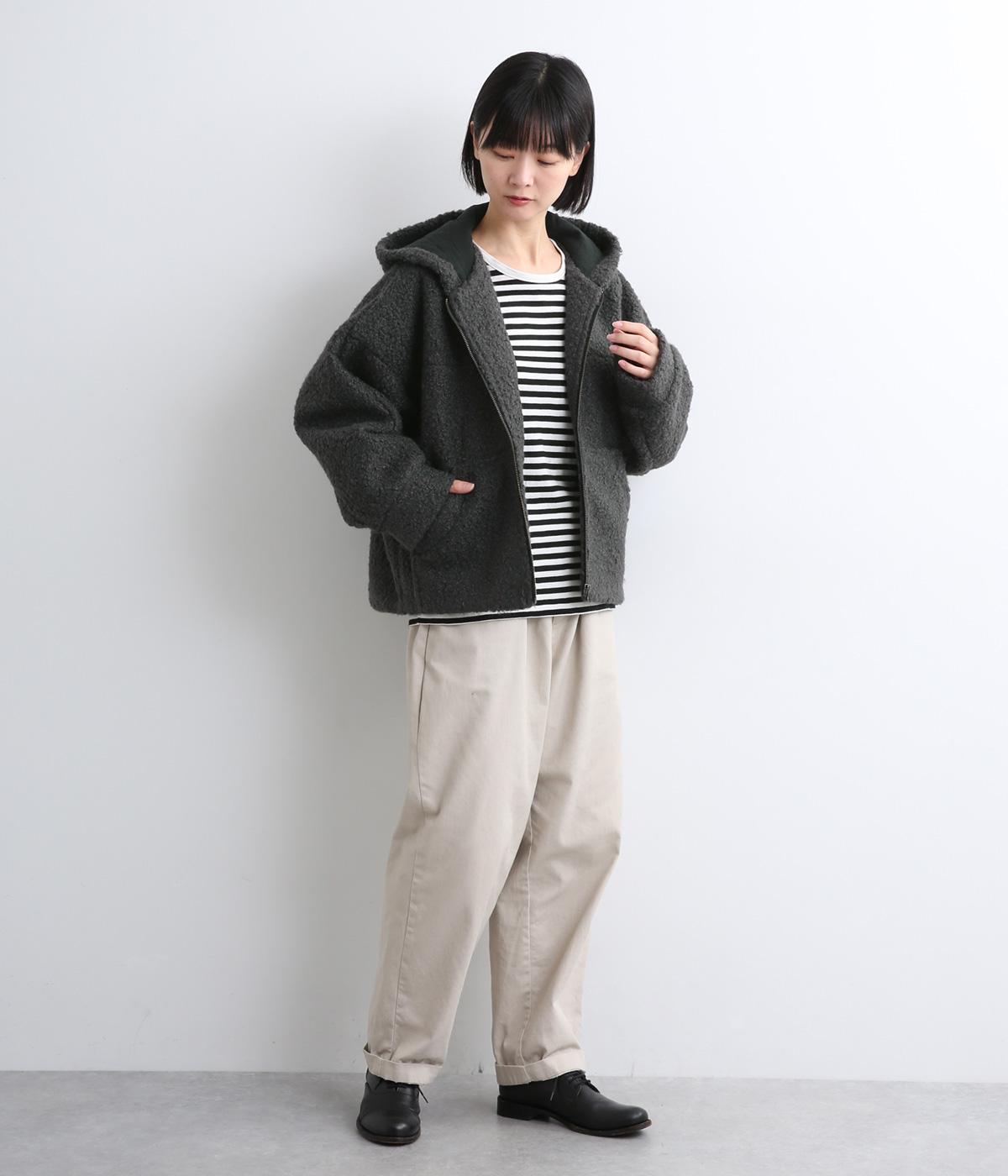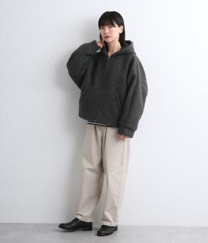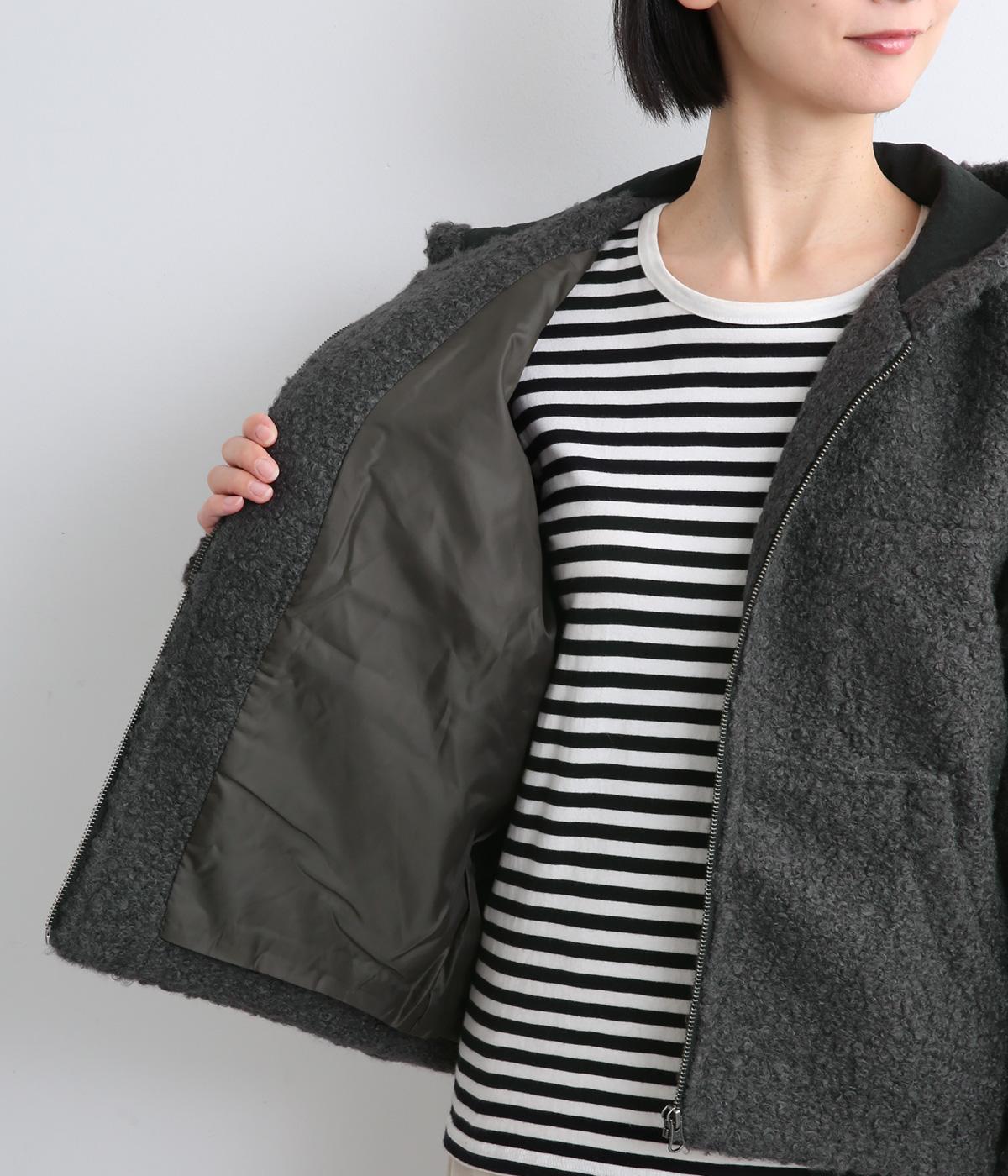 フロントのジップとフード効果で、カジュアルダウンしたいときにぴったりのショート丈のコート。きれいめのパンツやスカート、靴にプラスすることで、今っぽいこなれ感を演出することができます。容量たっぷりのポケットつき。