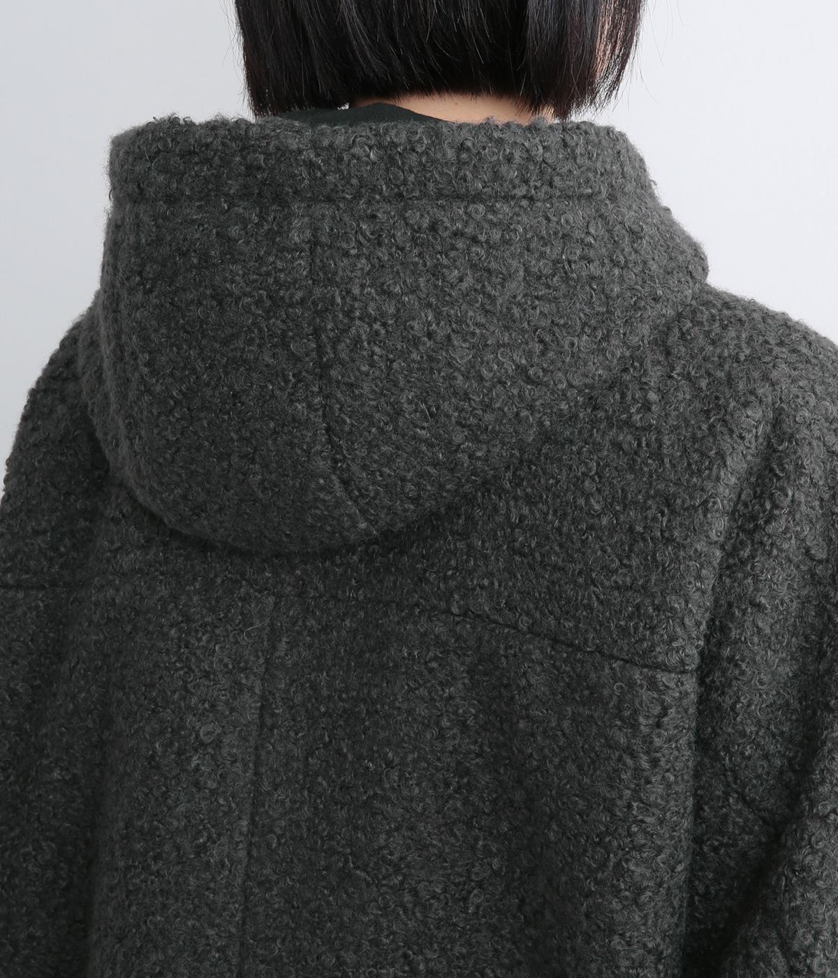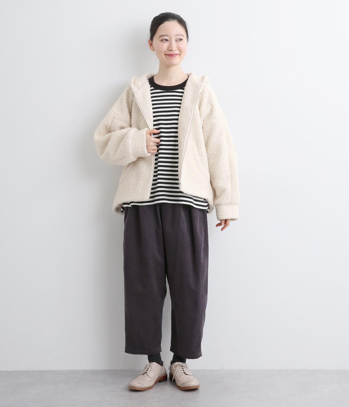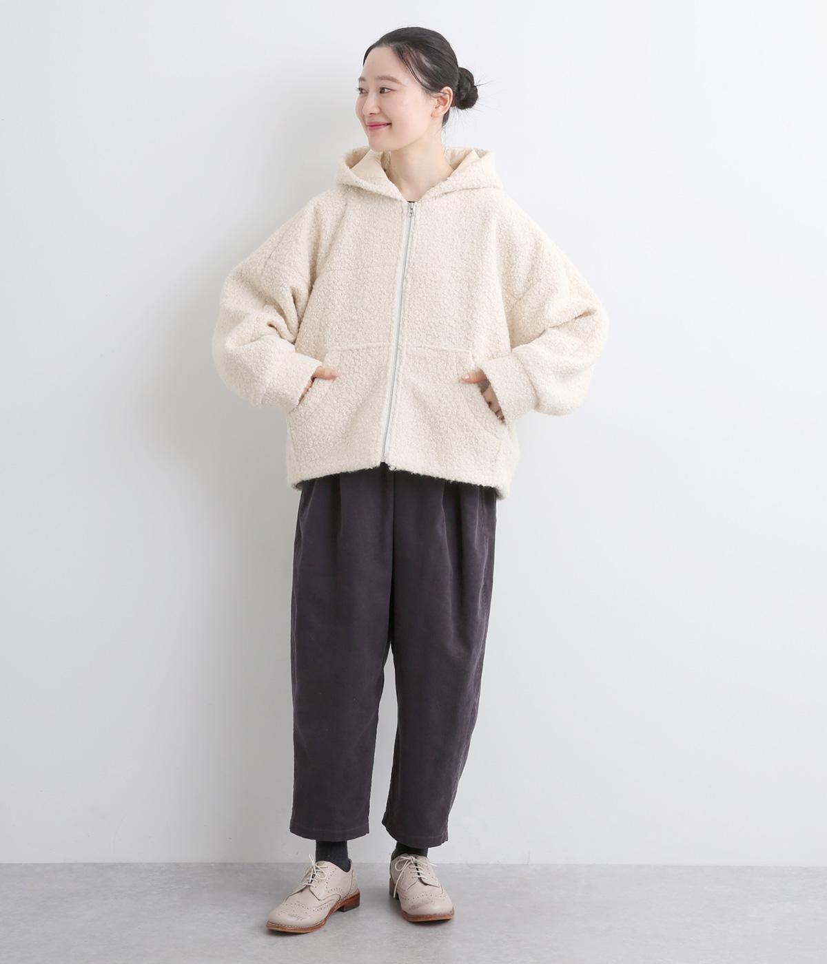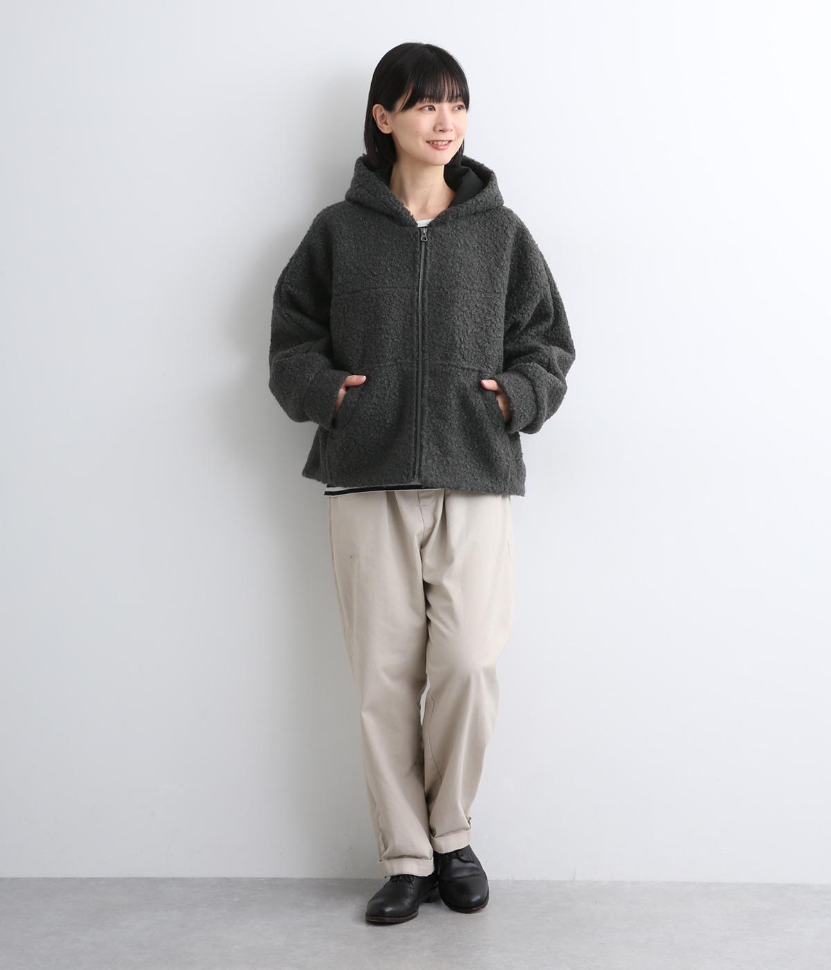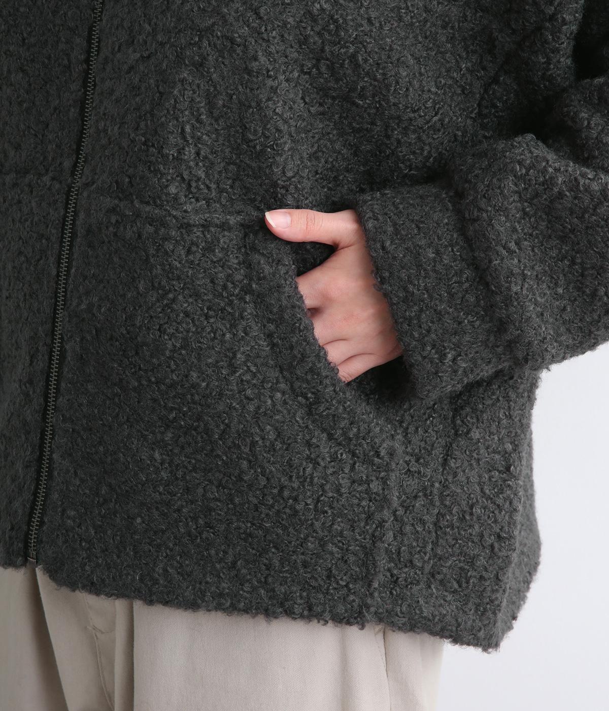 フロントのジップとフード効果で、カジュアルダウンしたいときにぴったりのショート丈のコート。きれいめのパンツやスカート、靴にプラスすることで、今っぽいこなれ感を演出することができます。容量たっぷりのポケットつき。