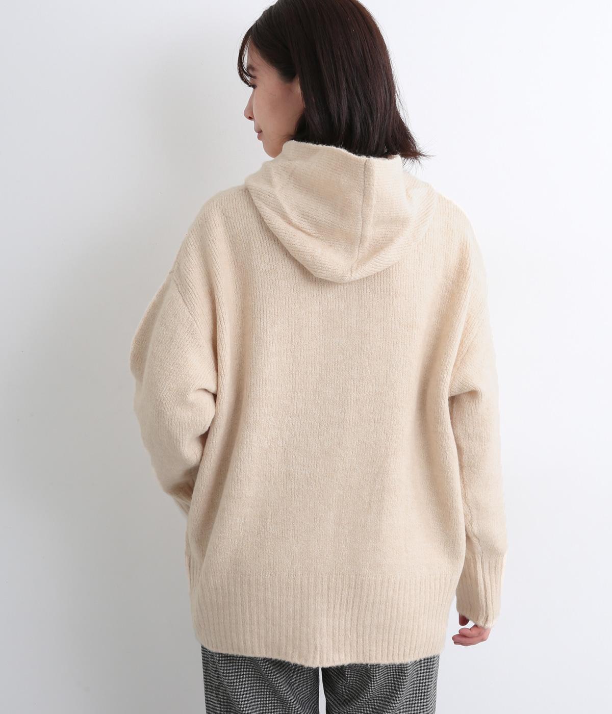 カジュアルになりすぎない、ニット素材のフーディー。ソフトでフェミニンな丸みのあるシルエットに仕上げました。さまざまなデザインのパンツに合わせやすく、ロングスカートとも好相性。素材が持つ上品さでワンランク上の着こなしが目指せます。