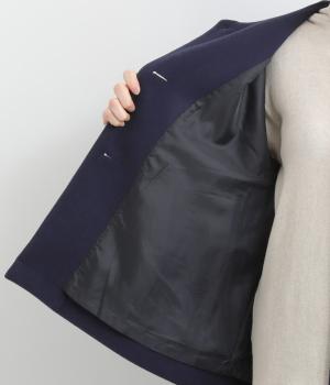 ノーカラーのすっきりとした首まわりが上品な印象のショートコートです。袖口にタックを寄せることで、ほどよいボリュームと丸みを帯びたシルエットに仕上げています。背面にはボックスタックを施し、動きに合わせてふわりと広がる立体感が魅力。大きめのボタンがアクセントになり、シンプルながら表情ゆたかな一枚です。