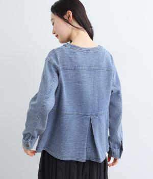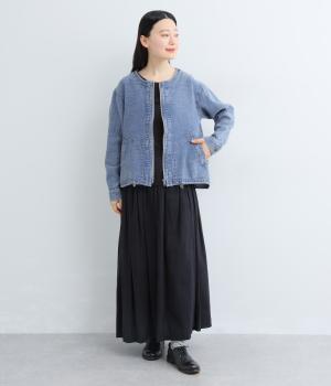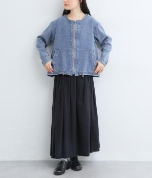 うしろにほどこしたタックが、ゆらゆらとしたやさしいラインを描くジャケットです。裾に配したドロストコードでシルエットの変化を楽しめ、前開きのファスナーがカジュアル感を後押しします。さまざまなスタイリングになじむ一枚です。