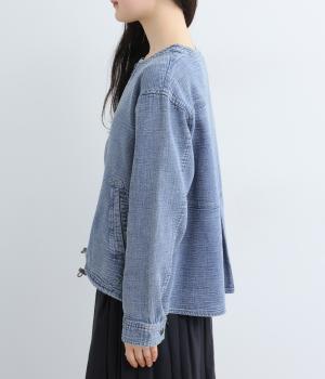 やや薄手ながらふっくらと風をはらんだコットンガーゼ生地を使用しました。やわらかい肌なじみで心地いい着用感です。
