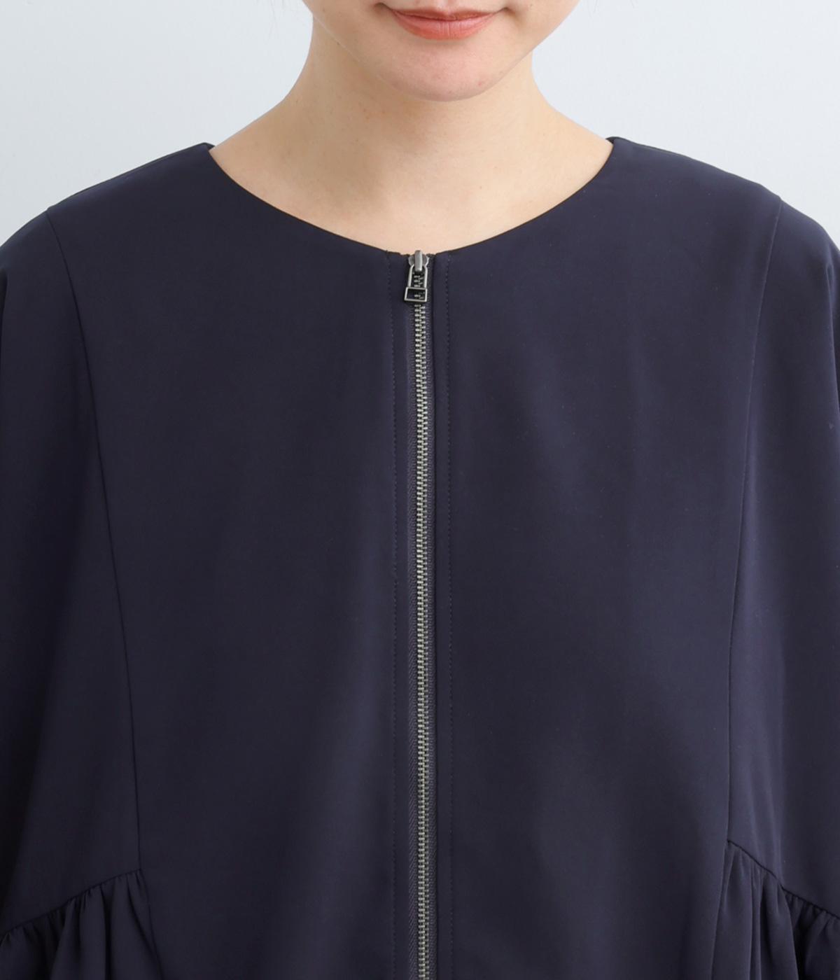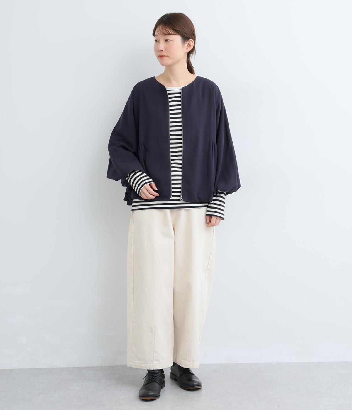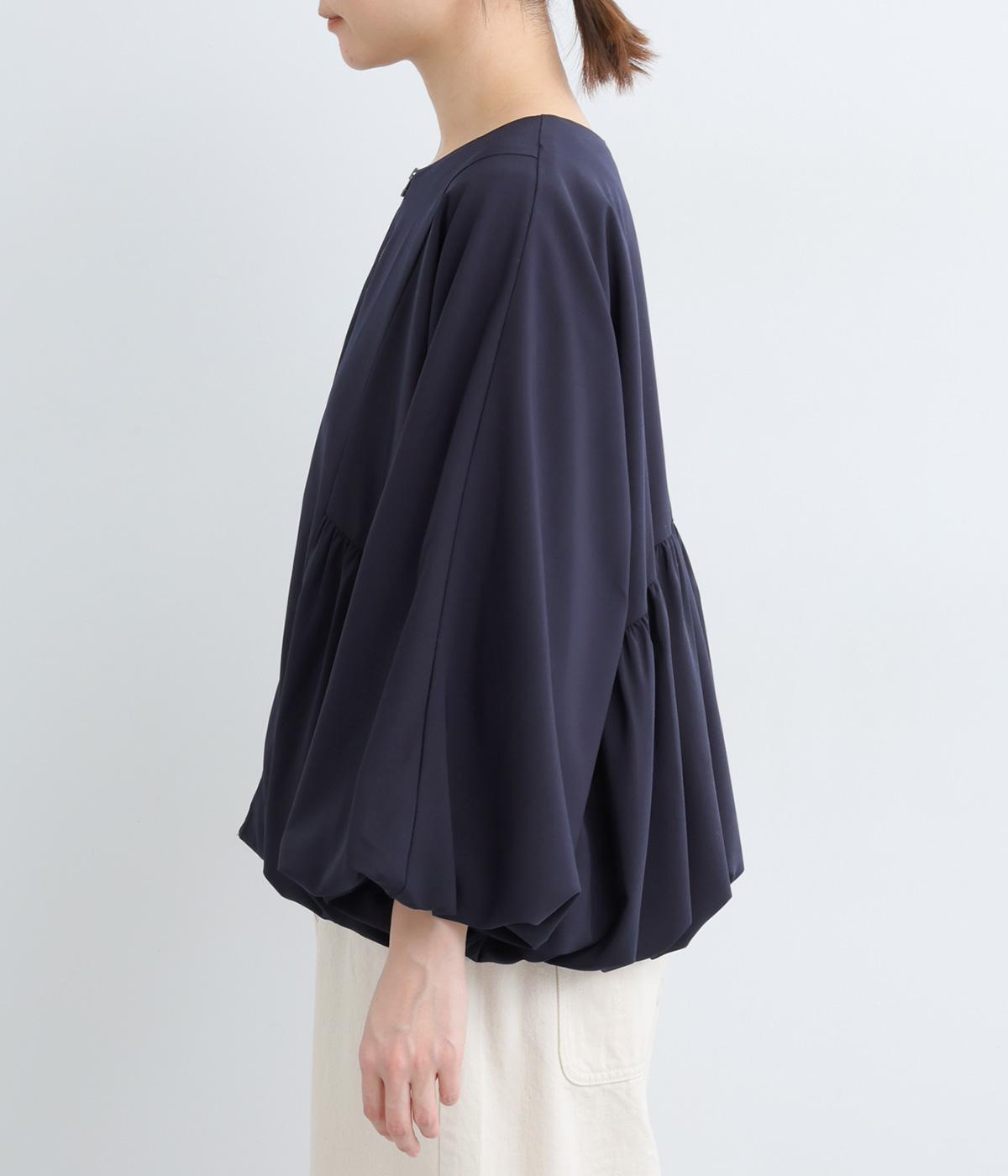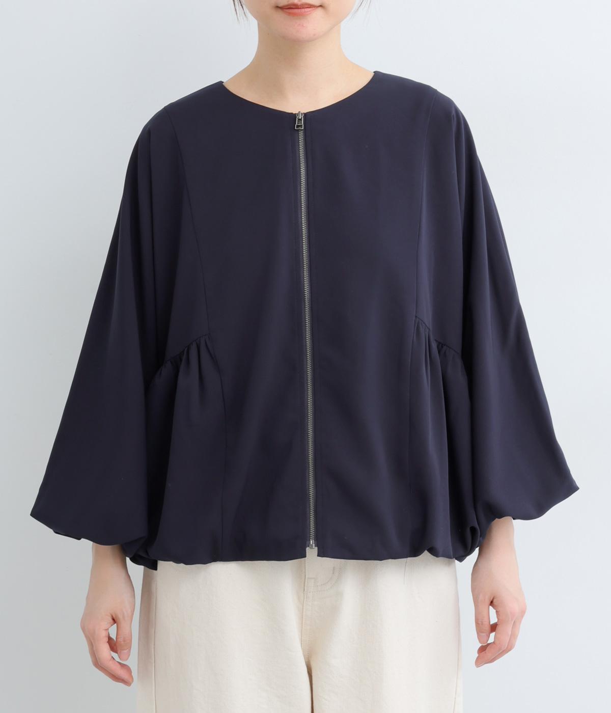 裾と袖口にゴムを配して、ふんわりとバルーンシルエットを描くジャケットです。優雅なドレープが華やかな印象を与えつつ、ノーカラーですっきりとバランスよく仕上げました。パンツにもスカートにも合わせやすい着丈にもこだわりました。