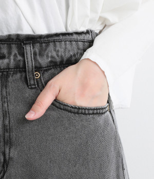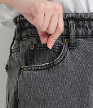 10.5オンスの少し厚手のしっかりとしたデニムを使用しています。ブラスト加工をほどこすことで、ヴィンテージ感のあるこなれた雰囲気が出るように仕上げました。