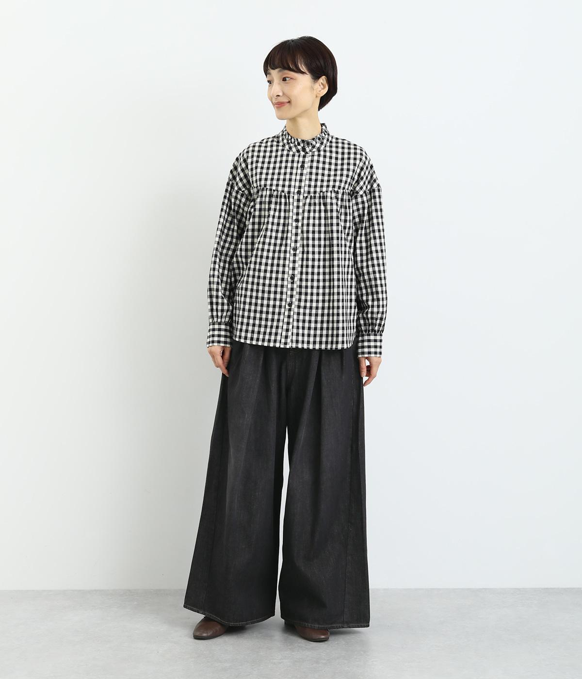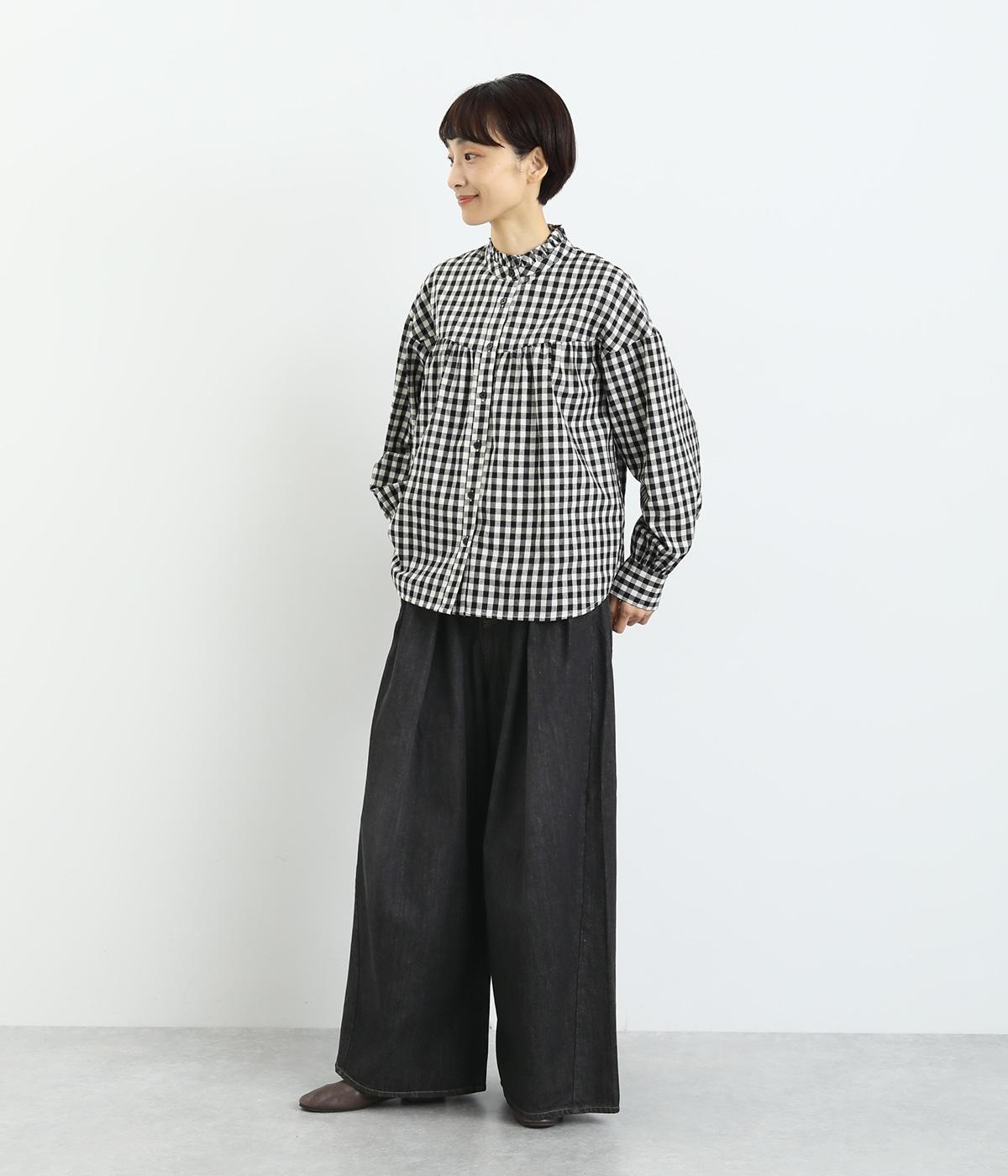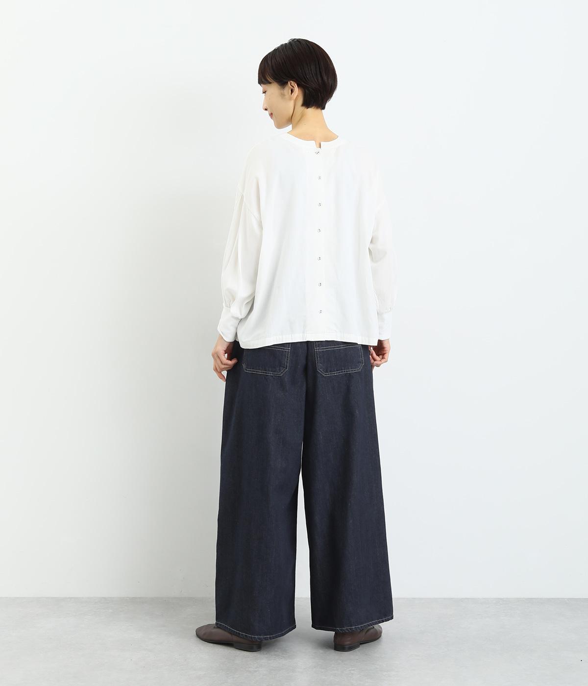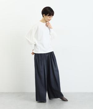 オールシーズン着まわせるしっかりとしたデニム素材。ほどよいハリとなめらかな肌あたりは着心地抜群。カジュアルながらも洗練された雰囲気で着こなせる万能な素材です。