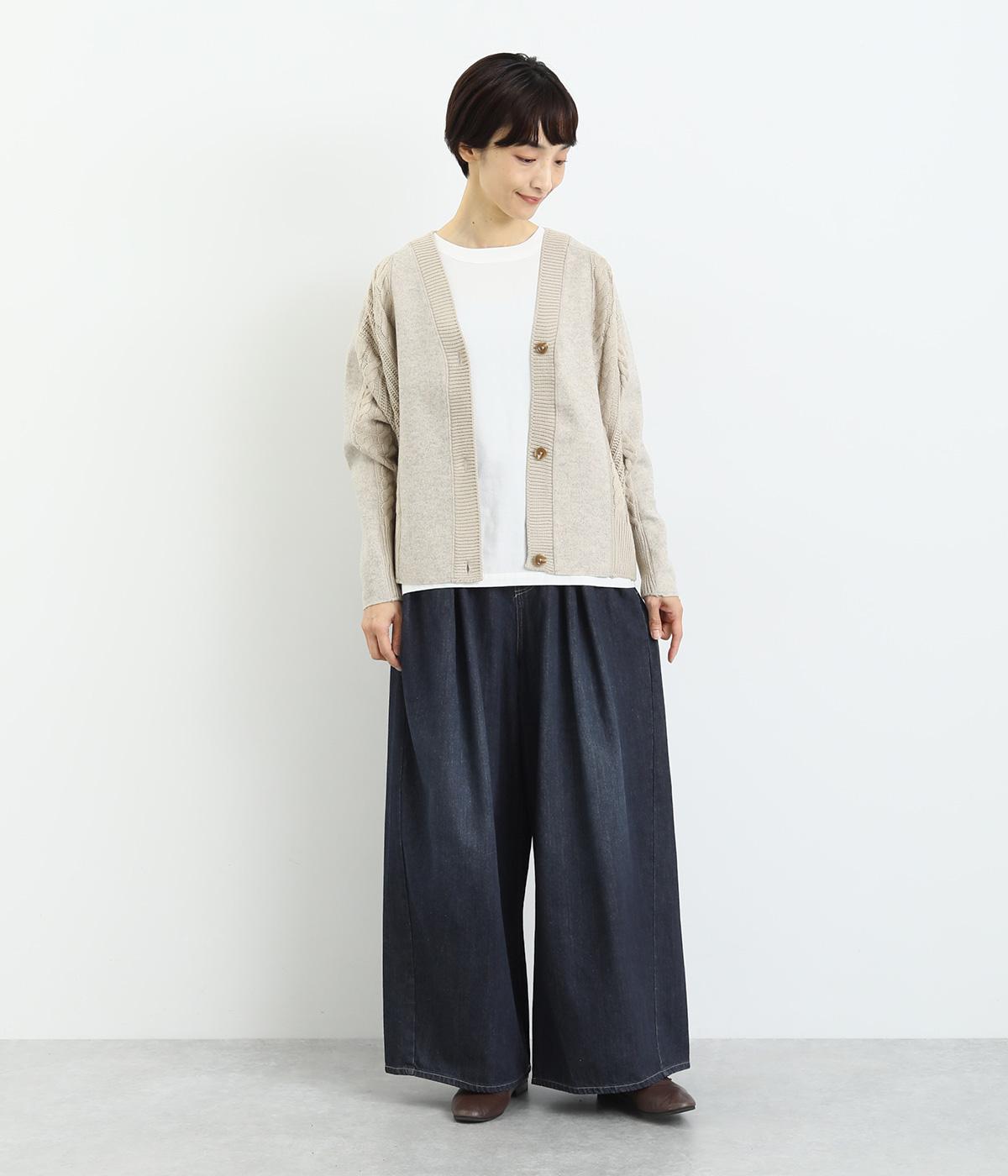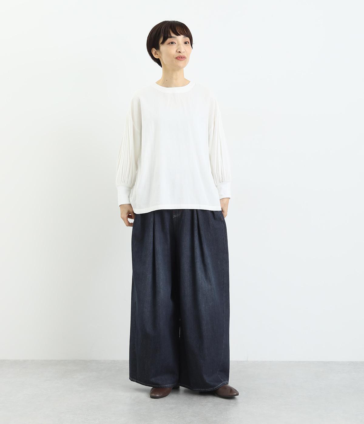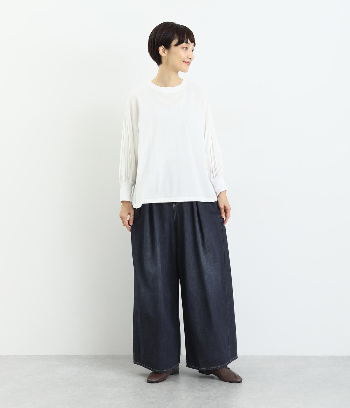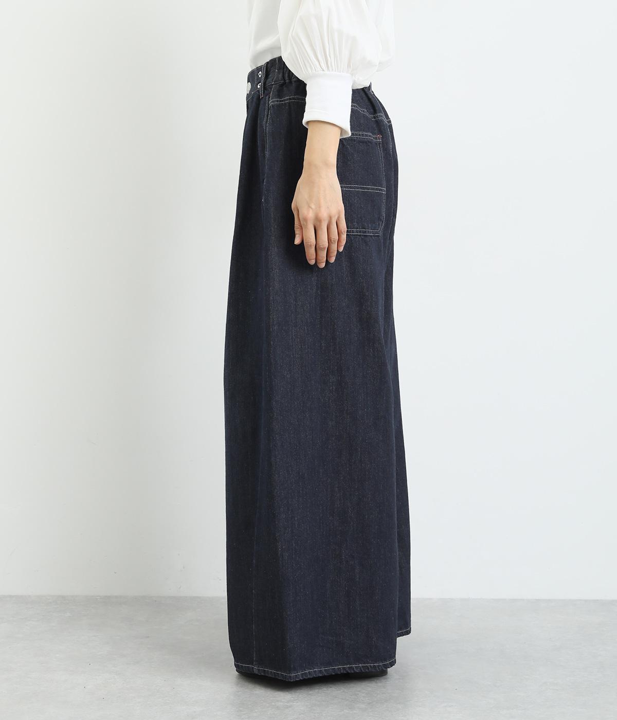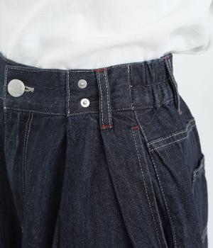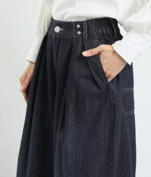 ラフなのに品よく着こなせるデニムのコクーンワイドパンツです。腰まわりから裾にかけて、若干のまるみを帯びたシルエットは動きやすく、こなれた印象を与えてくれます。ウエストラインは後身ごろがゴム入りで快適なフィット感が楽しめます。