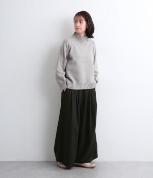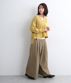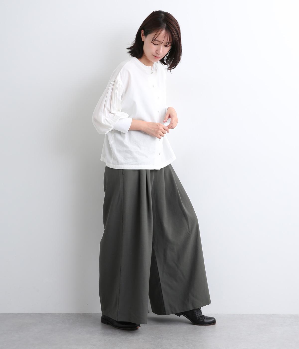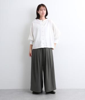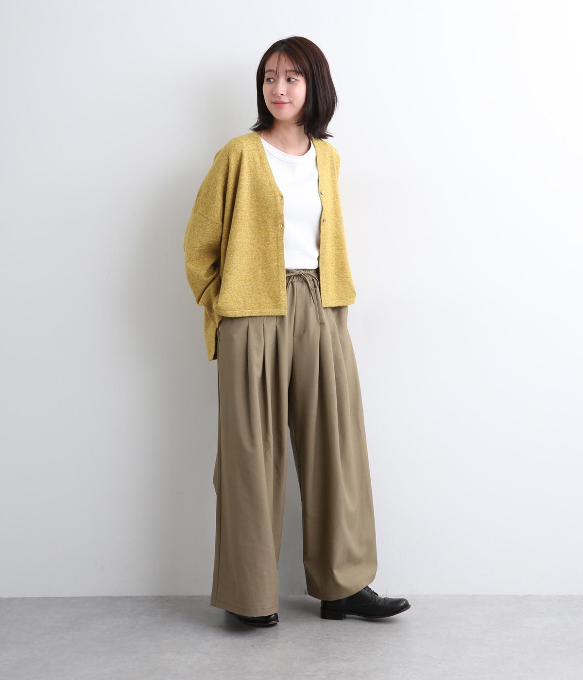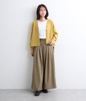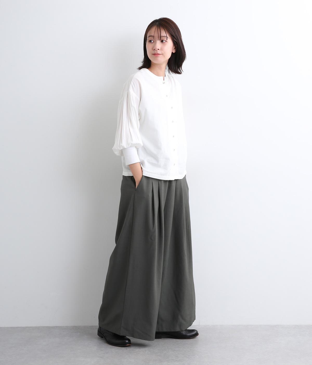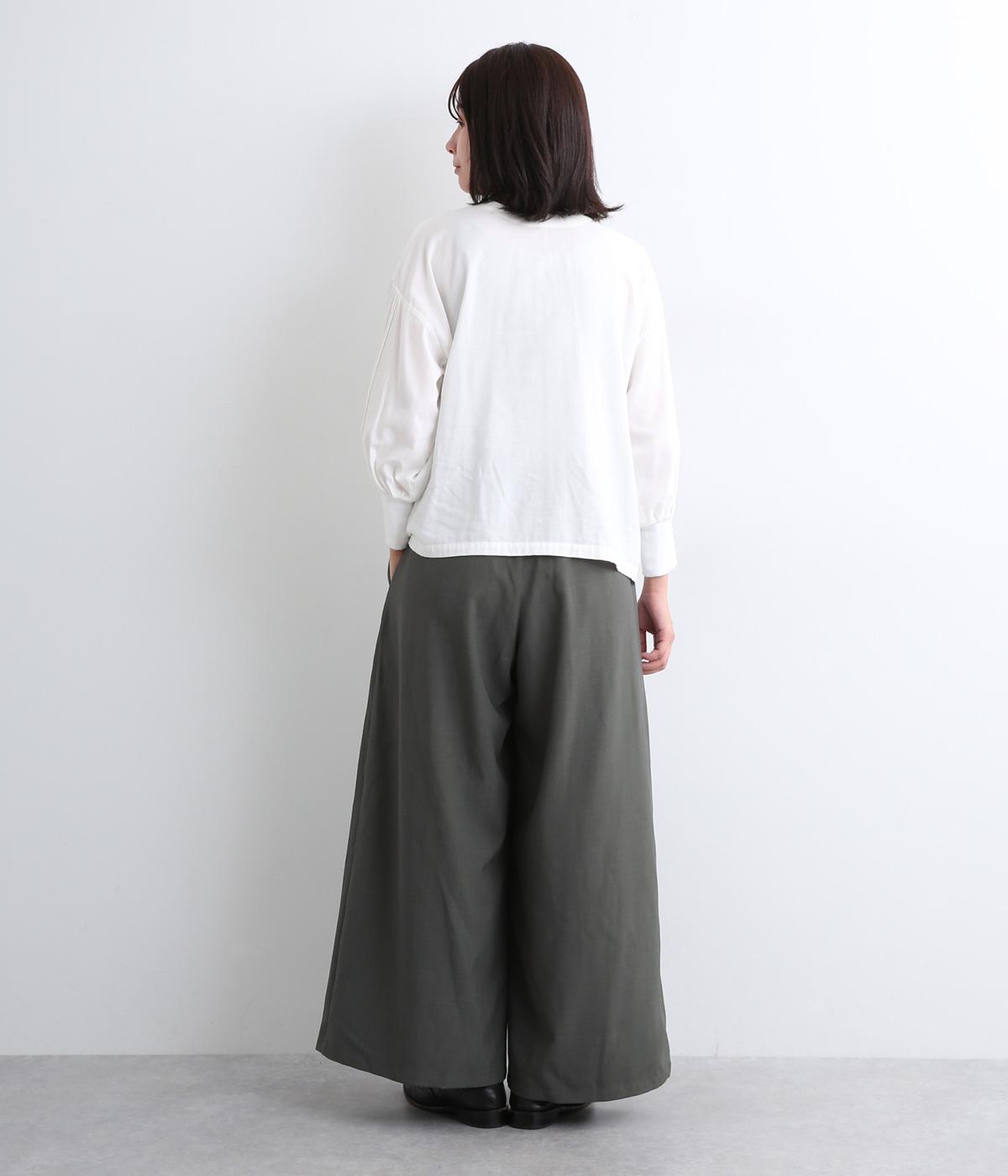 複数のタックを入れ、腰まわりにゆとりを持たせたバギーパンツ。タック効果により、クラシカルでフォーマルな印象を与えてくれるほか、きれいなシルエットをつくり出し、動きやすさにも配慮しました。両サイドと右側のヒップ部分にポケットがついています。ウエストはぐるりと一周ゴム。