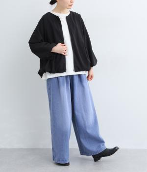 しなやかなハリがあり、硬さの少ない混紡生地を使用しています。ユーズド感のある風合いは、一点一点微妙に異なる味わい深い素材感です。