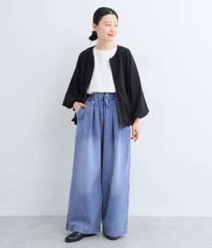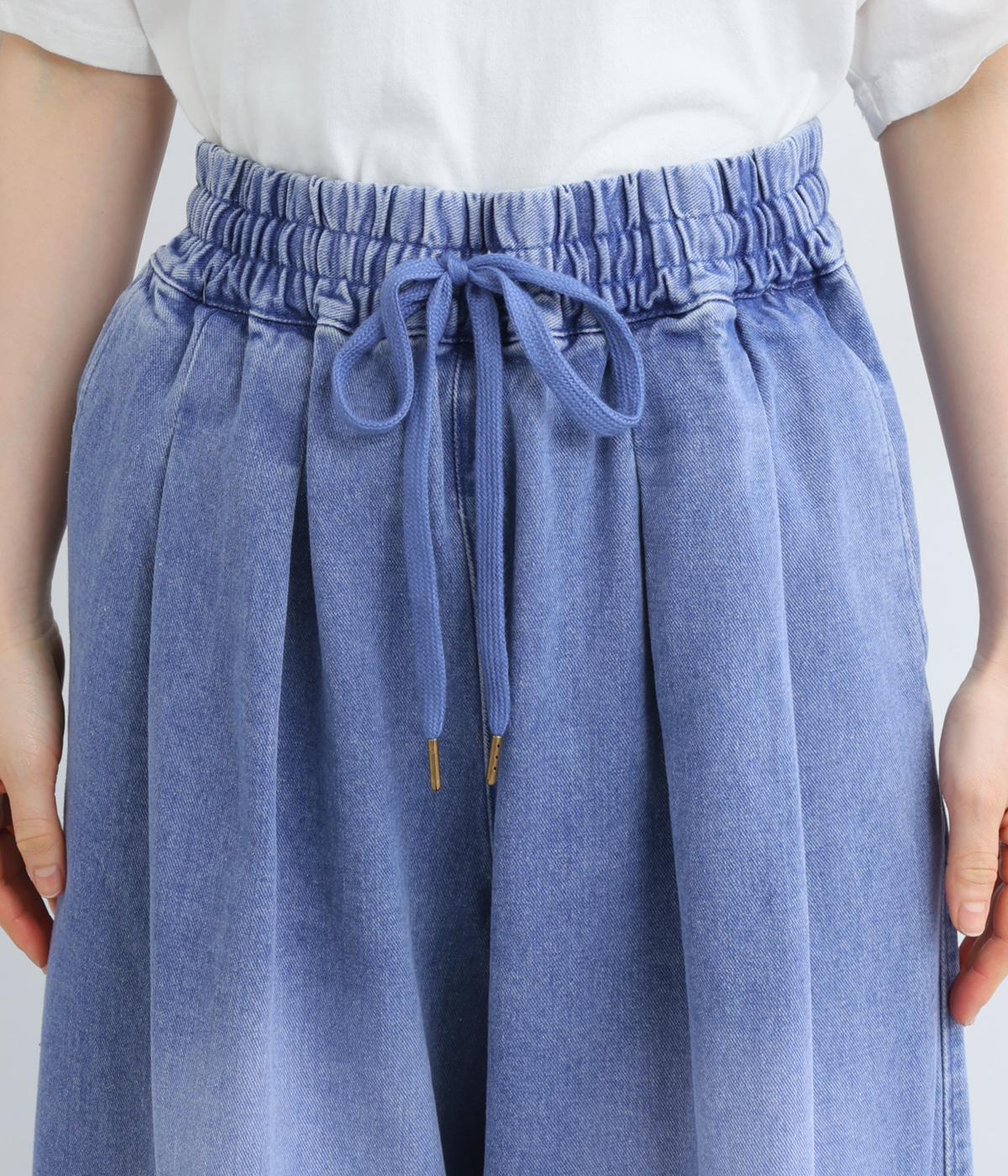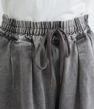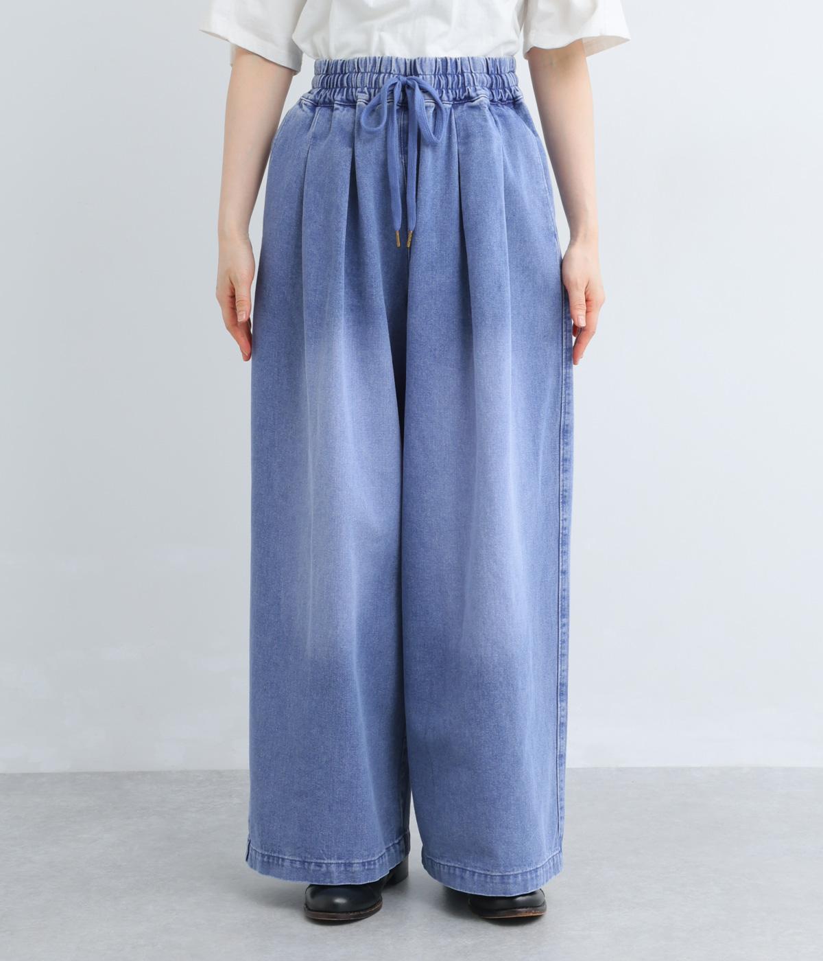 こなれ感のあるバギーパンツをデニム生地で仕立てました。個性的なアイテムながら、コンパクトなトップスともオーバーサイズなトップスとも好相性でスタイリングしやすいアイテムです。ウエストは総ゴム仕様で紐で調節可能です。