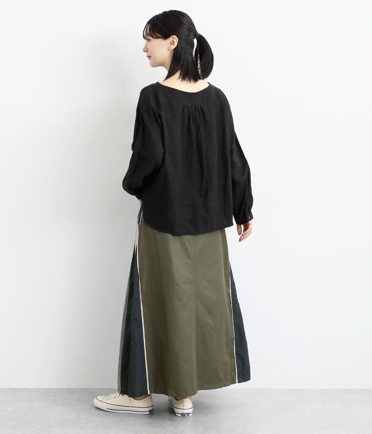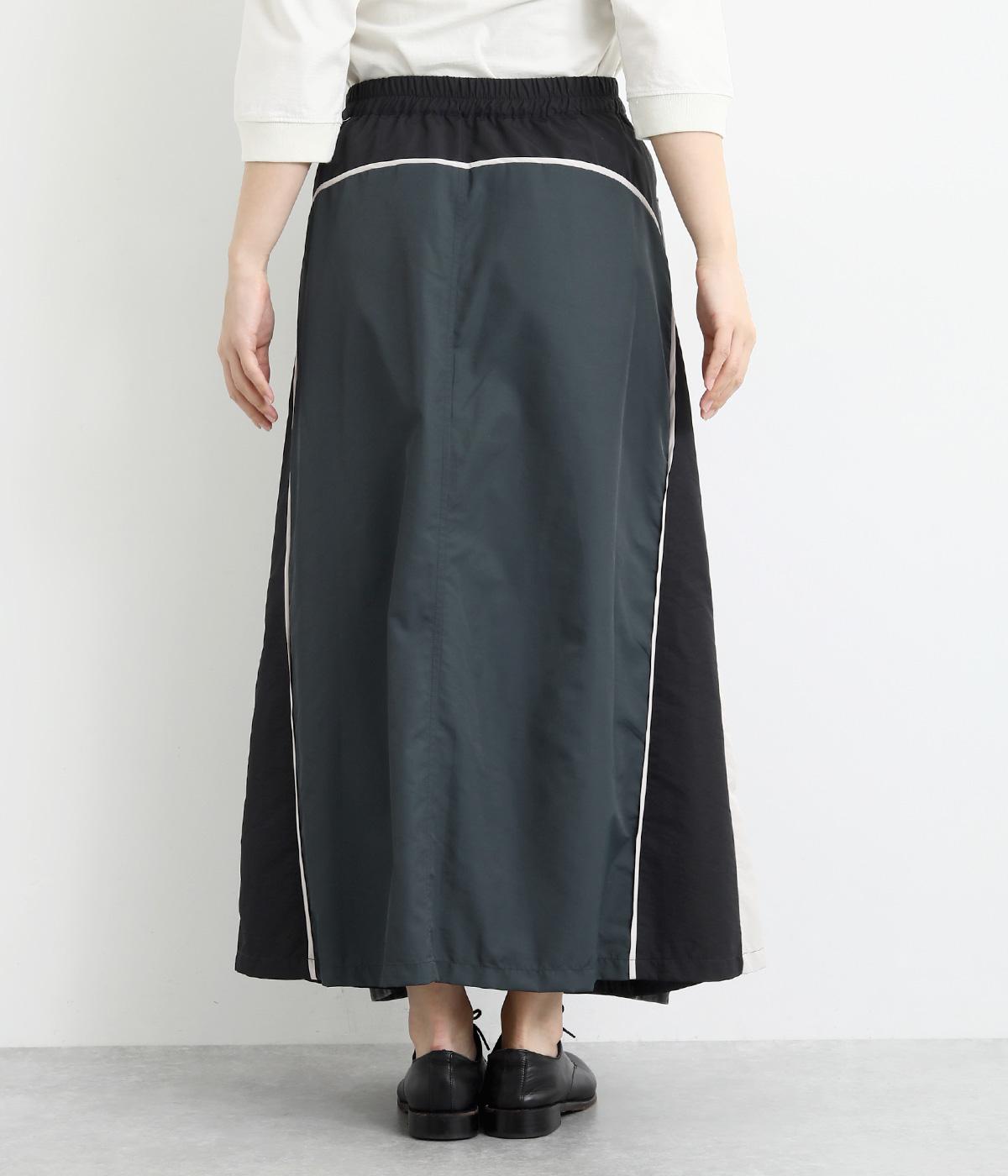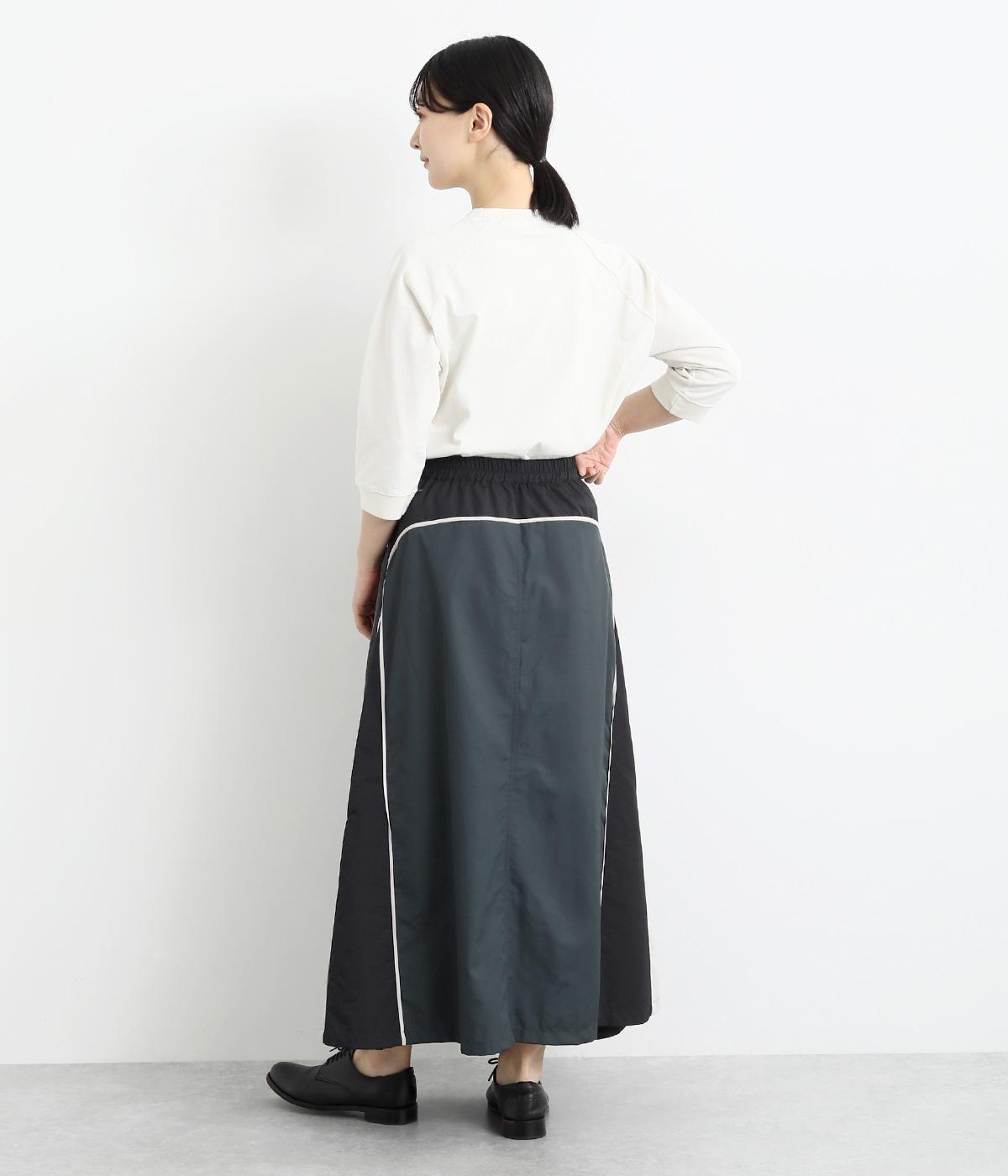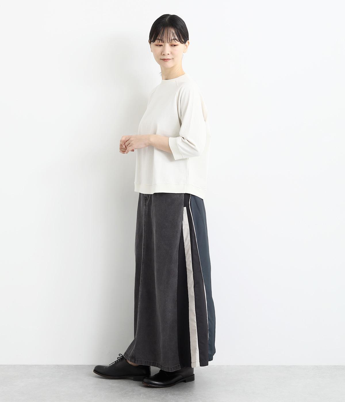 裾にかけて少しだけ広がるマキシ丈のスカート。リメイク風のデザインが、コーディネートに遊び心を添えてくれます。ベルトループ付きなので、お手持ちのベルトでのアレンジも可能。シンプルなニットなどに合わせるだけでサマになります。
