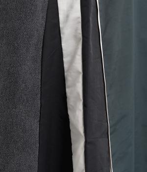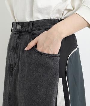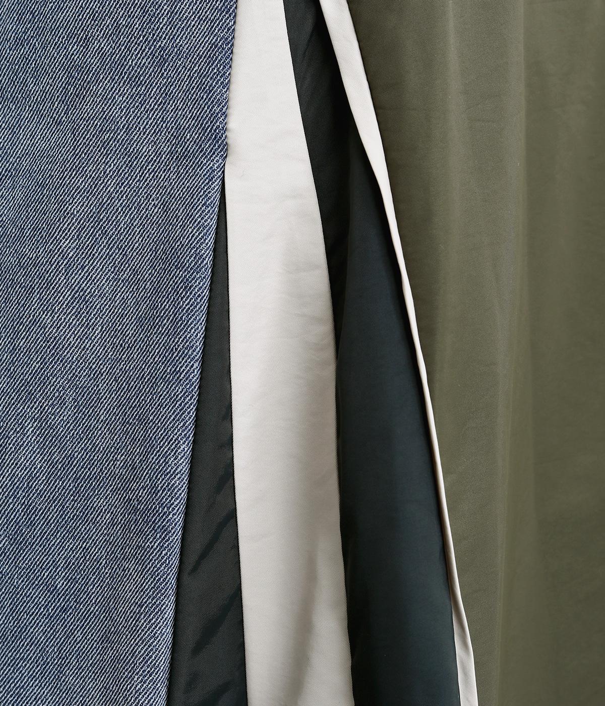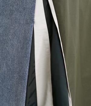 デニムとナイロン生地を切り替えた異素材ミックス。デニムはヴィンテージ風の加工を施した、こなれ感のある風合いです。ナイロンの配色使いもポイント。