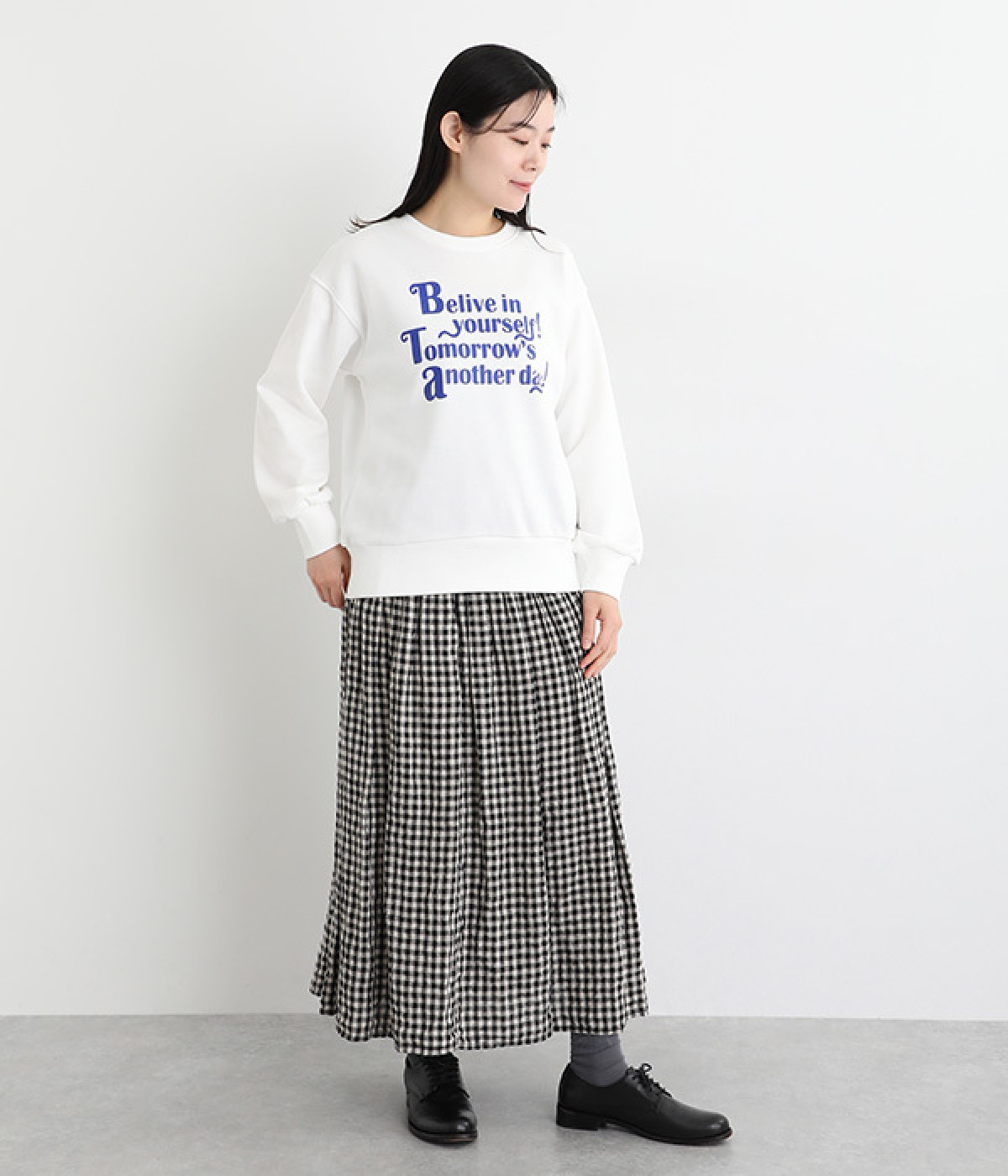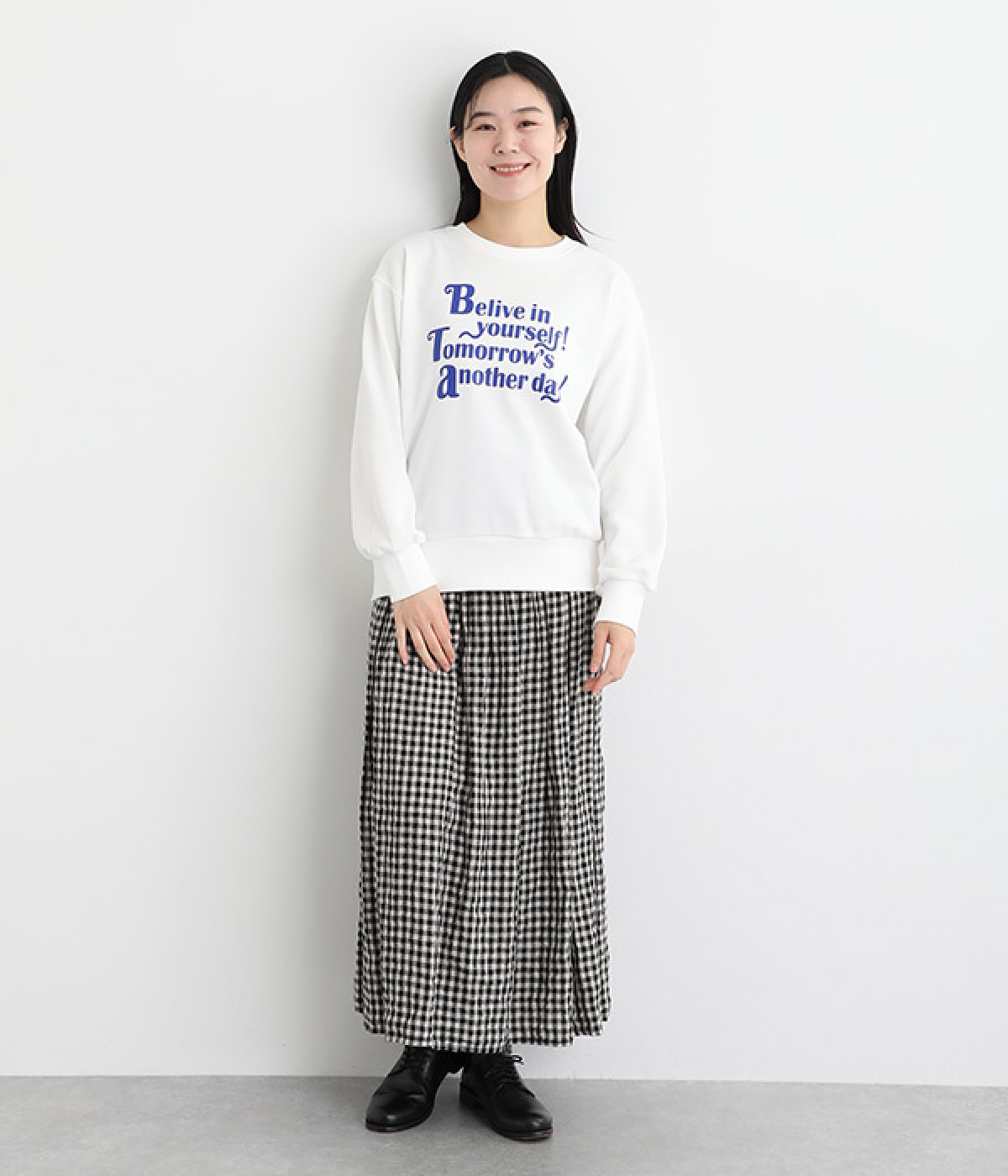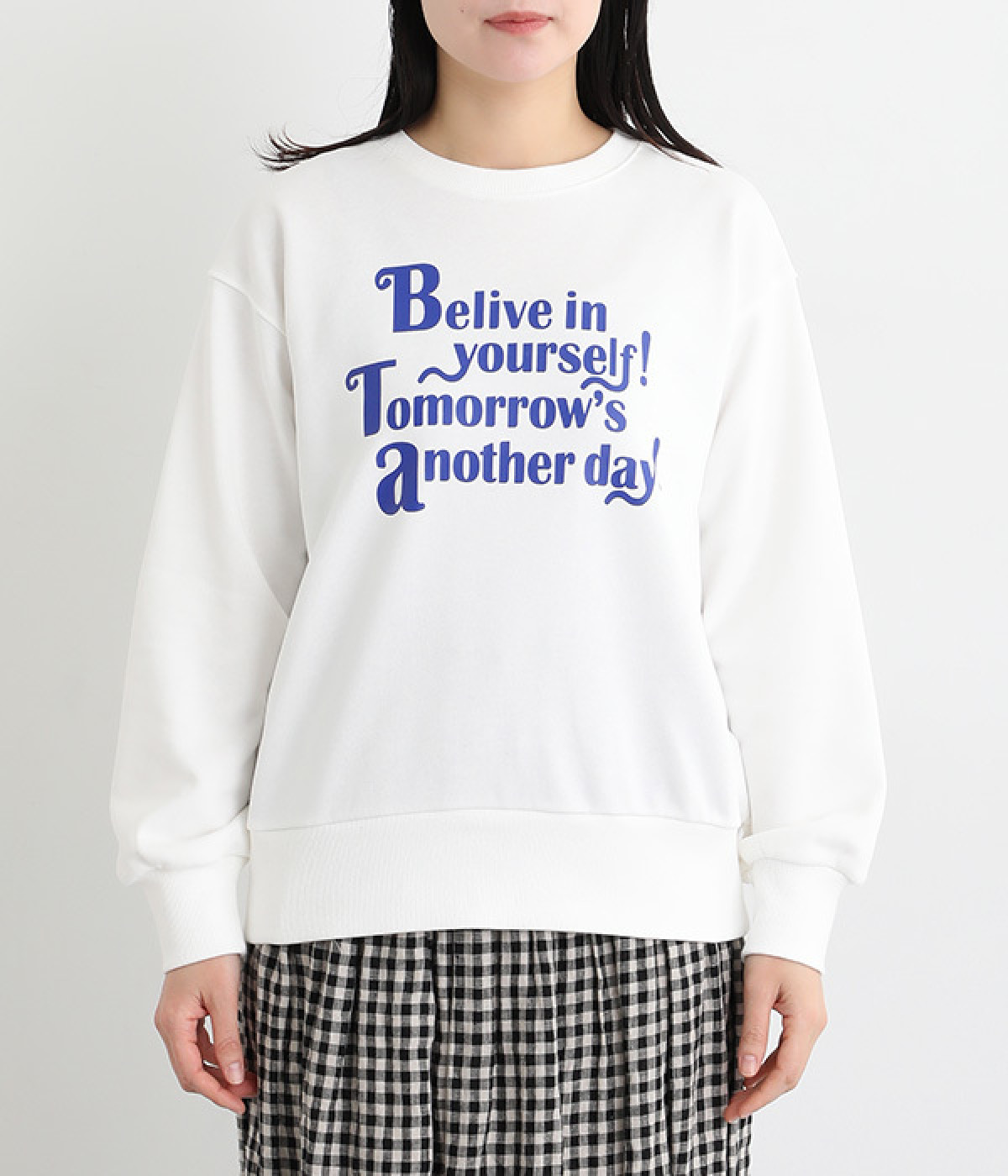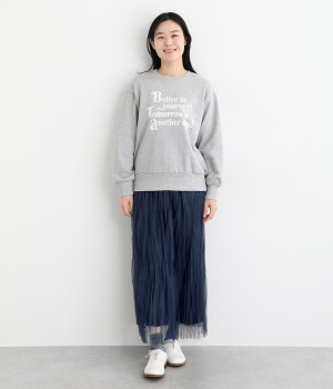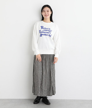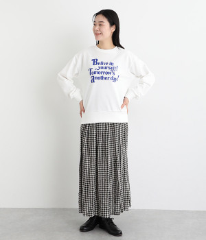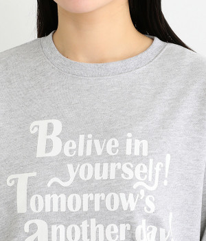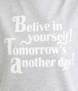 「自分のことを信じて!明日があるさ!」とポジティブなメッセージをのせたベーシックなスウェット。大人カジュアルな装いにもなじむ、ほどよいゆとりのあるフィットに仕上げました。甘めのボトムと合わせたミックススタイルにもおすすめです。
