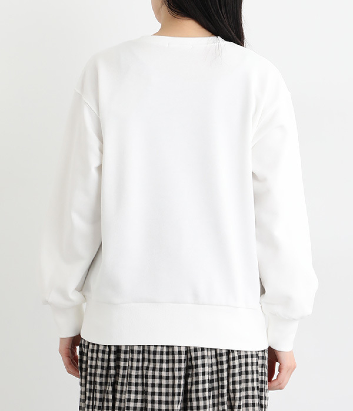 コットンとポリエステルをバランス良くブレンドした裏毛素材を使用。ふっくらやわらかな肌ざわりと、品良く見えるなめらかな生地感が特徴です。