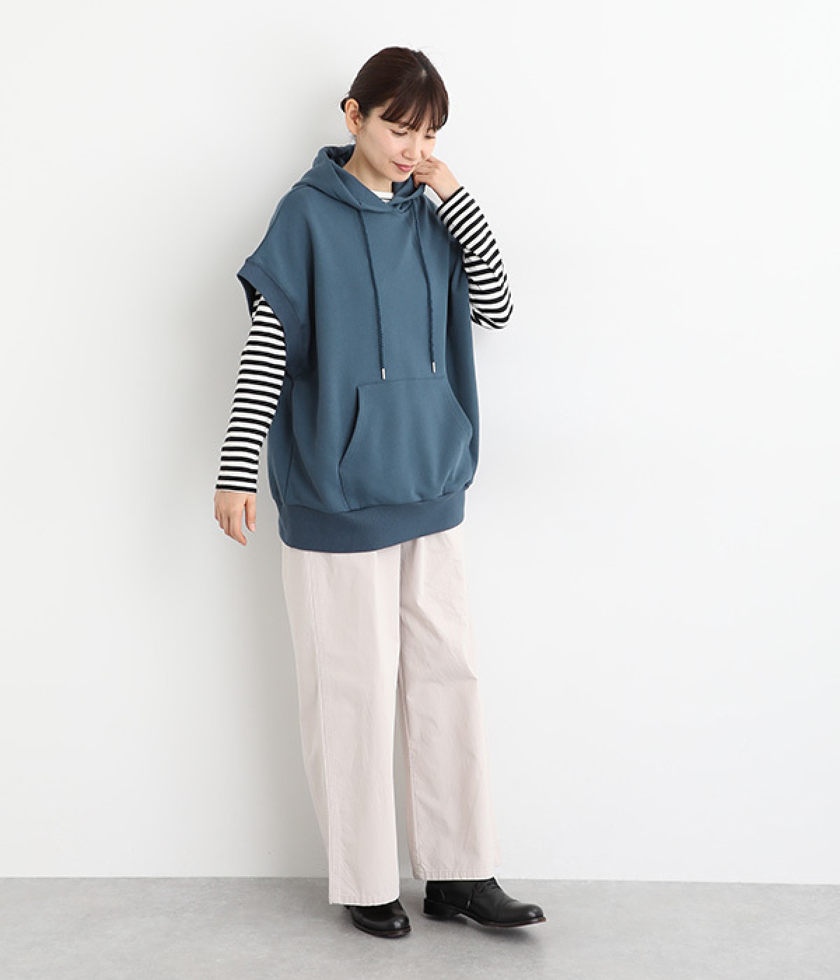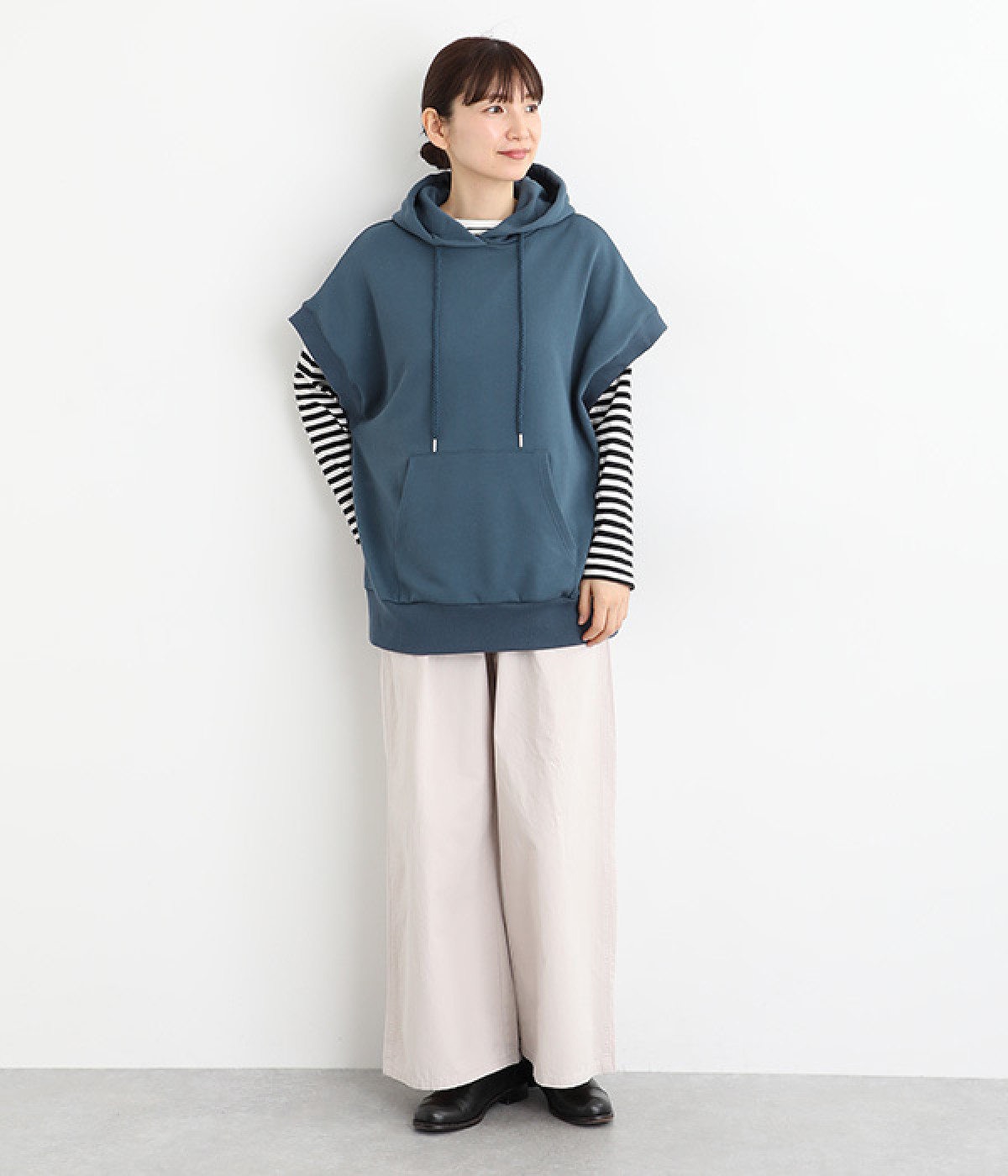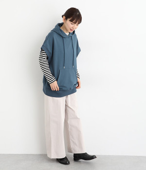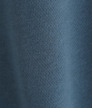コットンとポリエステルをバランス良くブレンドした裏毛素材を使用。ふっくらやわらかな肌ざわりと、品良く見えるなめらかな生地感が特徴です。