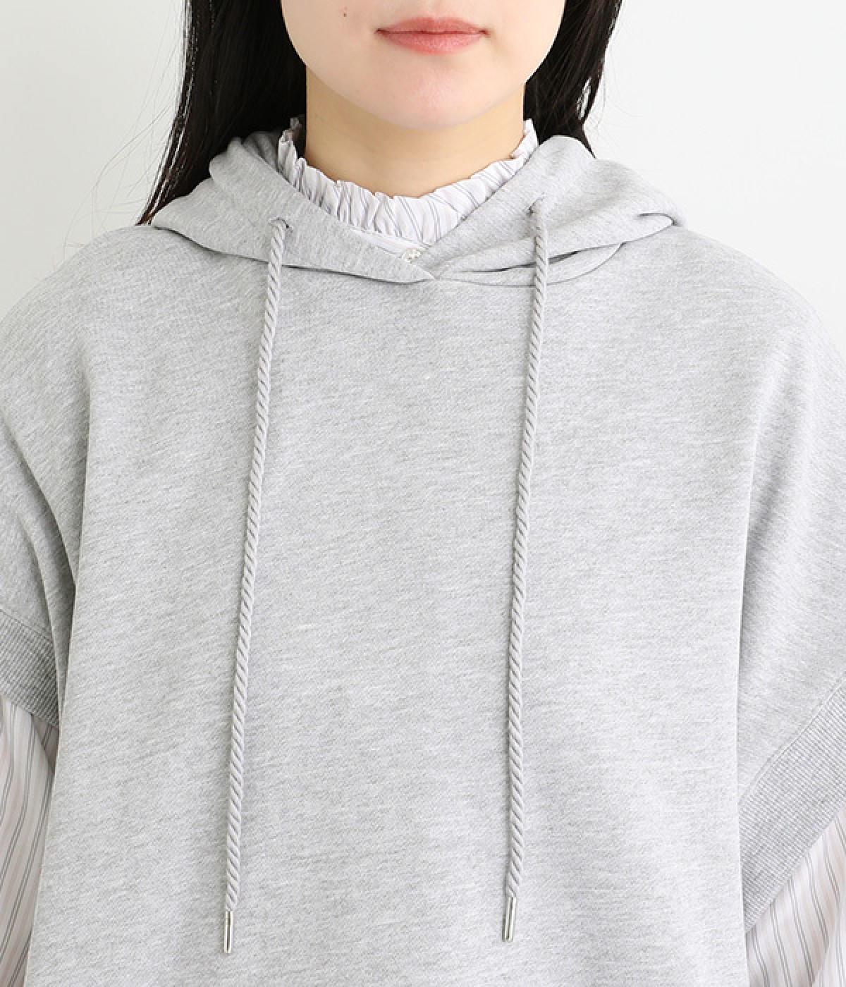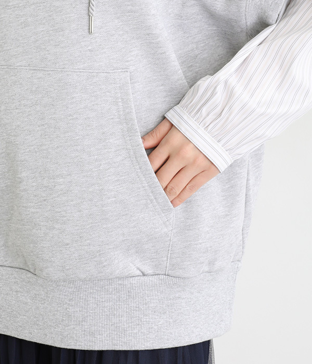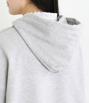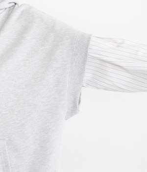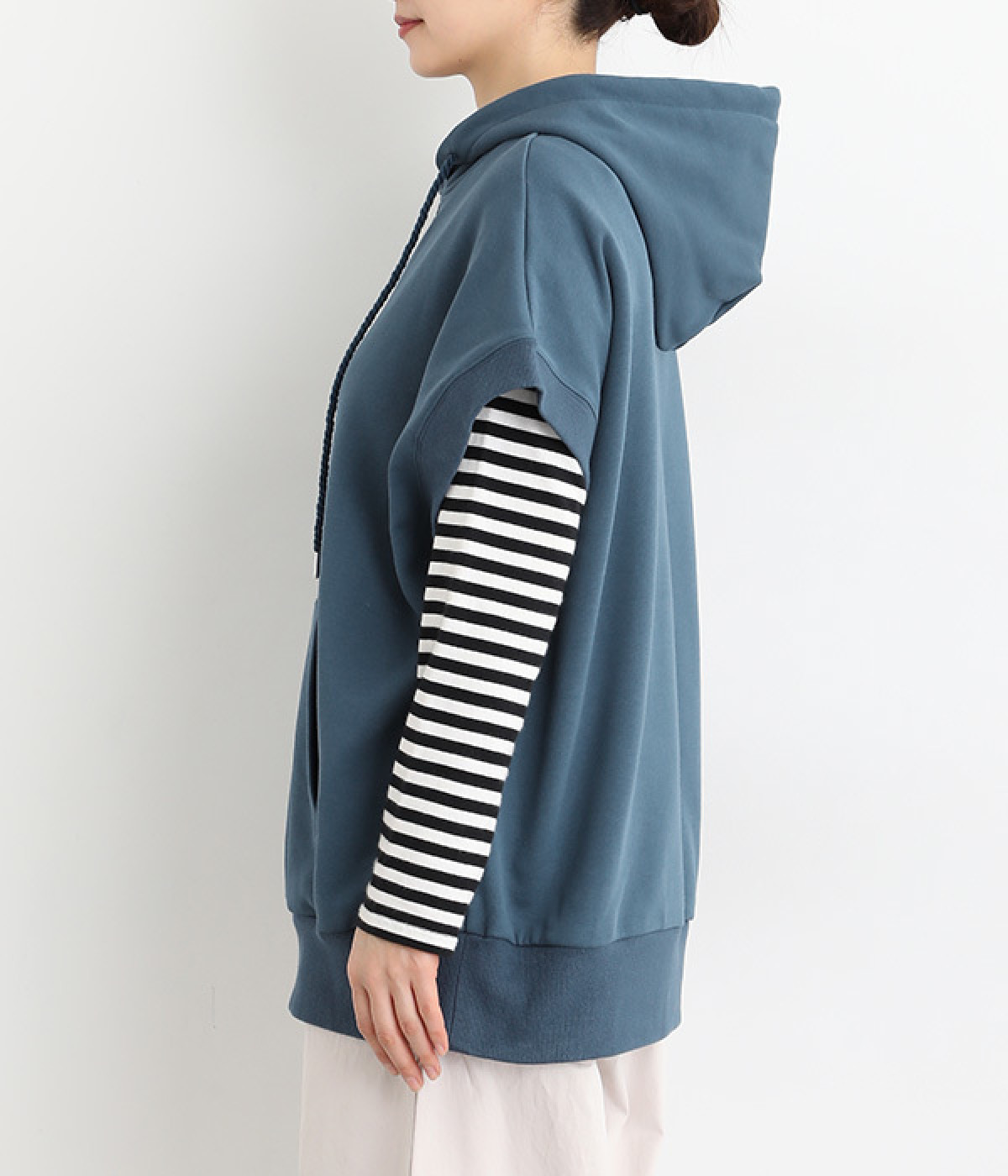 コットンとポリエステルをバランス良くブレンドした裏毛素材を使用。ふっくらやわらかな肌ざわりと、品良く見えるなめらかな生地感が特徴です。