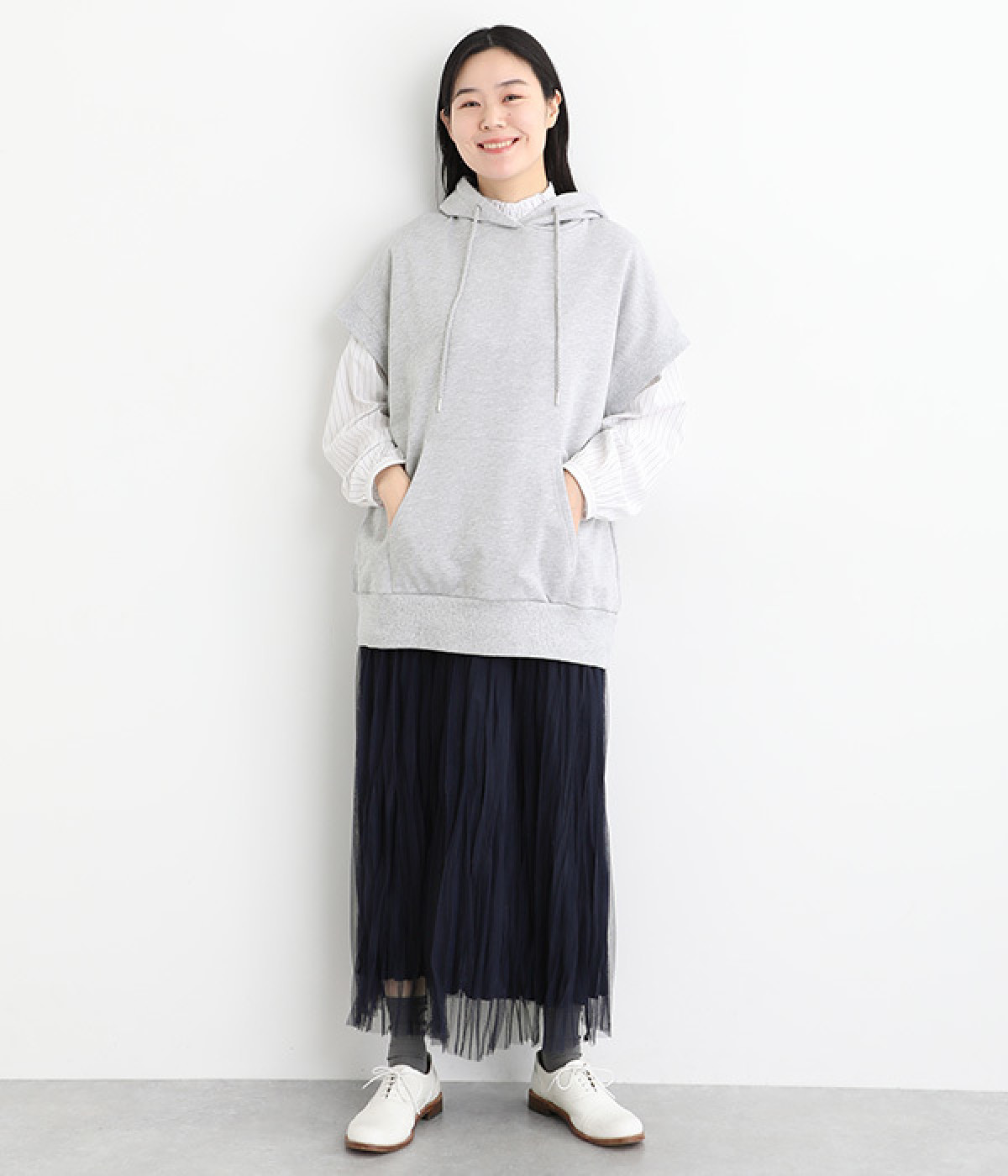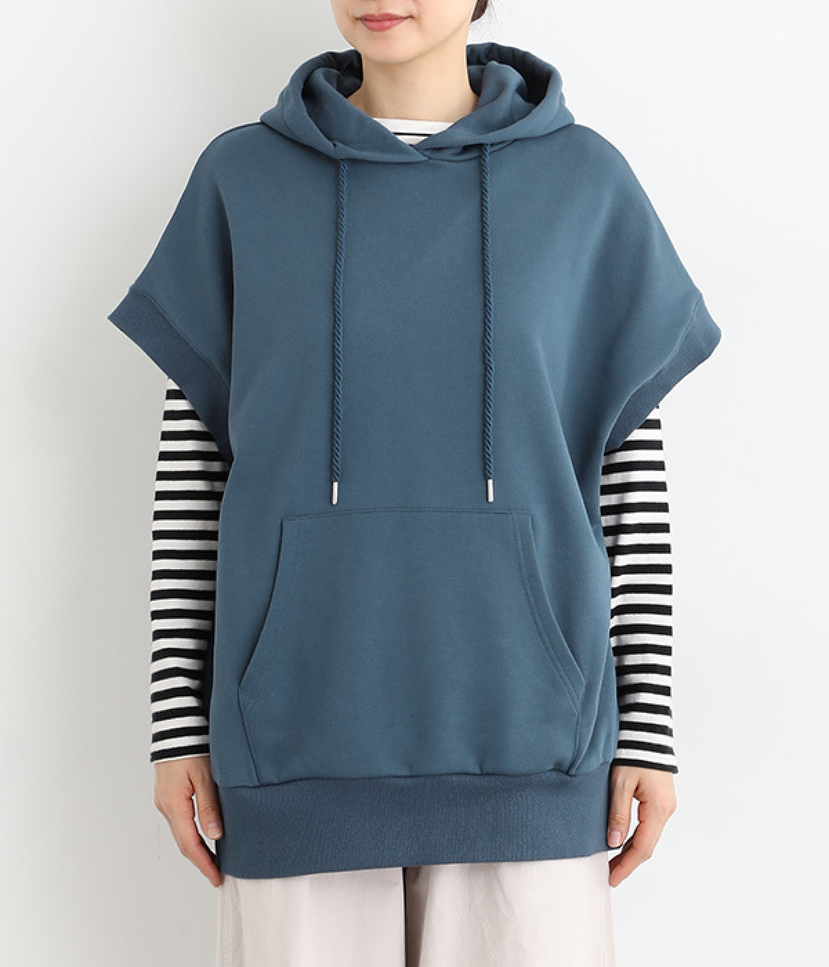 スポーティなエッセンスをきかせたカジュアルな裏毛ベスト。ゆったりとした仕立てで、さまざまなアイテムとのレイヤードが楽しめます。ヒップをすっぽりカバーする長めのレングスが縦長効果を引き出し、バランスの良い着こなしを実現します。