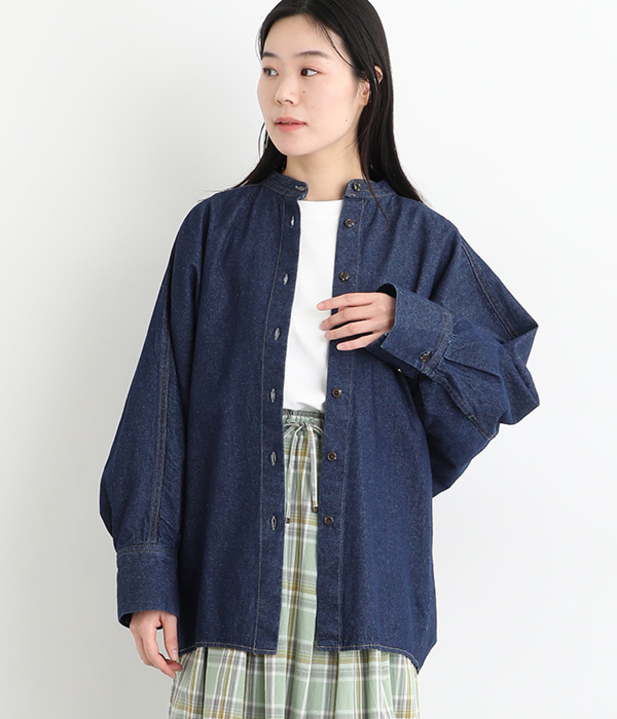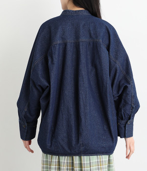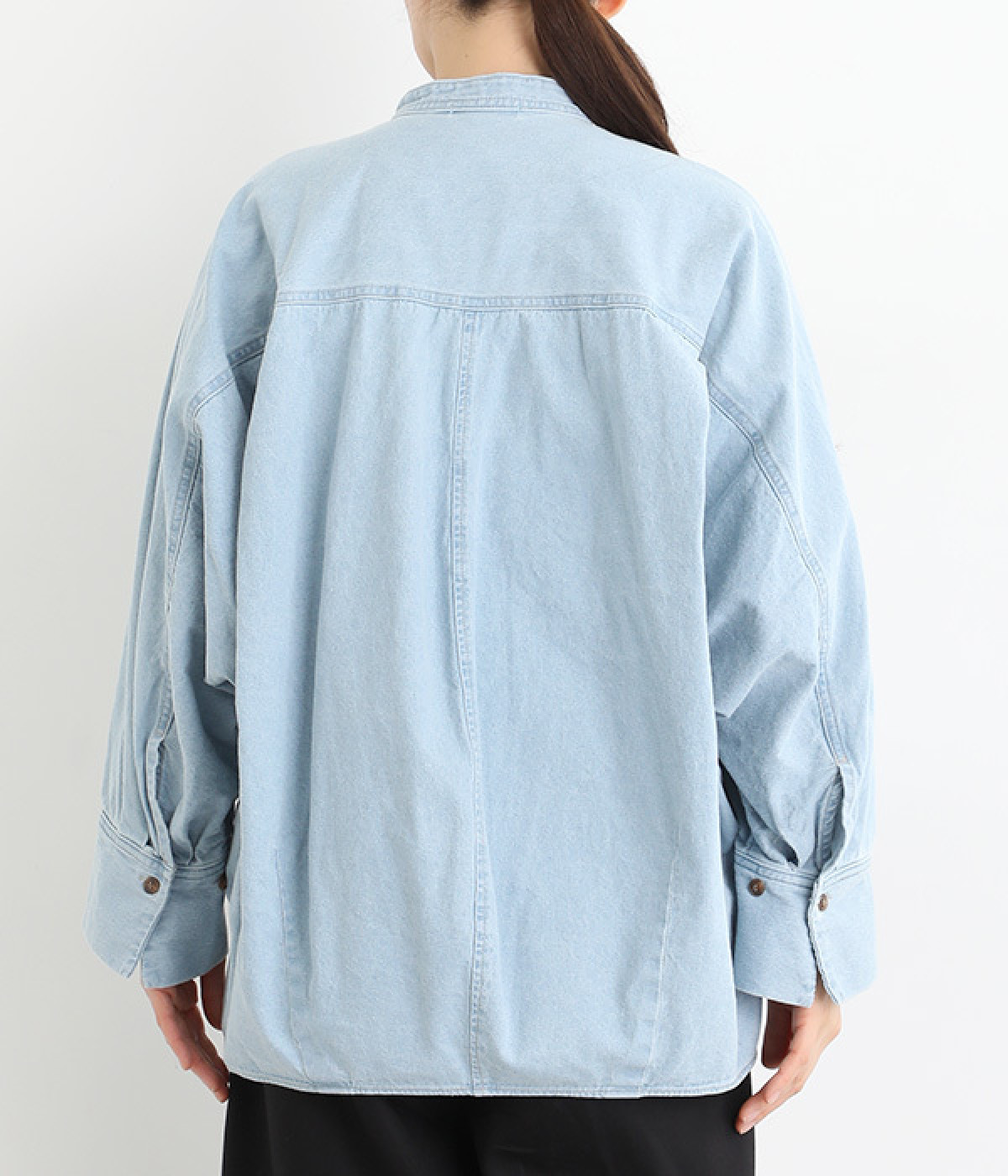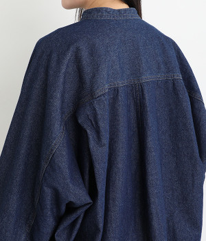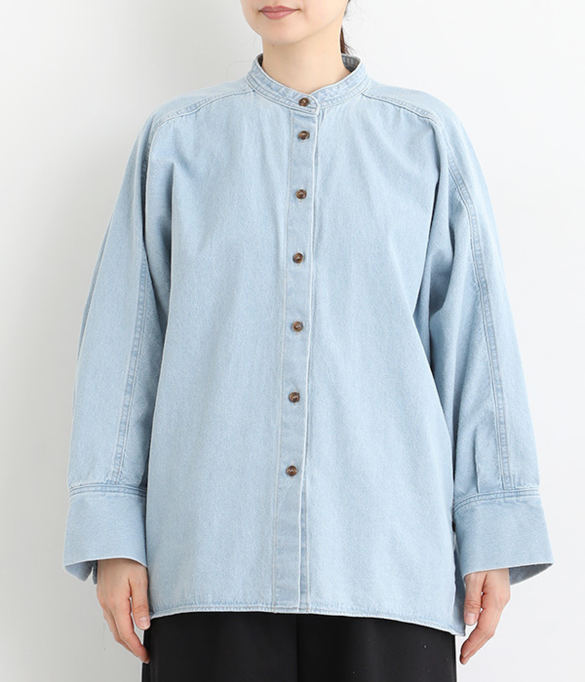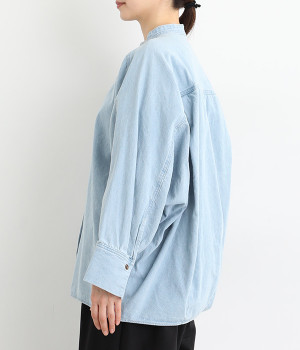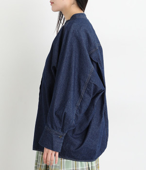 大胆なドルマンスリーブが生み出す、ニュアンスたっぷりなシルエットが目を引くチュニックシャツ。後ろ裾にはダーツを入れ、丸みのあるやわらかなフォルムに仕上げました。襟を抜いて、さっと羽織るだけでも絵になる一枚です。
