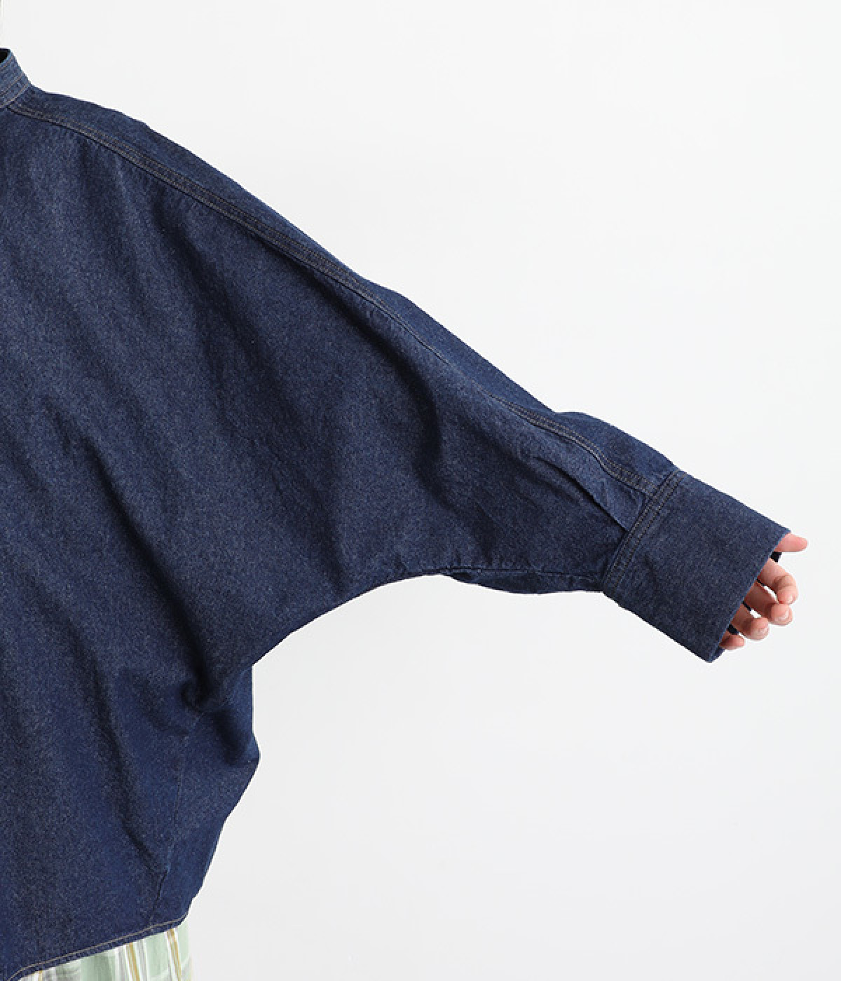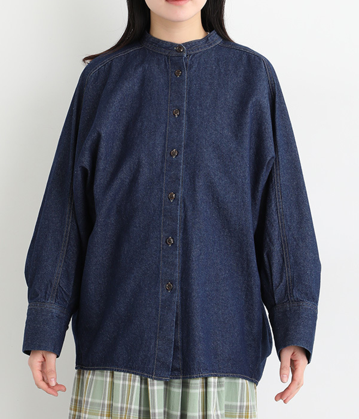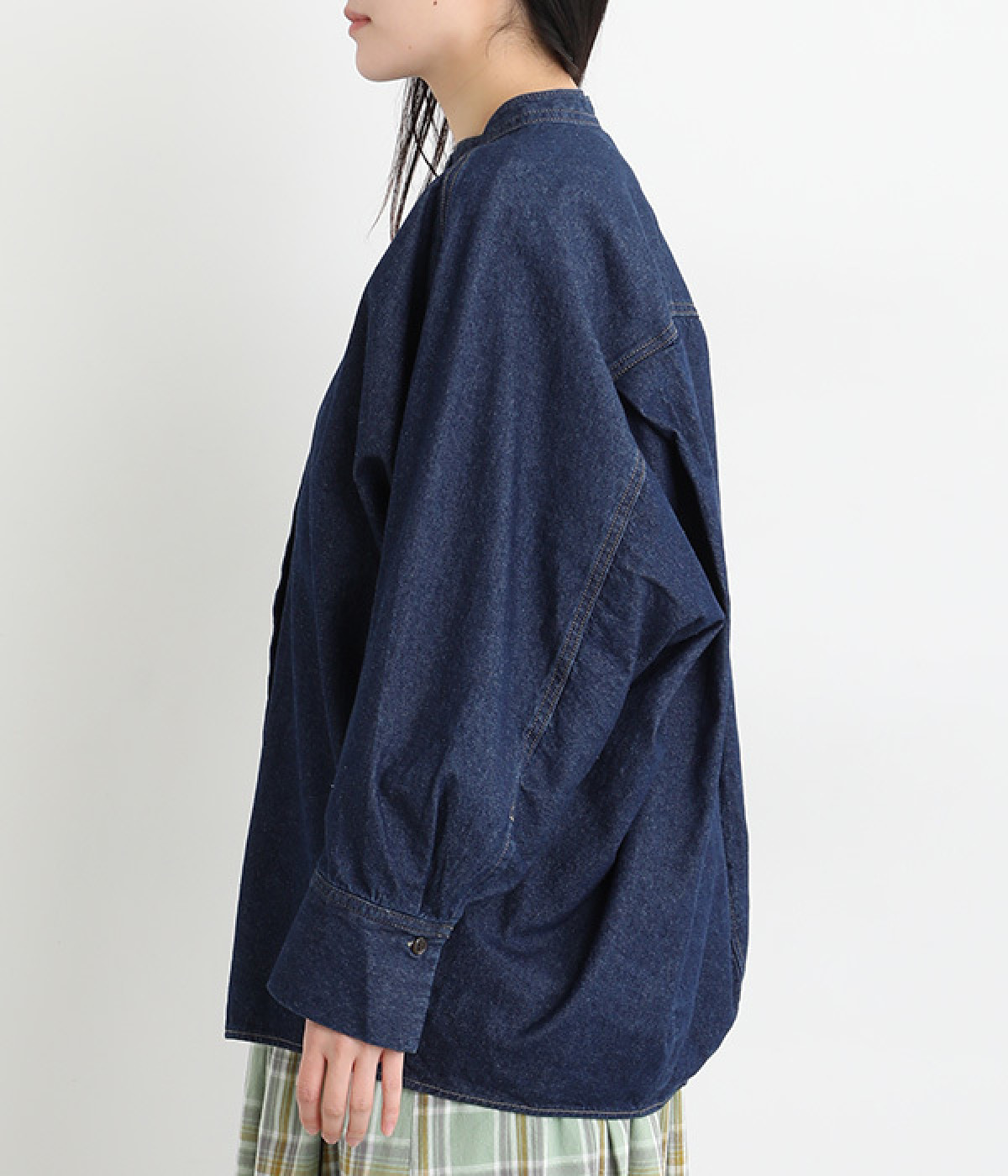 大胆なドルマンスリーブが生み出す、ニュアンスたっぷりなシルエットが目を引くチュニックシャツ。後ろ裾にはダーツを入れ、丸みのあるやわらかなフォルムに仕上げました。襟を抜いて、さっと羽織るだけでも絵になる一枚です。
