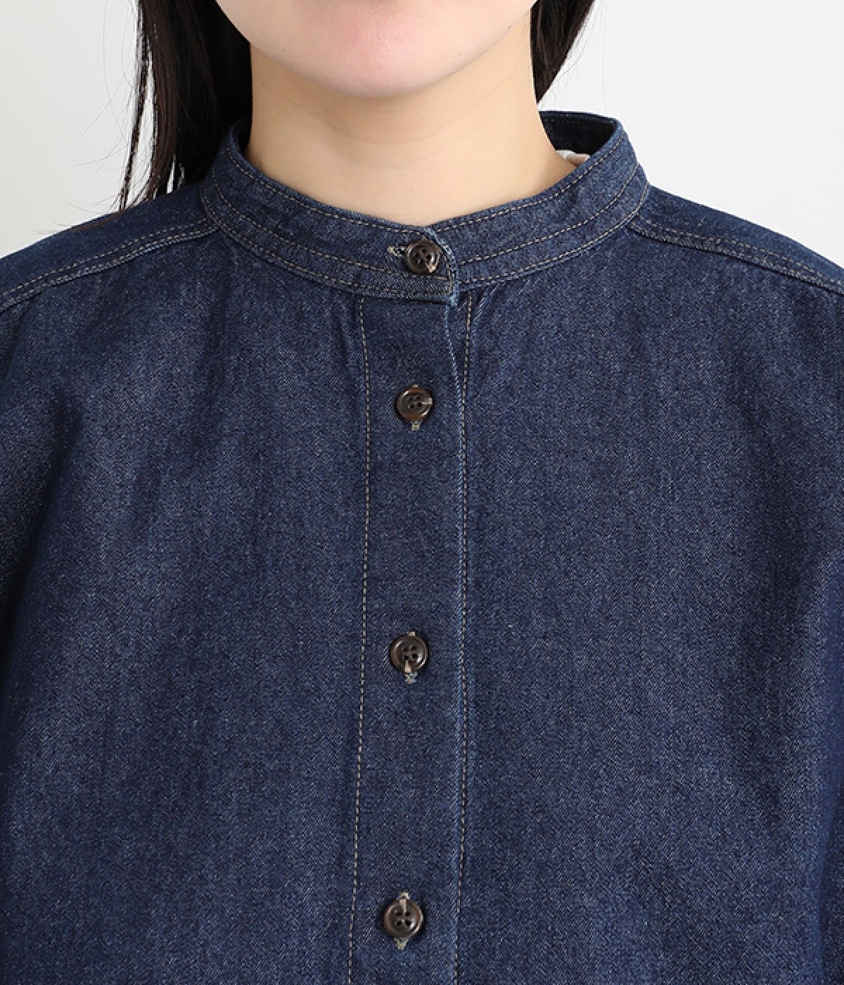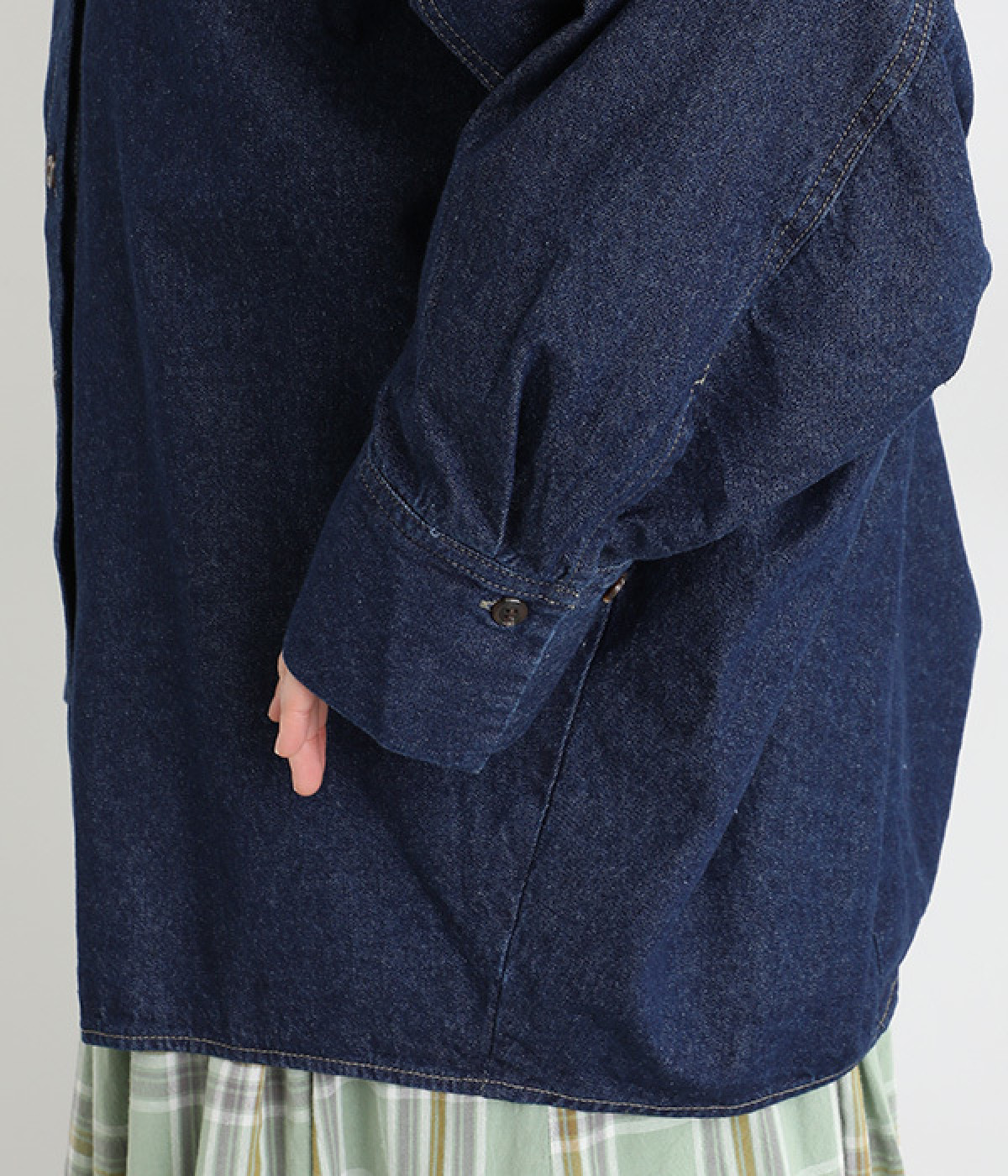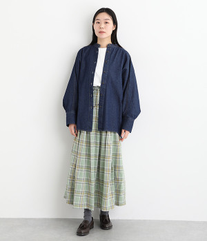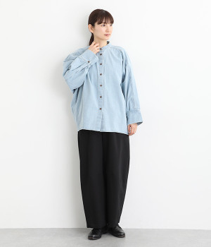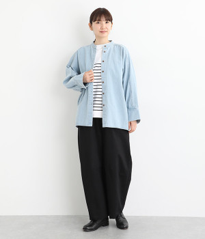しっかりとした生地感ながらも、硬さやごわつきを抑え、肌なじみの良いソフトな風合いのデニムを使用しました。8.5ozのほどよい厚みを備え、季節を選ばず着まわせる素材です。
