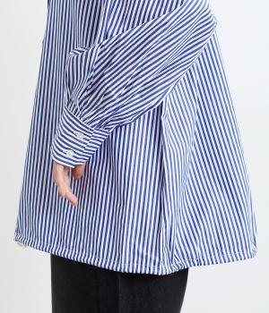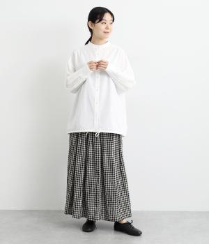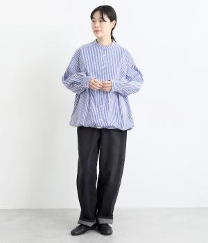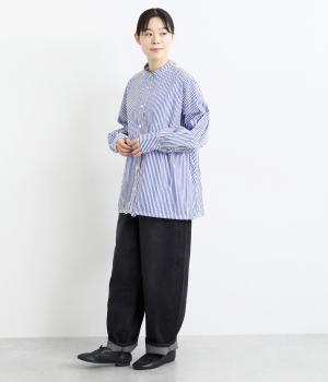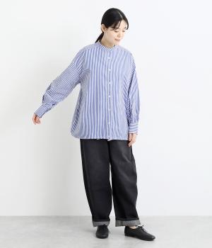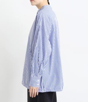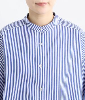 ややハリのあるしっかりめの風合いのコットン生地。着まわしやすい無地タイプと、すっきりとしたストライプ柄をご用意。さらりとした肌触りが心地よく、トップスとしても羽織りものとしても重宝します。