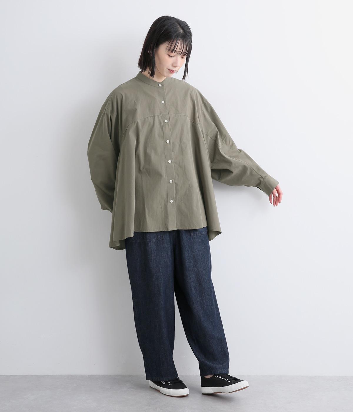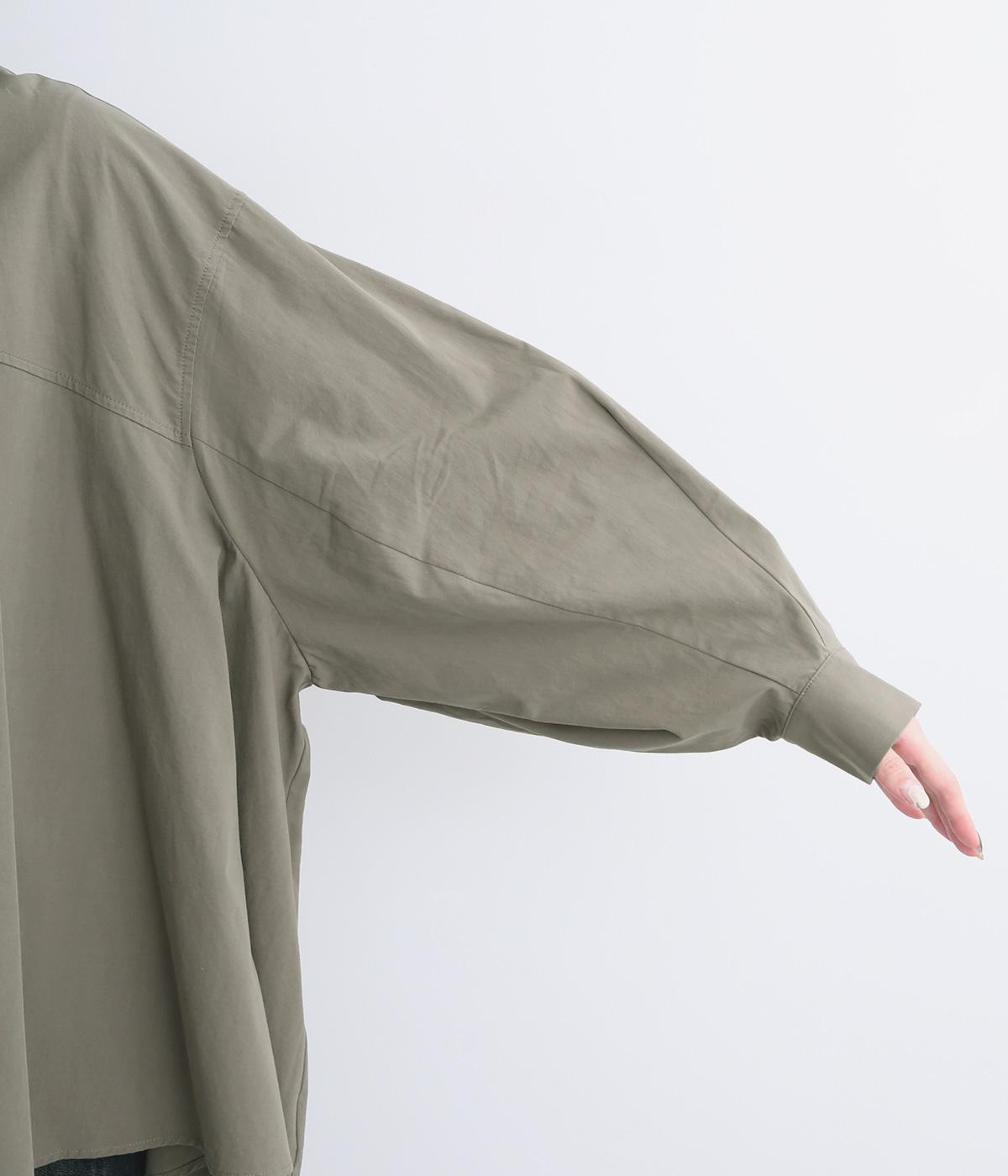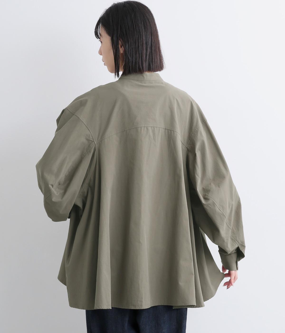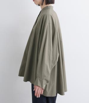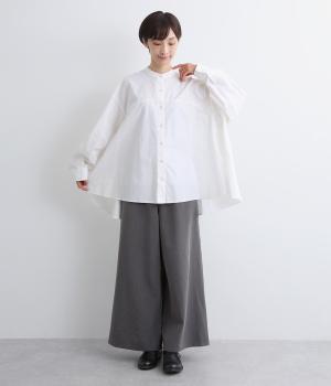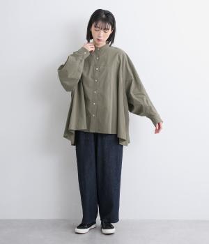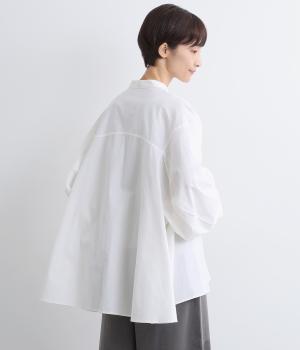 後ろ袖部分にしっかりと立体感を出した変形袖デザインがポイント。たっぷり分量のテントラインチュニックで、着るだけで雰囲気が出る優秀アイテムです。気温調整しやすい羽織りものとして使用するのもおすすめです。