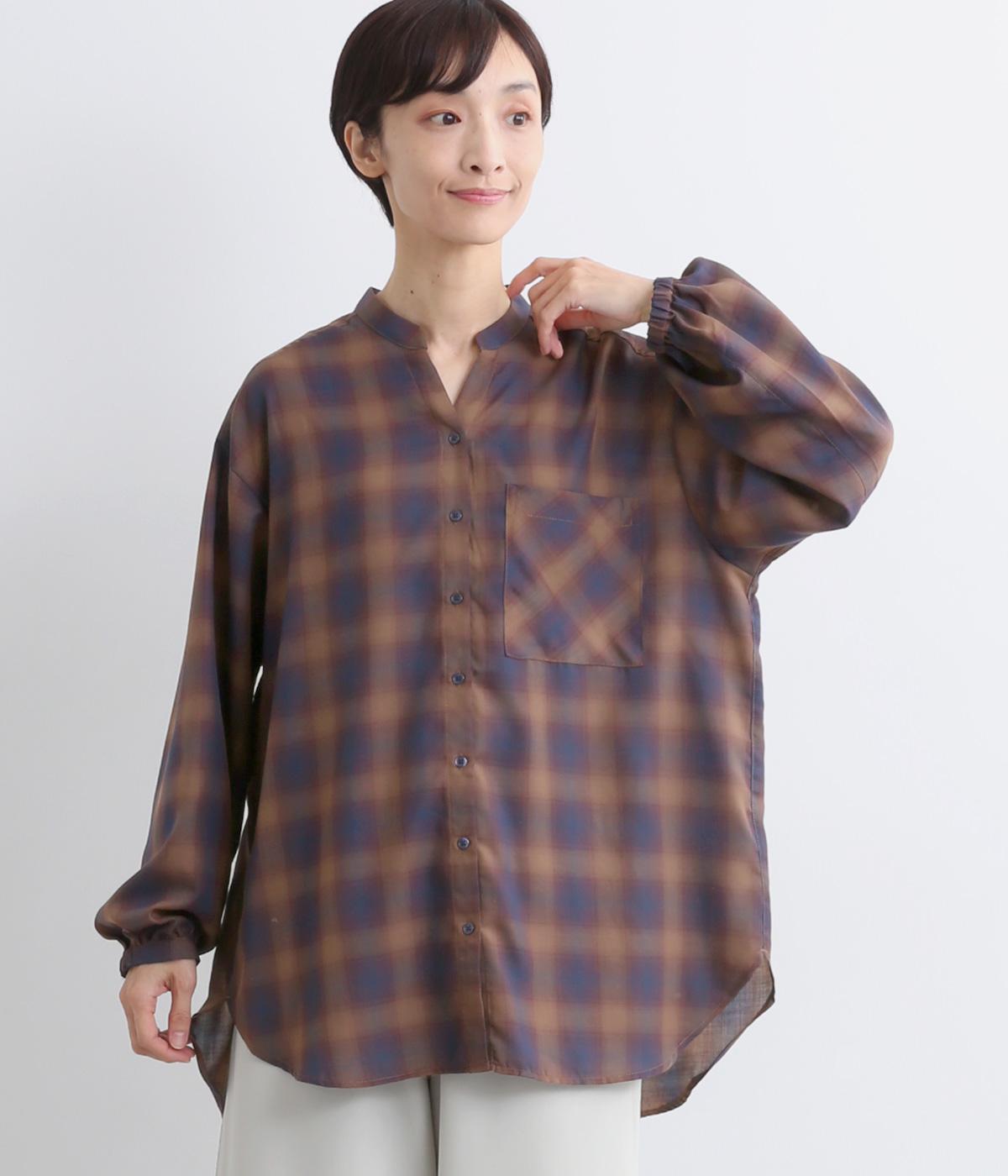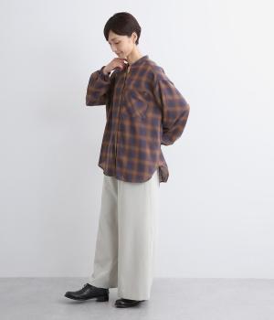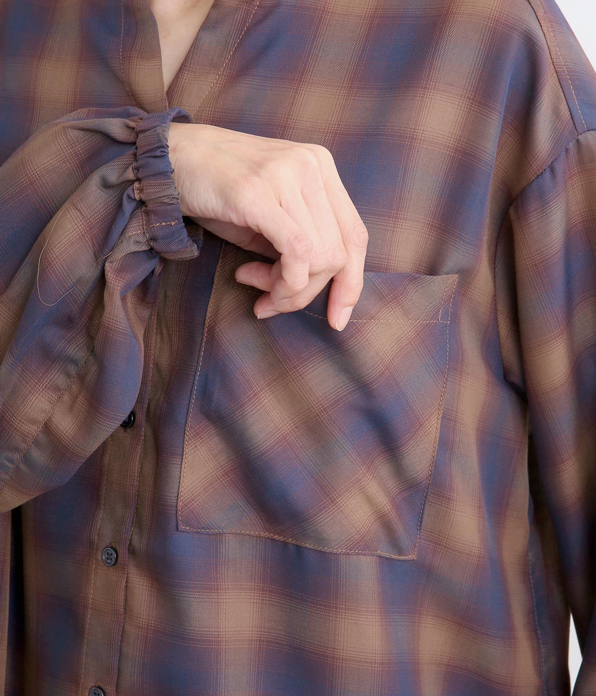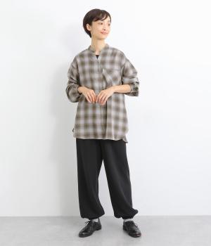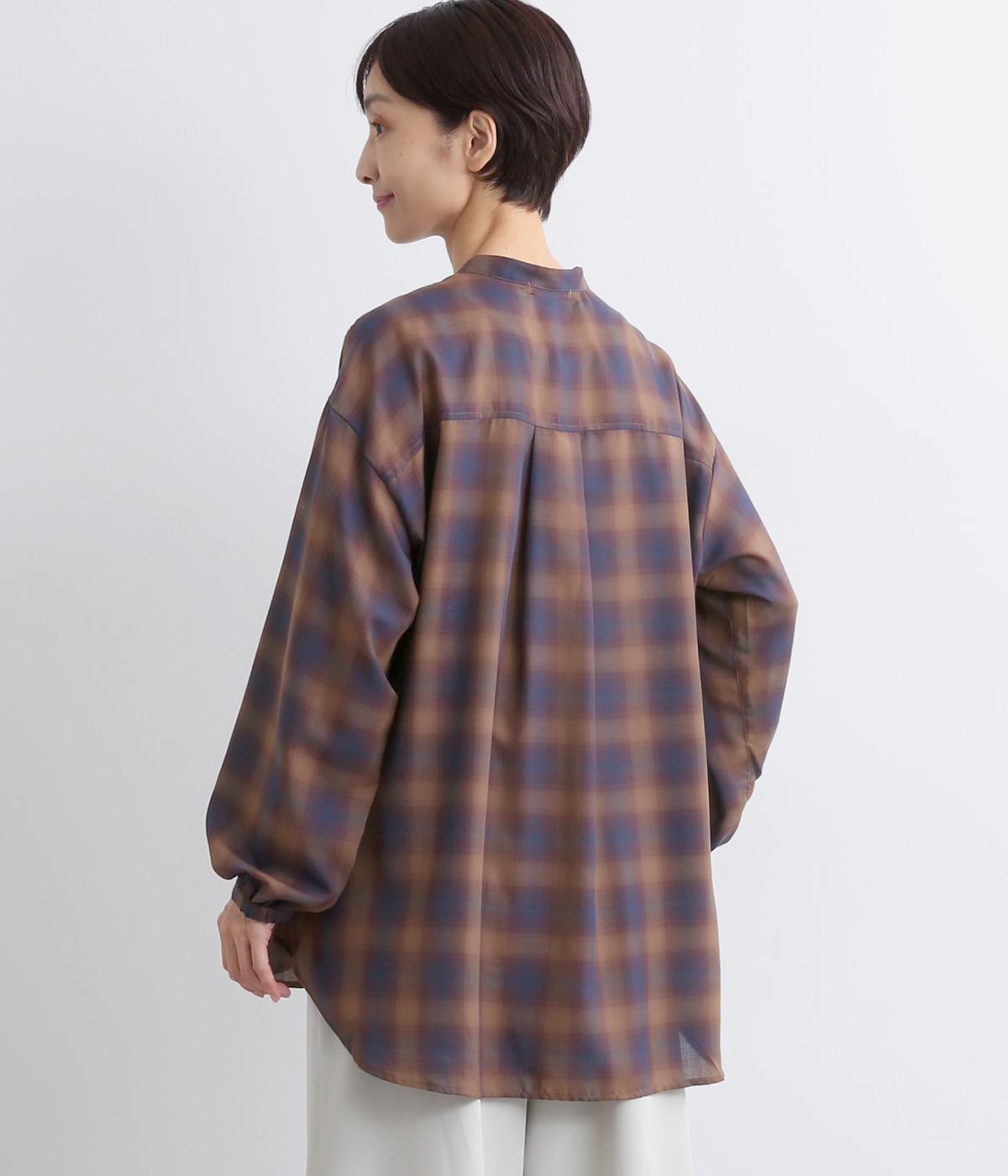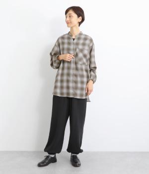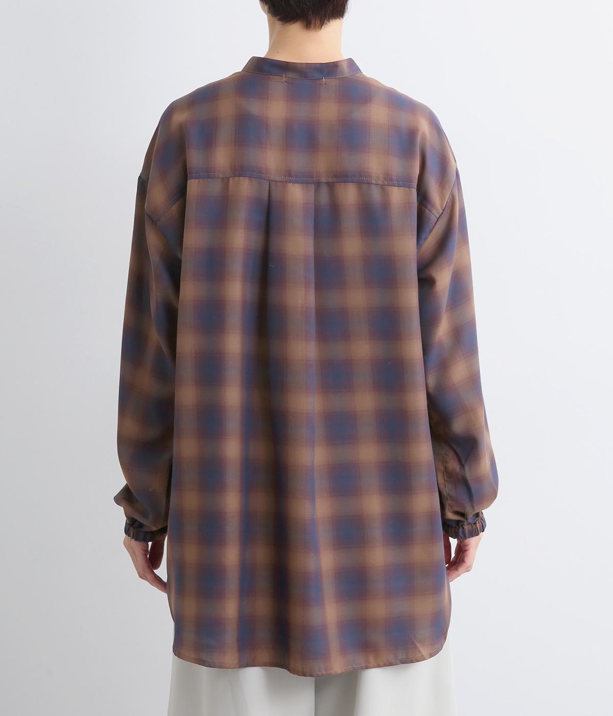 シンプルなスキッパーチュニックでインナー使いもしやすいよう、着丈を長めにしています。袖口は袖下の半分がゴム仕様になっており、楽に袖丈調整ができるのがポイントに。後ろ身頃にはタックをあしらって、着心地のよさを高めています。