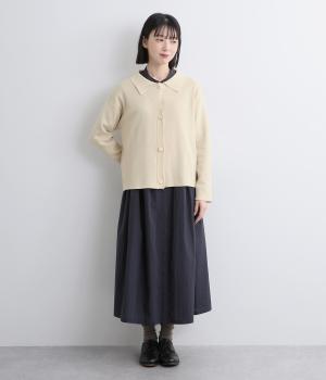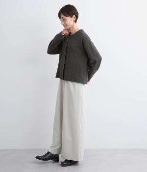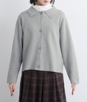 詰まりすぎない襟元がポイントの襟つきカーディガンです。ゆったりとしたサイズ感なので、様々なアイテムとのレイヤードが楽しめます。前を閉じてプルオーバーとして活用するのもおすすめです。