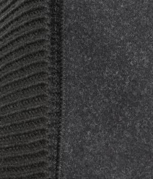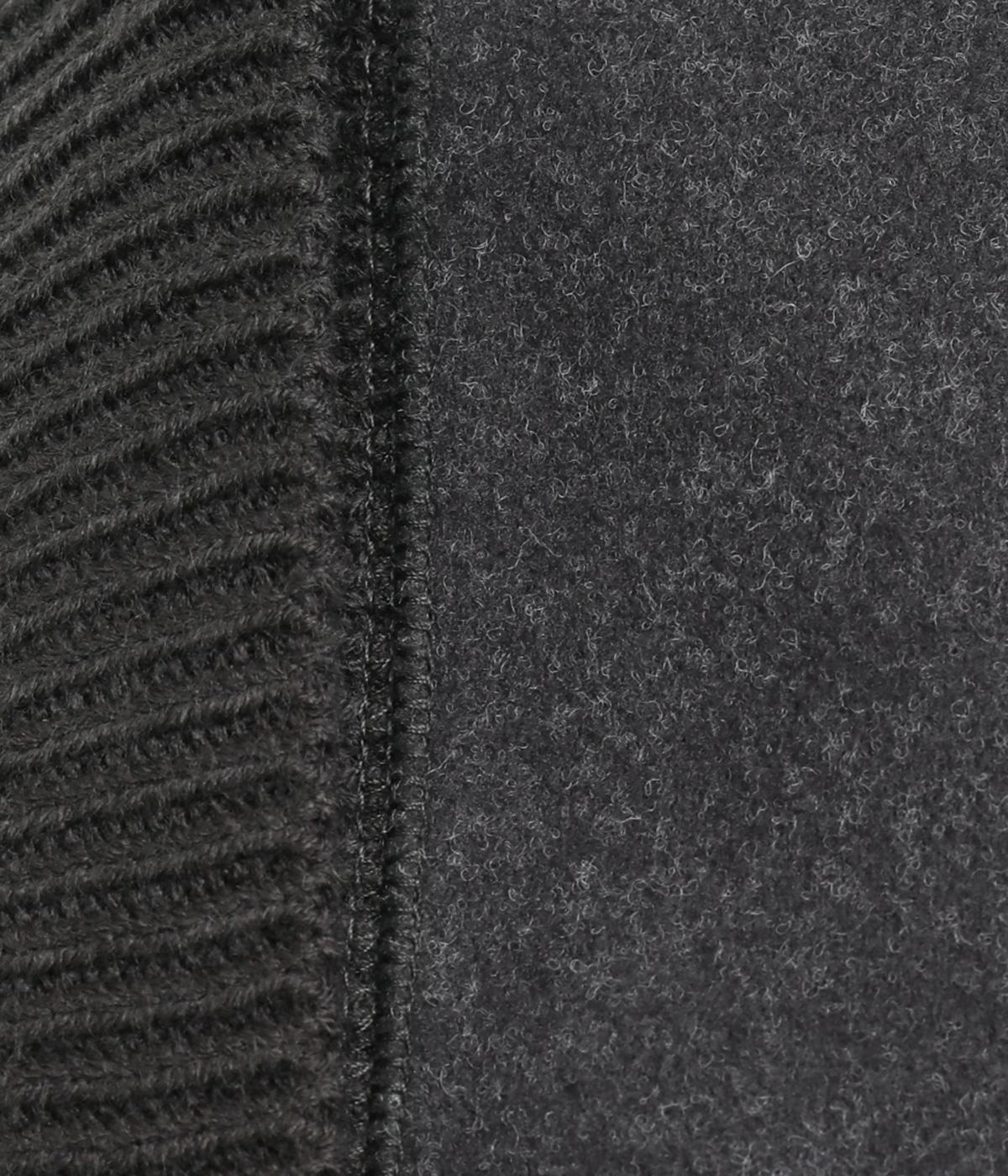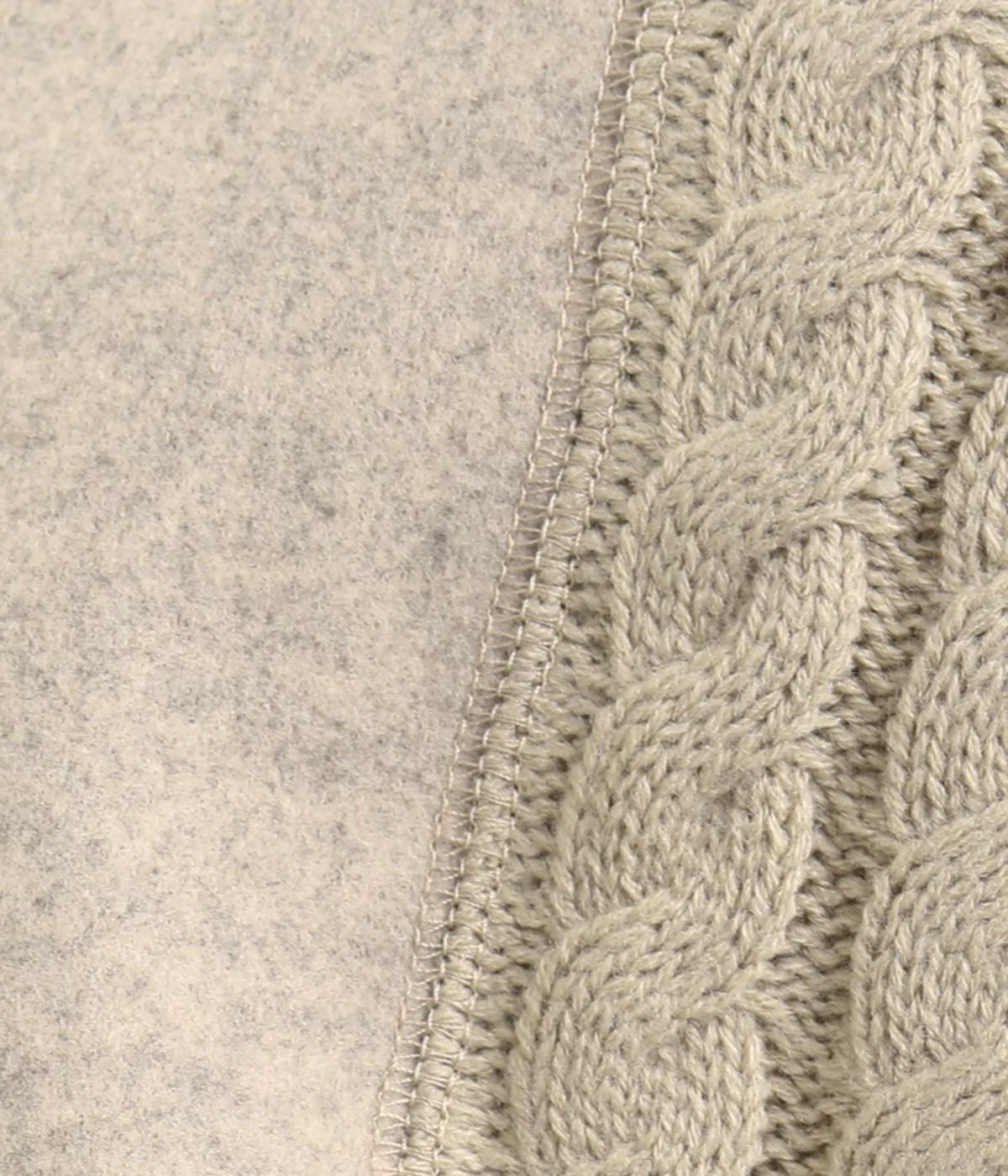 ニットとメルトン生地のコントラストが魅力。アクリルとポリエステル素材で、ふんわりとごわつきにくく重ね着も楽しめます。イージーケアで気軽さも◎。