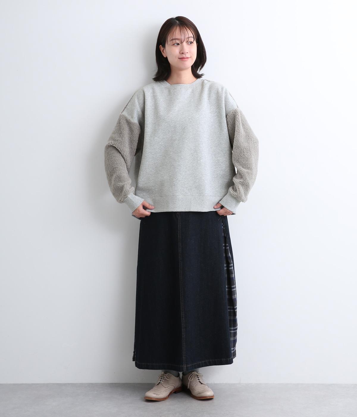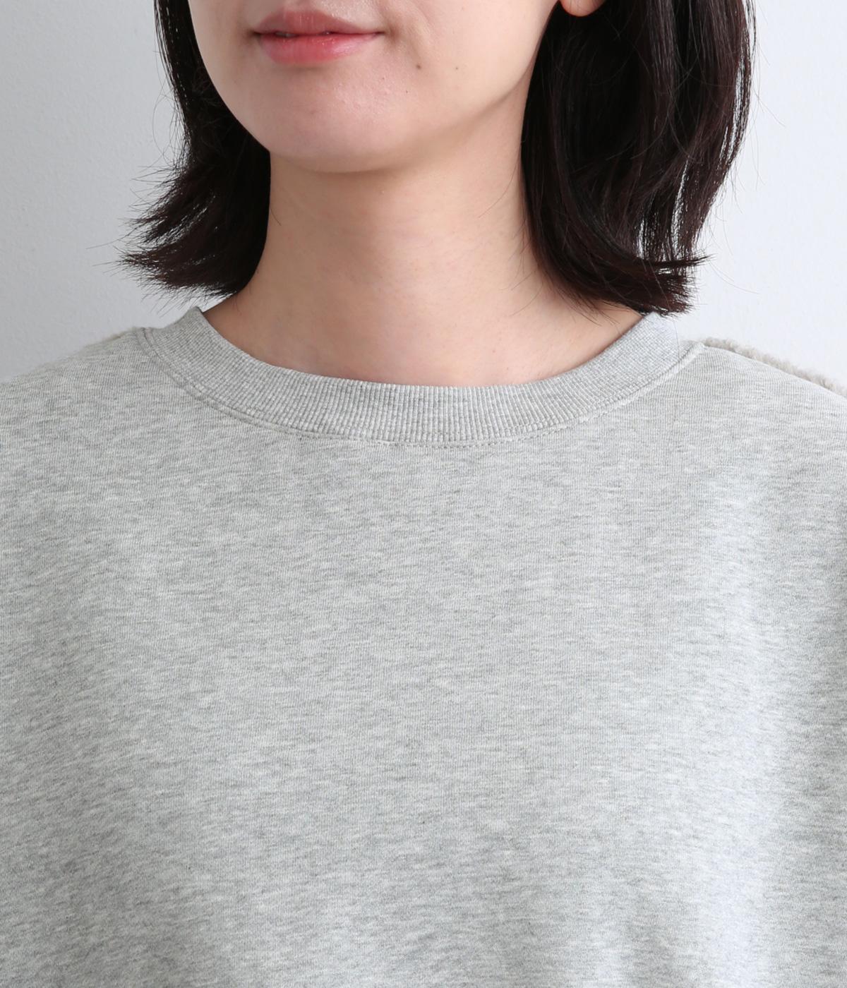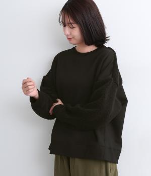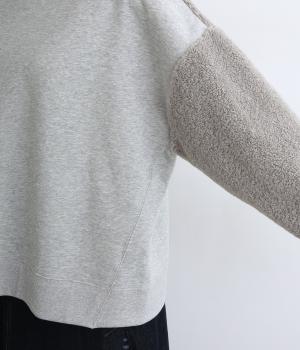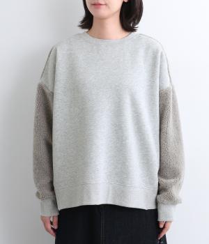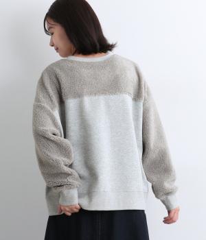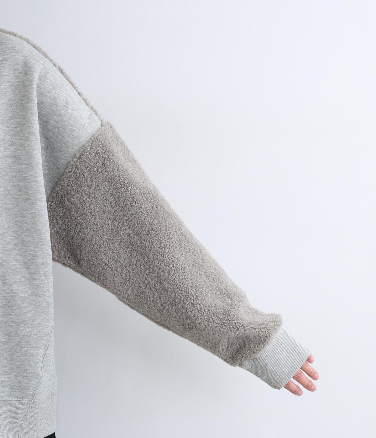 袖からバックサイドにかけて、ボア仕立てのデザインに仕上げた、おしゃれなプルオーバー。カジュアルなスウェット生地とのドッキングで、個性が光る一枚になっています。オーバーサイズなので体のラインを拾いにくく、デニムやラフなパンツとも相性抜群。