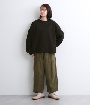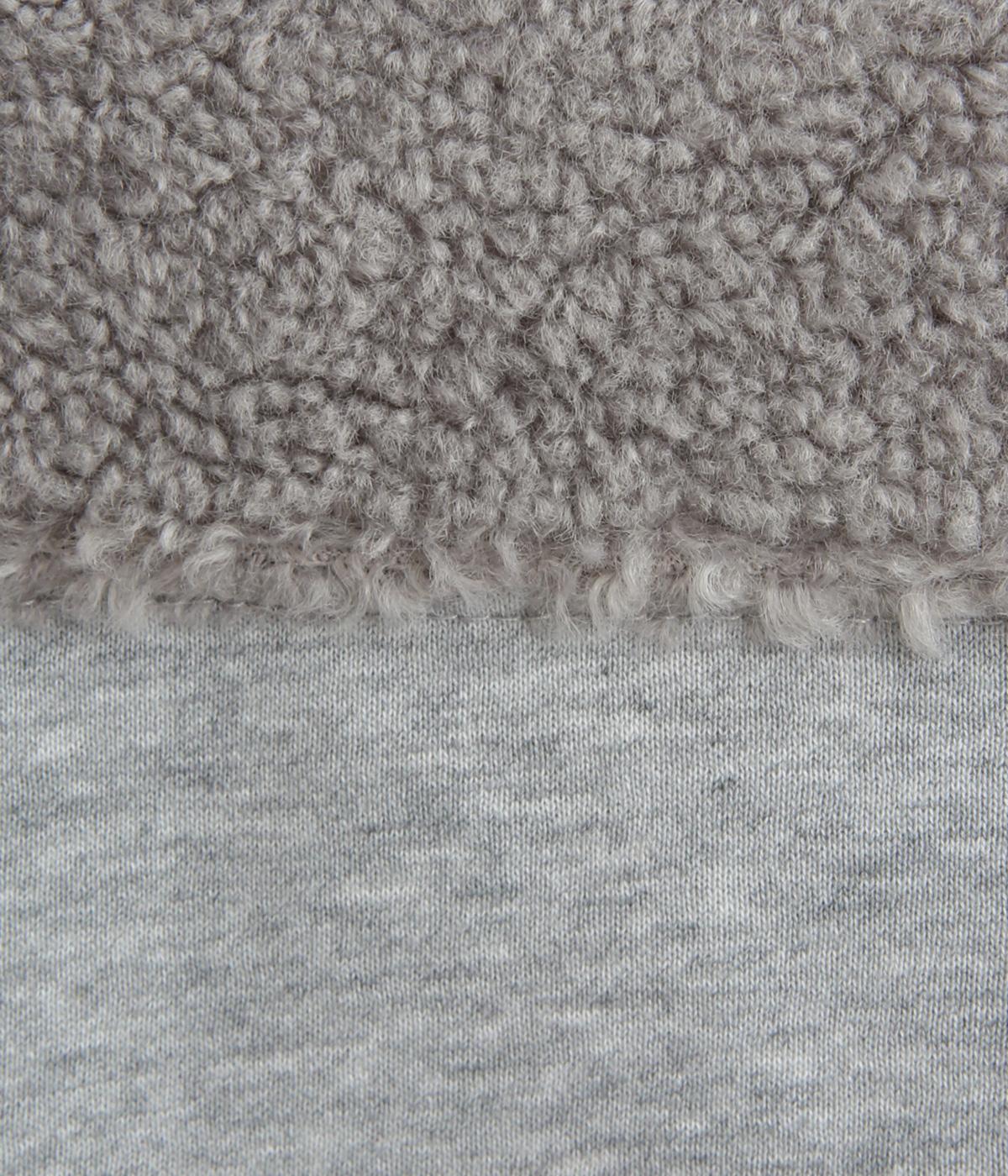 コットン、ポリエステルで仕上げたなめらかでしっかりしたスウェット生地。袖部分はポリエステル、リブ部分はポリエステル、ポリウレタンを使用しています。軽くてあたたかい裏起毛。