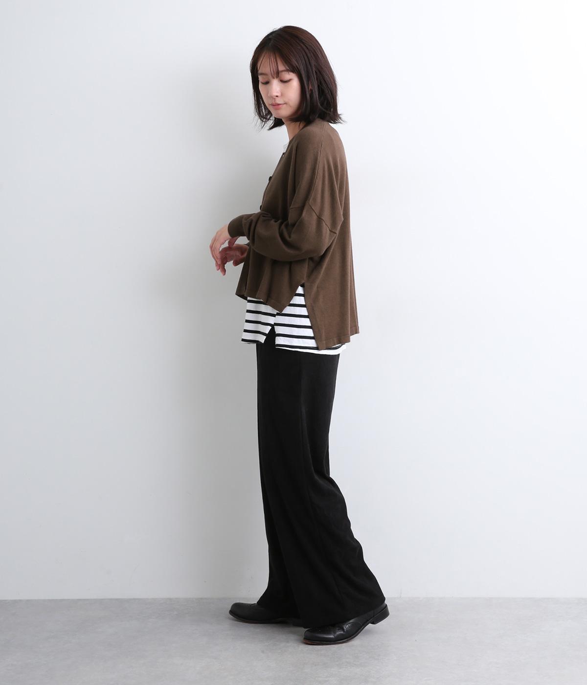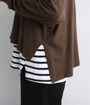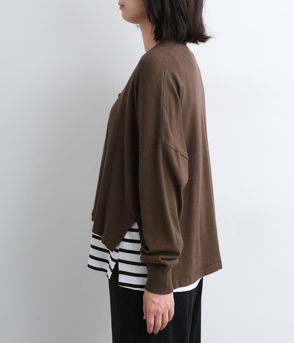 ゆったりとしたシルエットのポンチョカーディガン。フロントはショート丈ながら、バックロングになっているので、気になる体のラインをきれいなシルエットに導いてくれる一着です。レイヤードスタイルが映えるサイドスリットも、ほどよいアクセントになっています。
