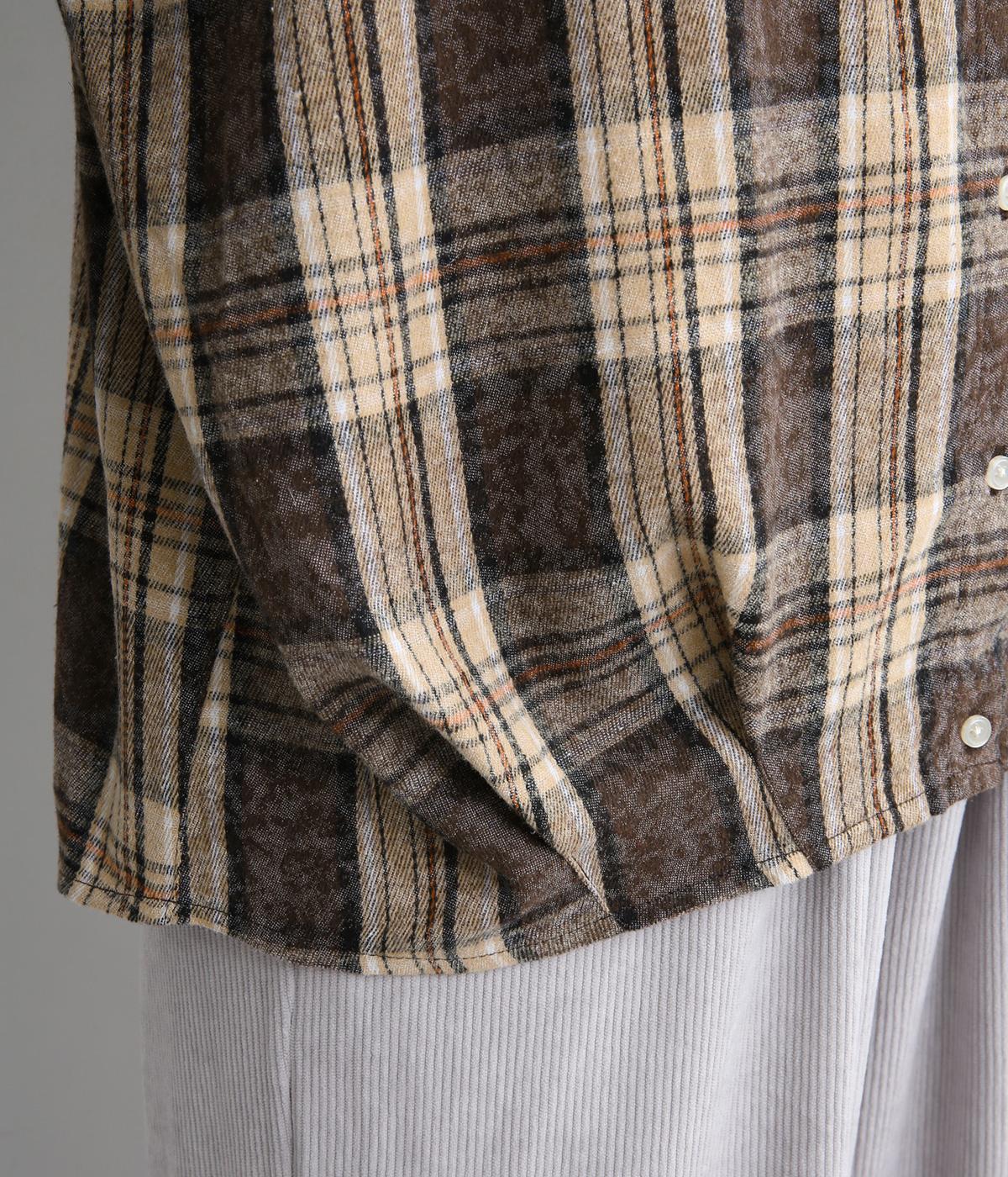 絶妙な色落ち感や風合いを表現するのに最適なピグメント加工を施したチェック柄のチュニック。裾にタックを入れることで、センスの良さを感じさせる個性的な形状に仕上げました。シンプルなパンツと合わせるだけでも、ワンランク上のコーディネートが完成します。