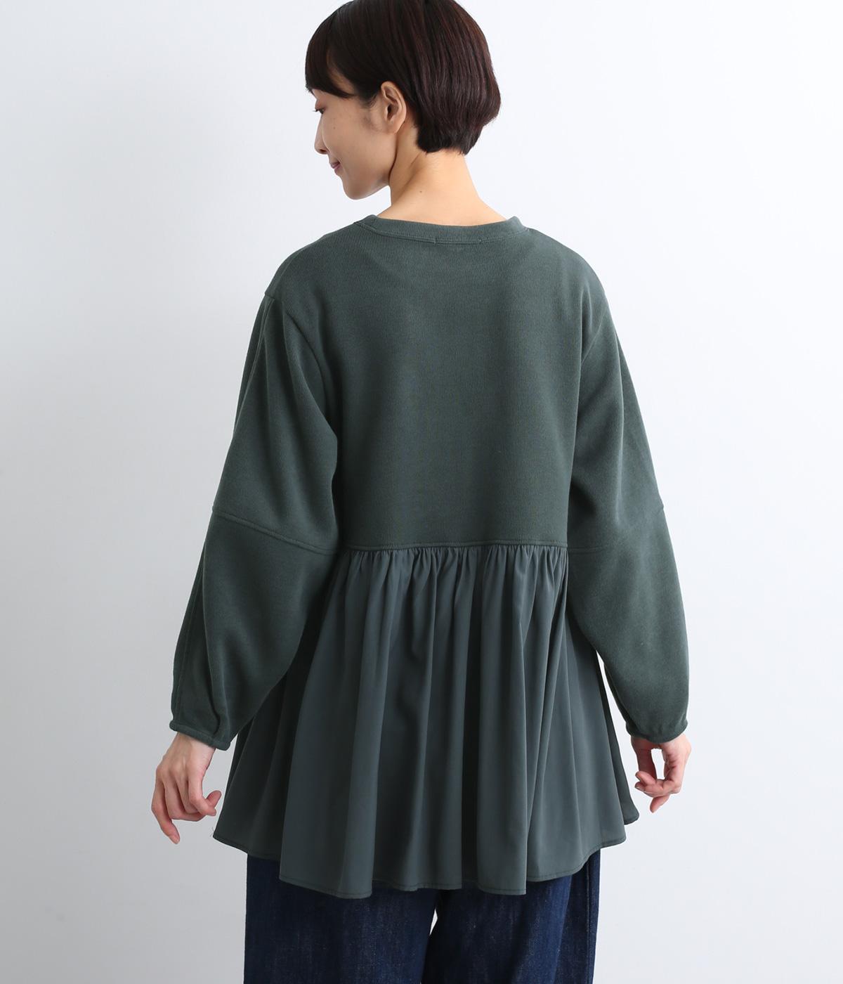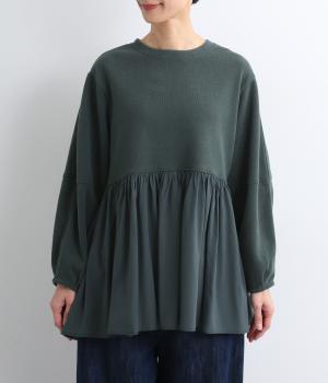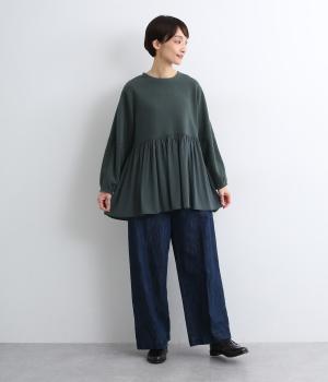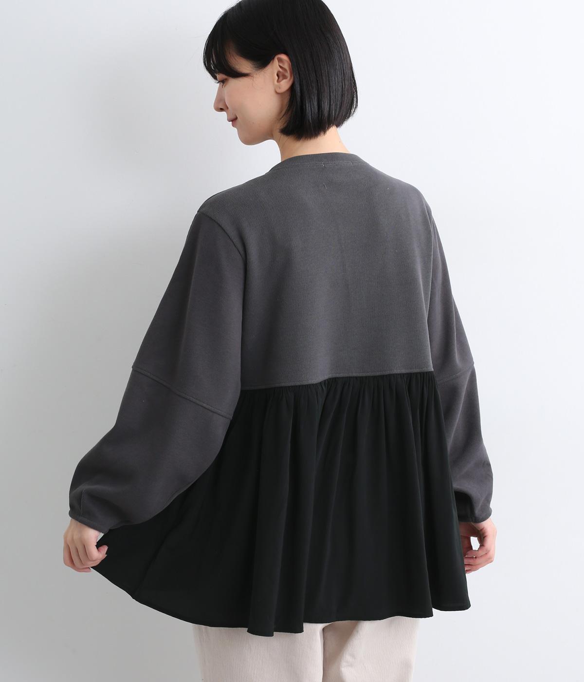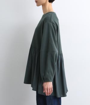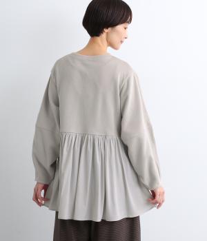 切り替えを入れたランタン袖や切り替え下のフレア感で着映え力を高めたプルオーバー。着丈は前後差をつけ、ヒップが隠れるほどの丈感でボトム合わせも困りません。いつものスタイリングもすこし華やかに魅せてくれる一枚です。