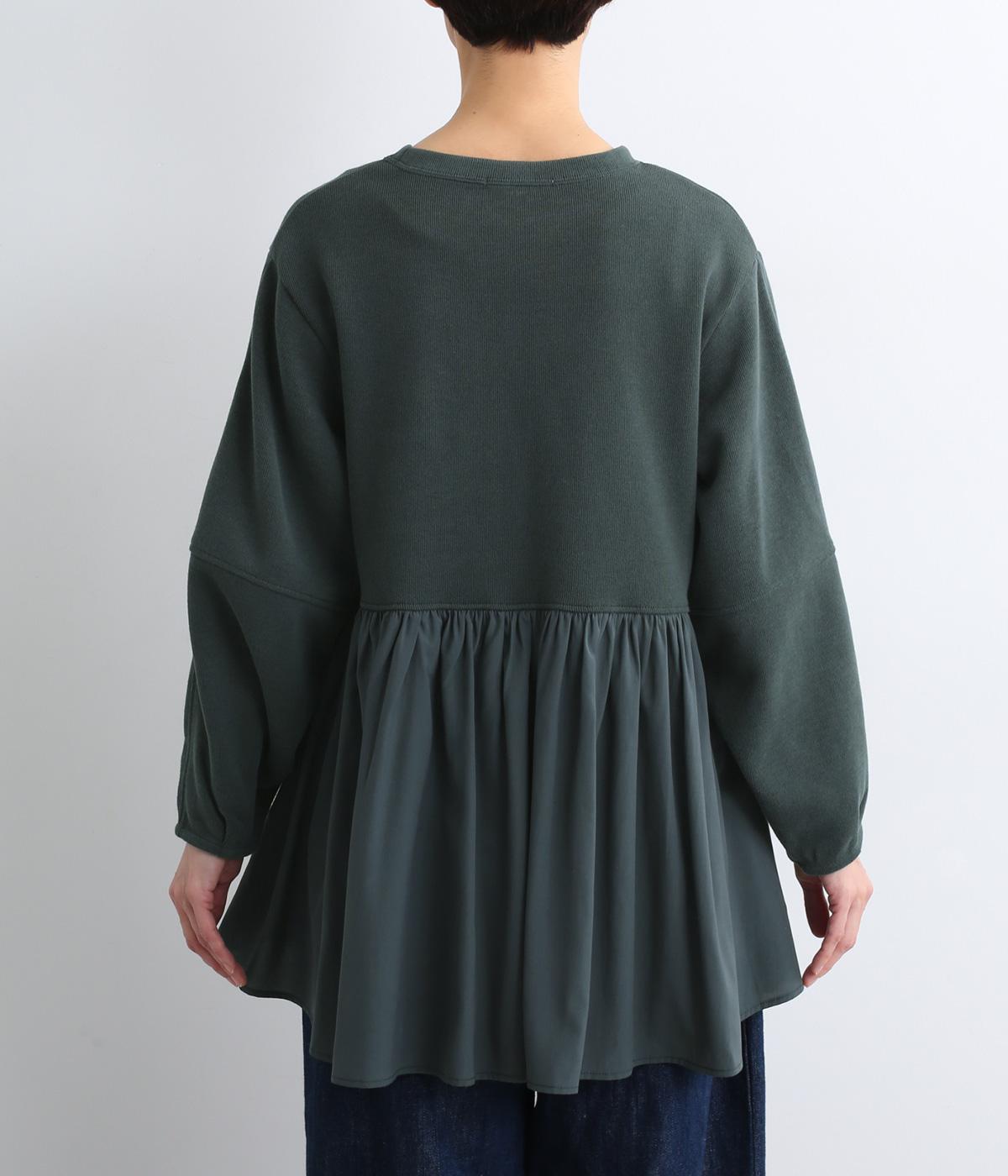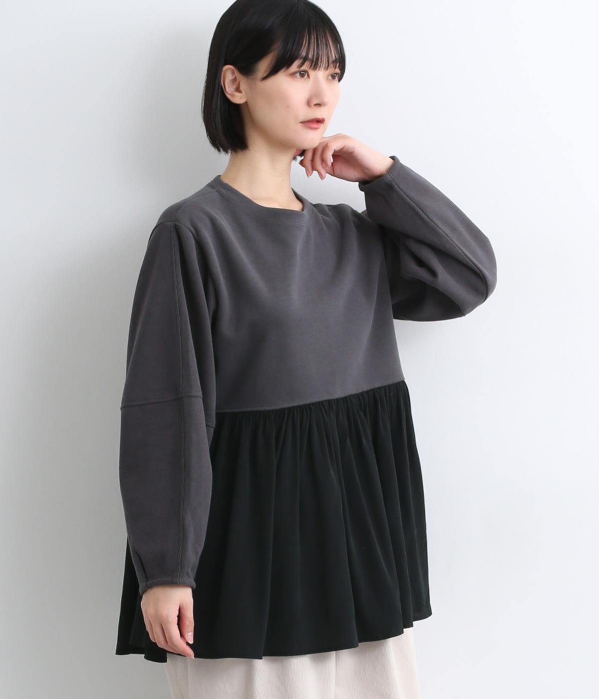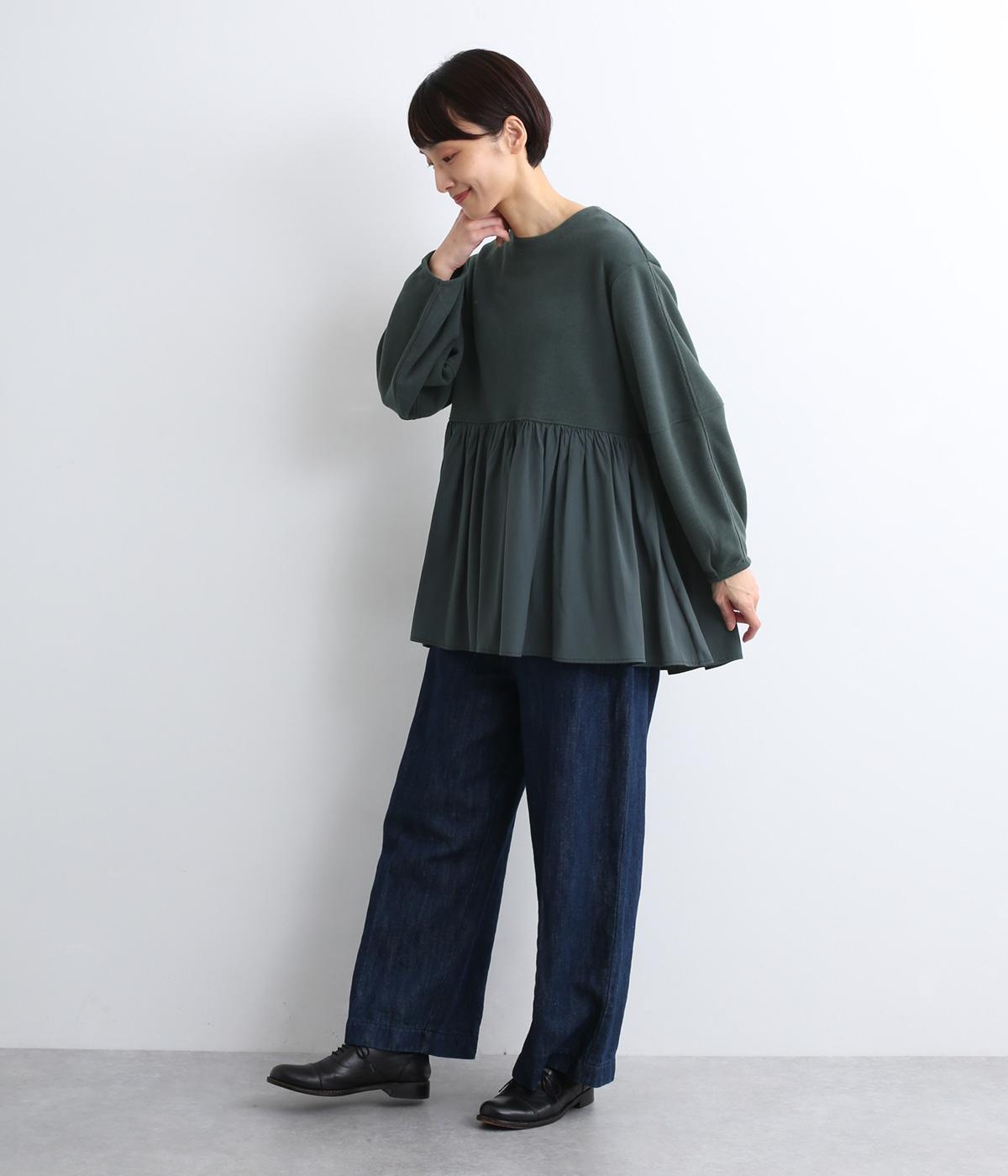 切り替えを入れたランタン袖や切り替え下のフレア感で着映え力を高めたプルオーバー。着丈は前後差をつけ、ヒップが隠れるほどの丈感でボトム合わせも困りません。いつものスタイリングもすこし華やかに魅せてくれる一枚です。