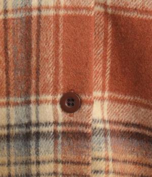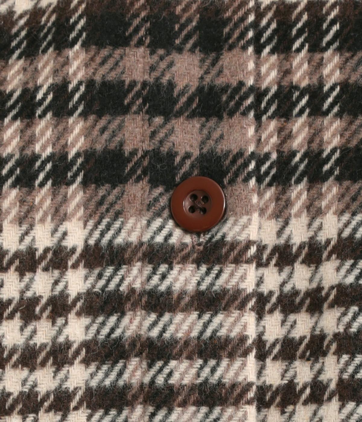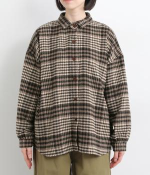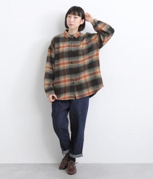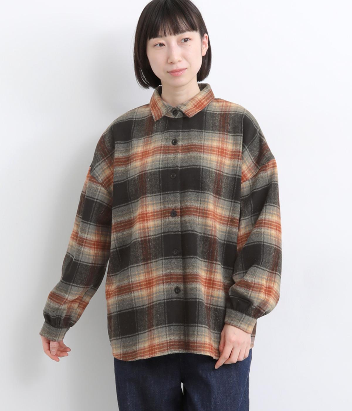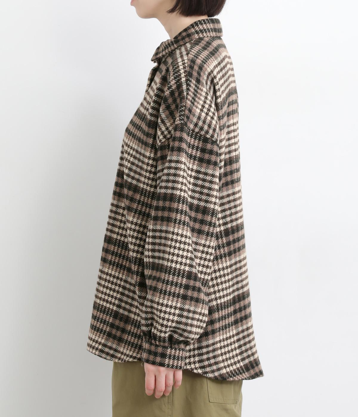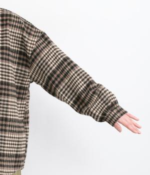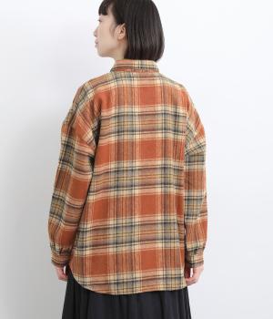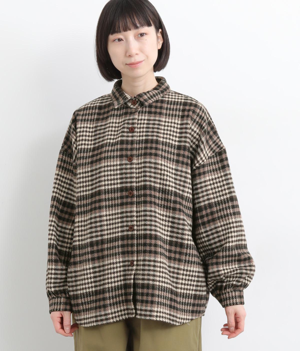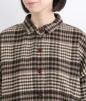 ナチュラルな色合いのチェック柄が印象的なシャツです。ゆったりとしたシルエットが体のラインを拾いにくく、リラックス感のある装いに。ほどよくボリュームのある袖口と、小さめの襟で、女性らしさもプラスしました。季節の変わり目には、軽めの羽織りとしても活躍する一枚です。