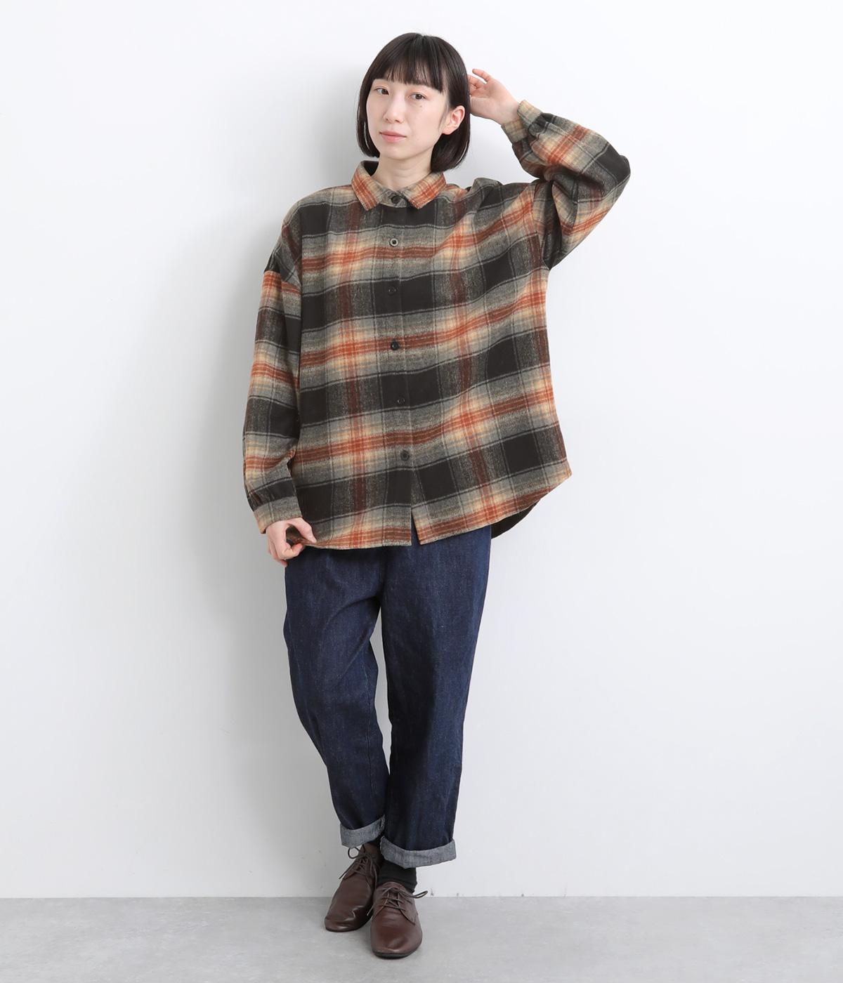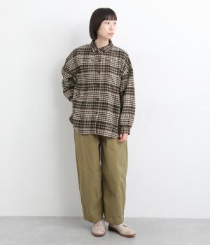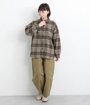 空気をふくんだようなあたたかみが特徴のネル起毛生地を使用。ふわりとソフトなタッチで、着るたびにほっと落ち着く質感です。しっかりとした厚みがあるので、シルエットがきれいに整い、デイリー使いにもぴったりの快適さです。