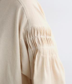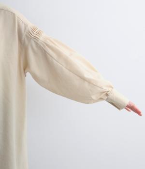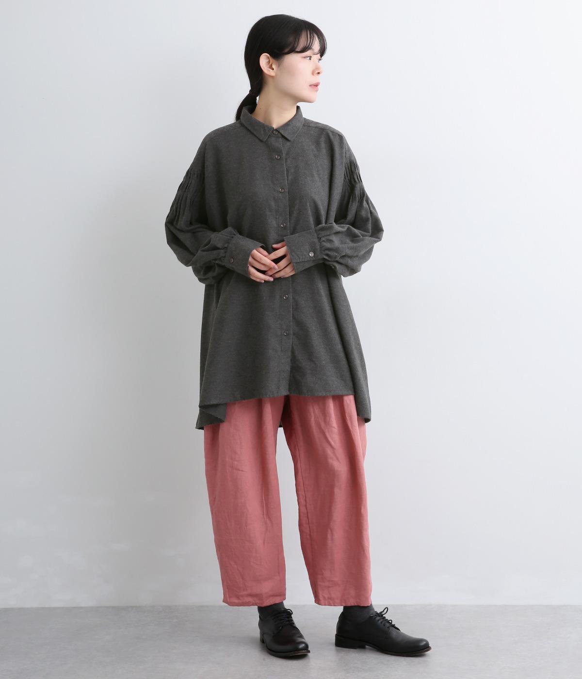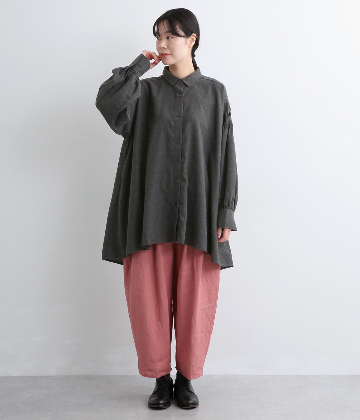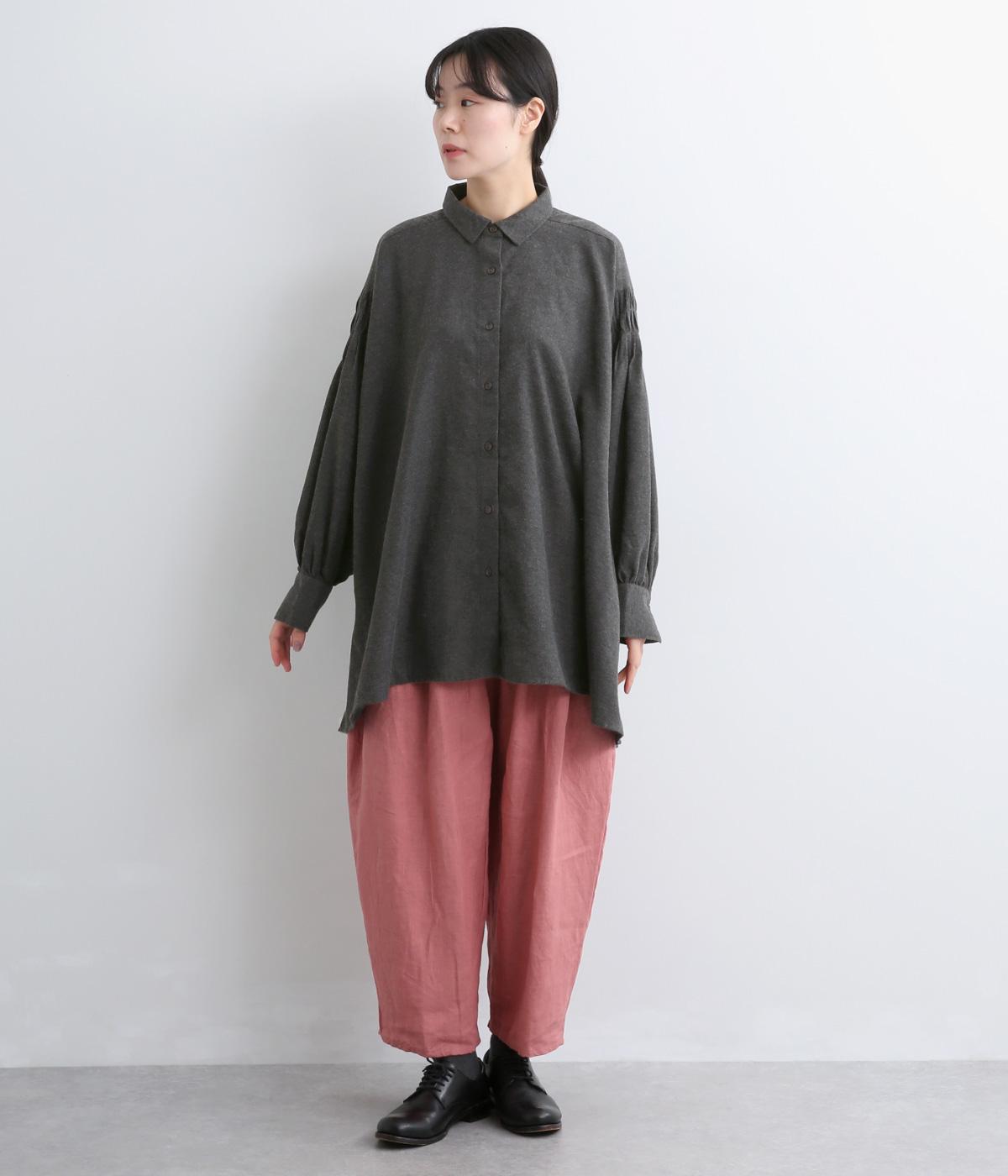 ネップや起毛がある素朴で優しい表情の混紡生地です。あたたかみのある雰囲気にほのかなとろみが品をプラス。心地いい手ざわりの素材感です。