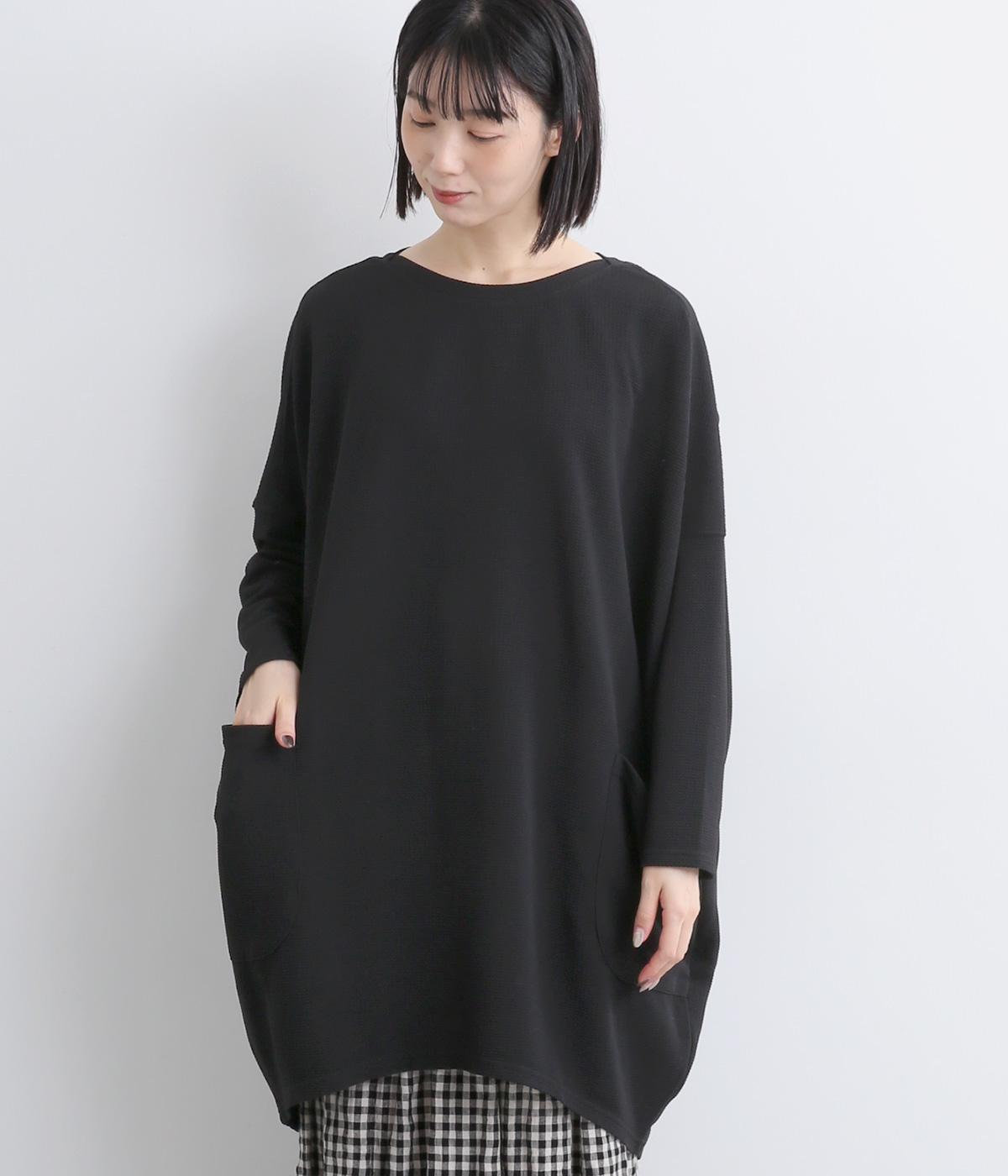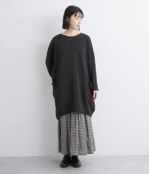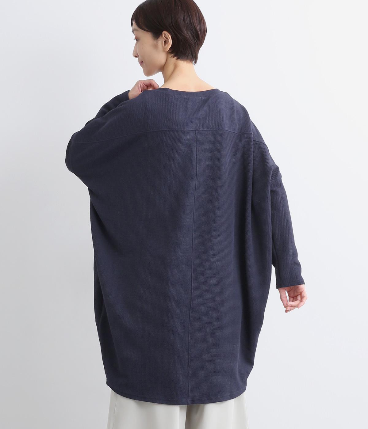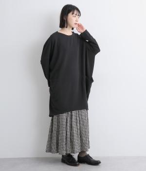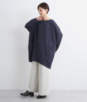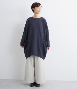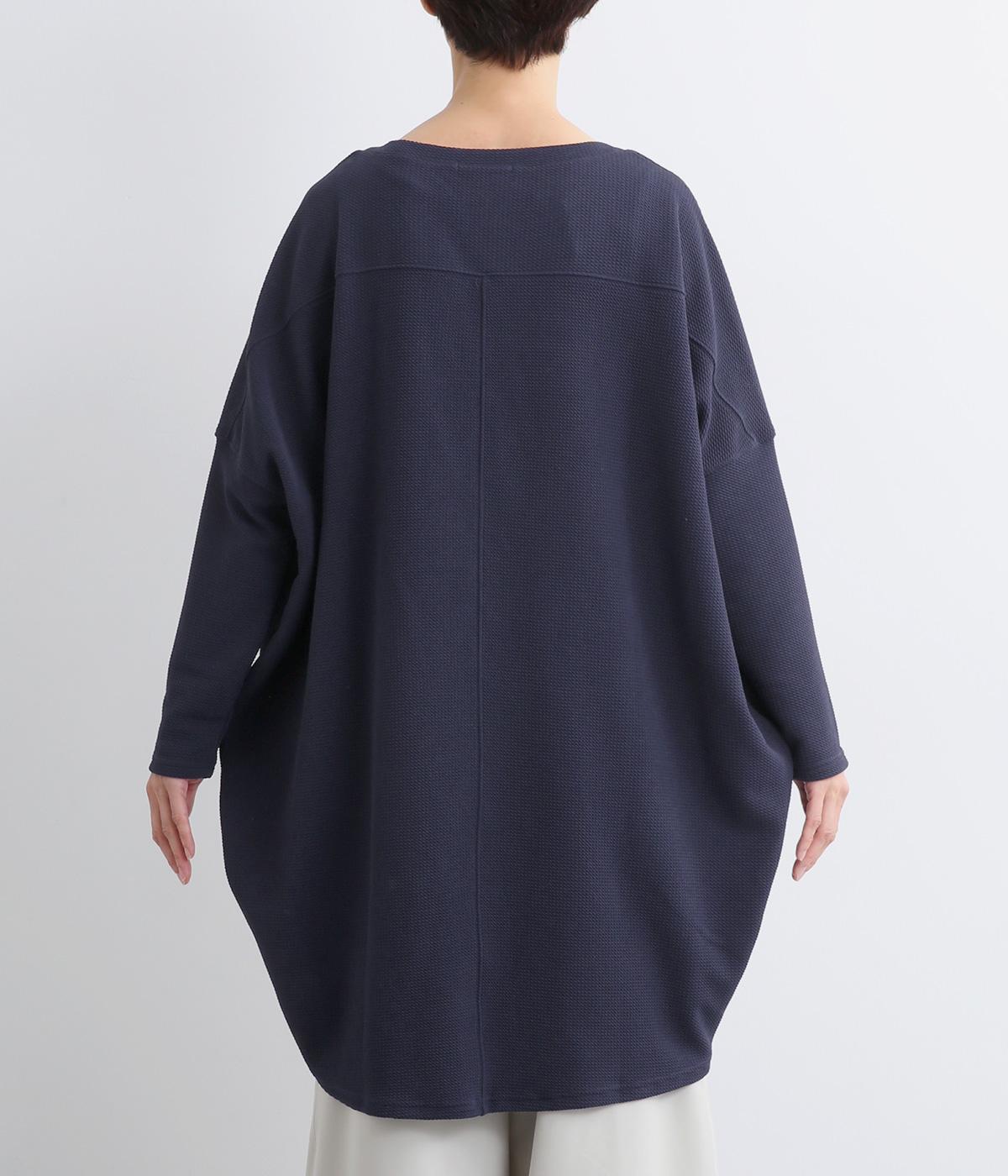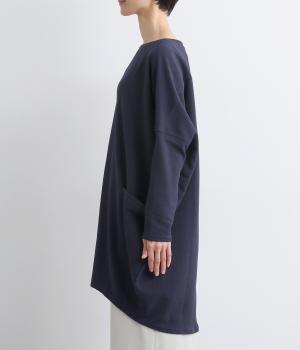 ワイドなサイジングで丸いシルエットが特徴のコクーンワンピースです。ボートネックは一工夫した仕様で、首元をすっきりと見せてくれます。機能性もデザイン性も高い、大きなポケットつきです。