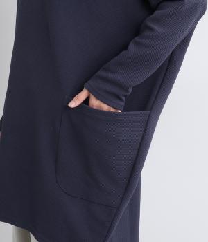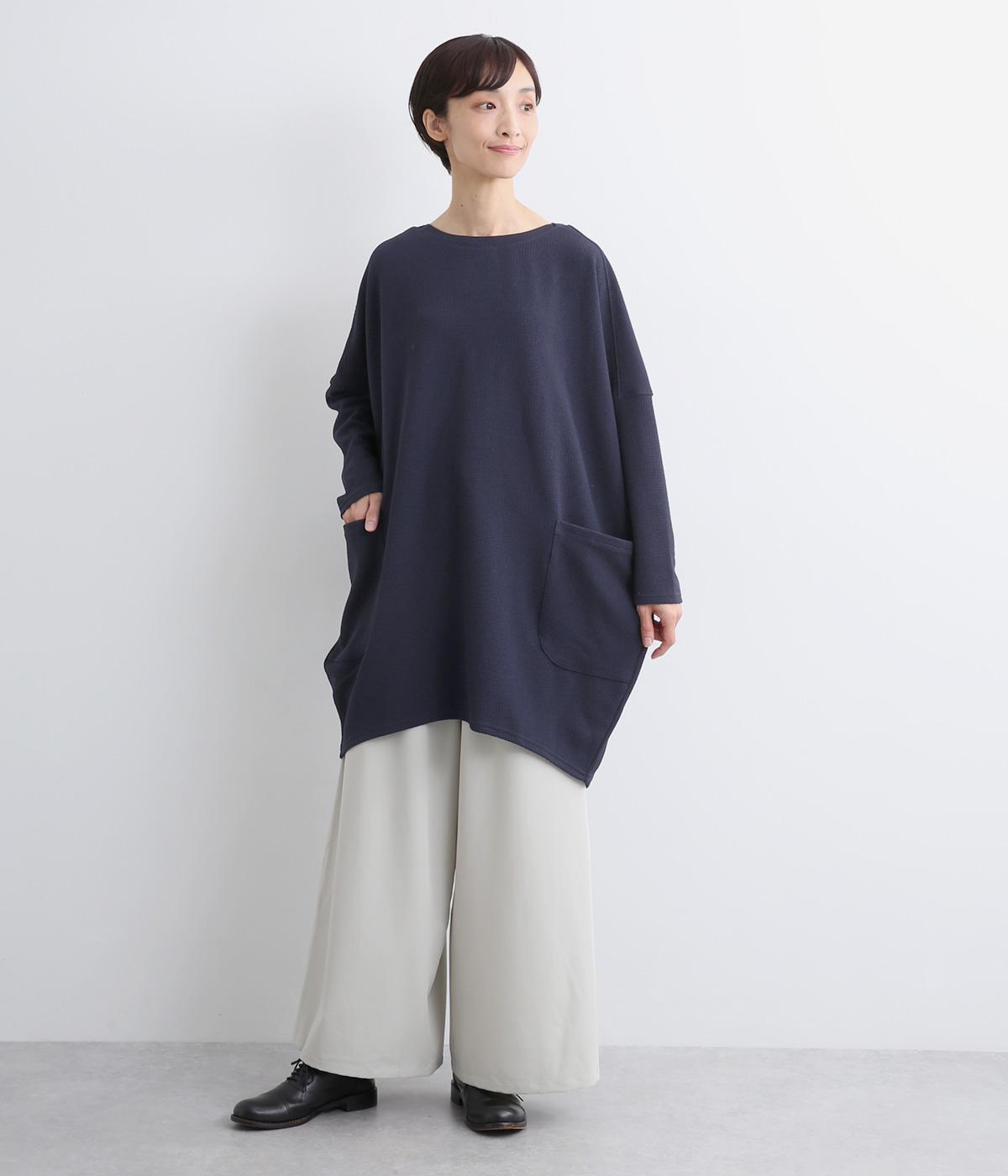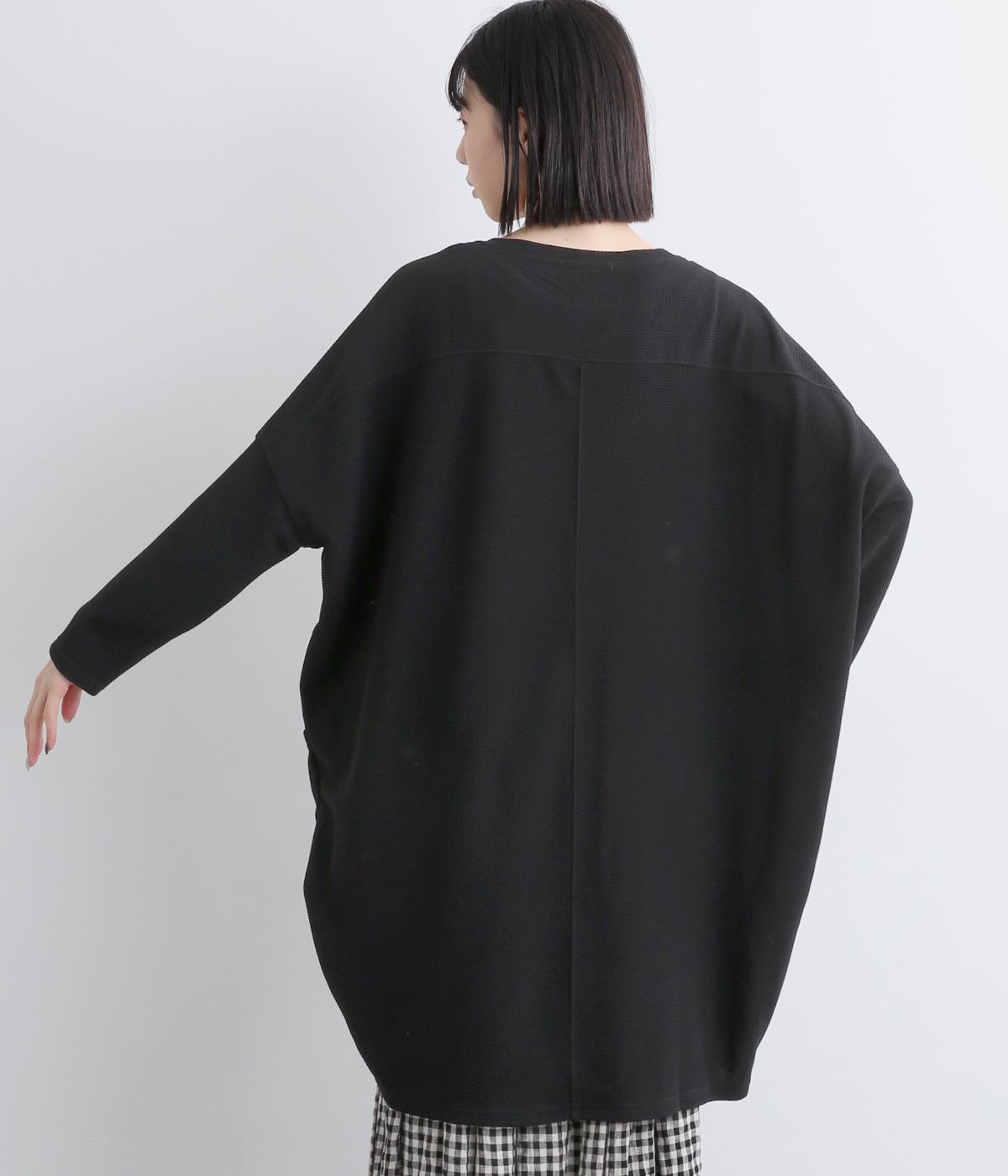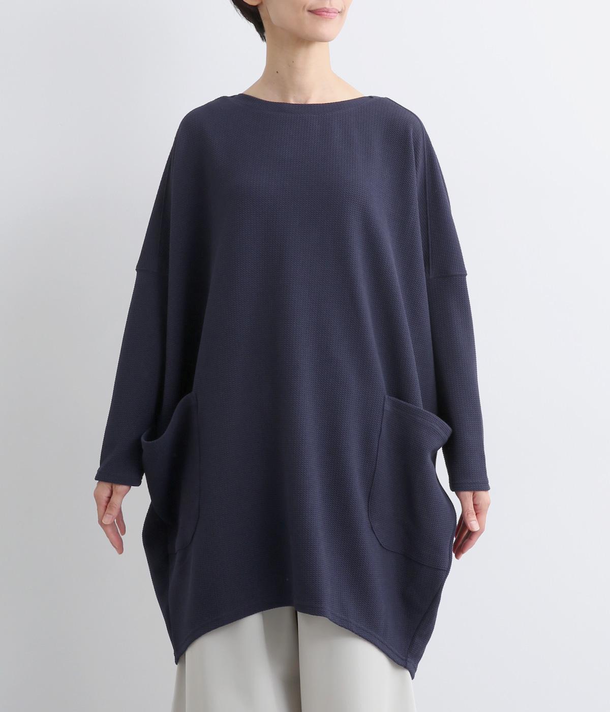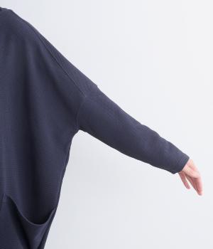 ワイドなサイジングで丸いシルエットが特徴のコクーンワンピースです。ボートネックは一工夫した仕様で、首元をすっきりと見せてくれます。機能性もデザイン性も高い、大きなポケットつきです。