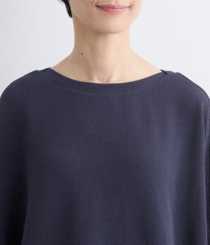 エンボスのようなポコポコした表面感が特徴的な生地を使用しました。伸縮性が高く、やわらかな肌ざわりで快適な着心地が叶います。