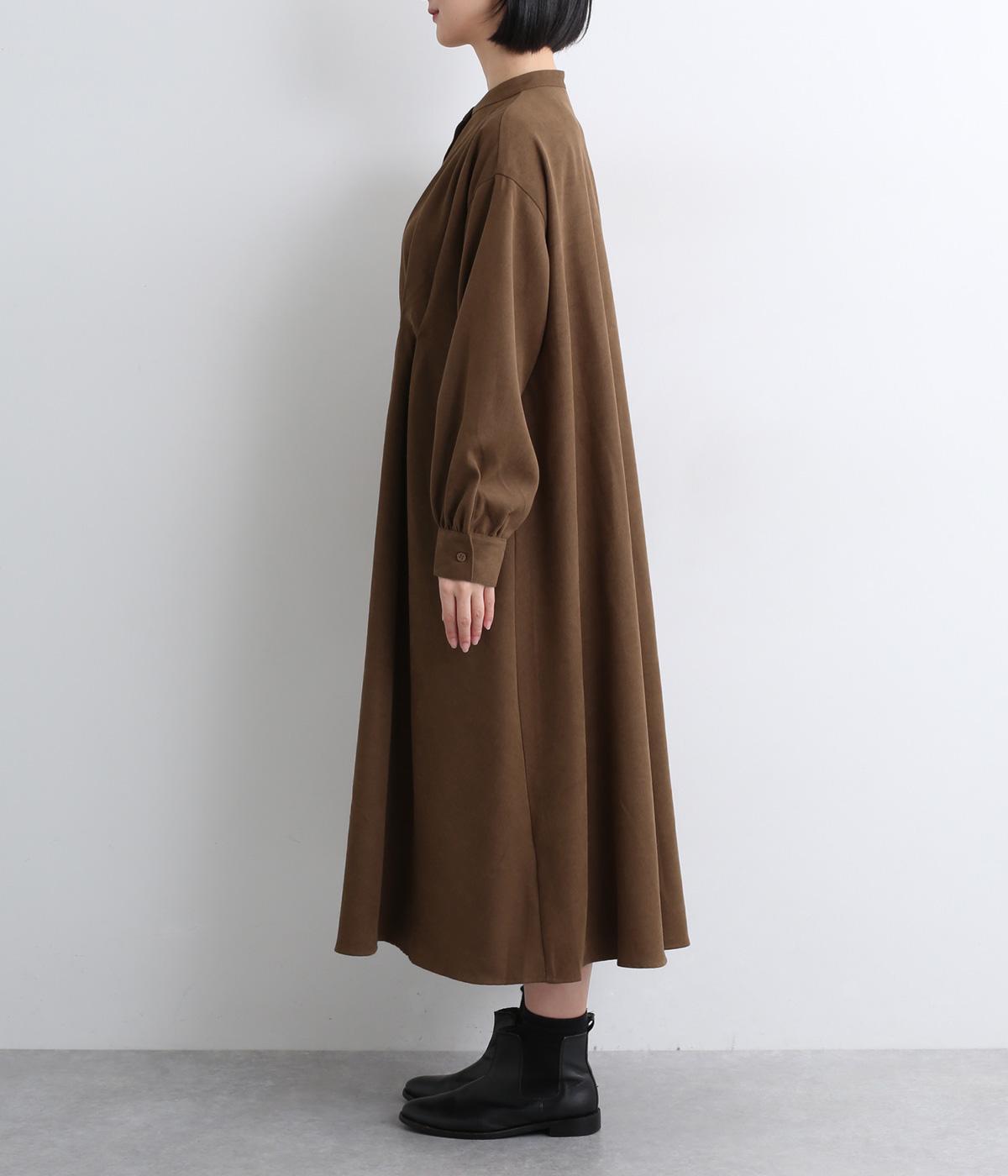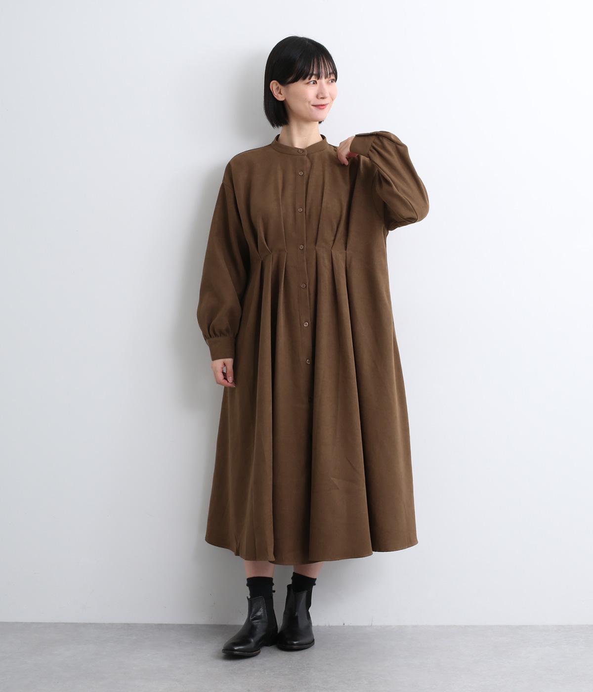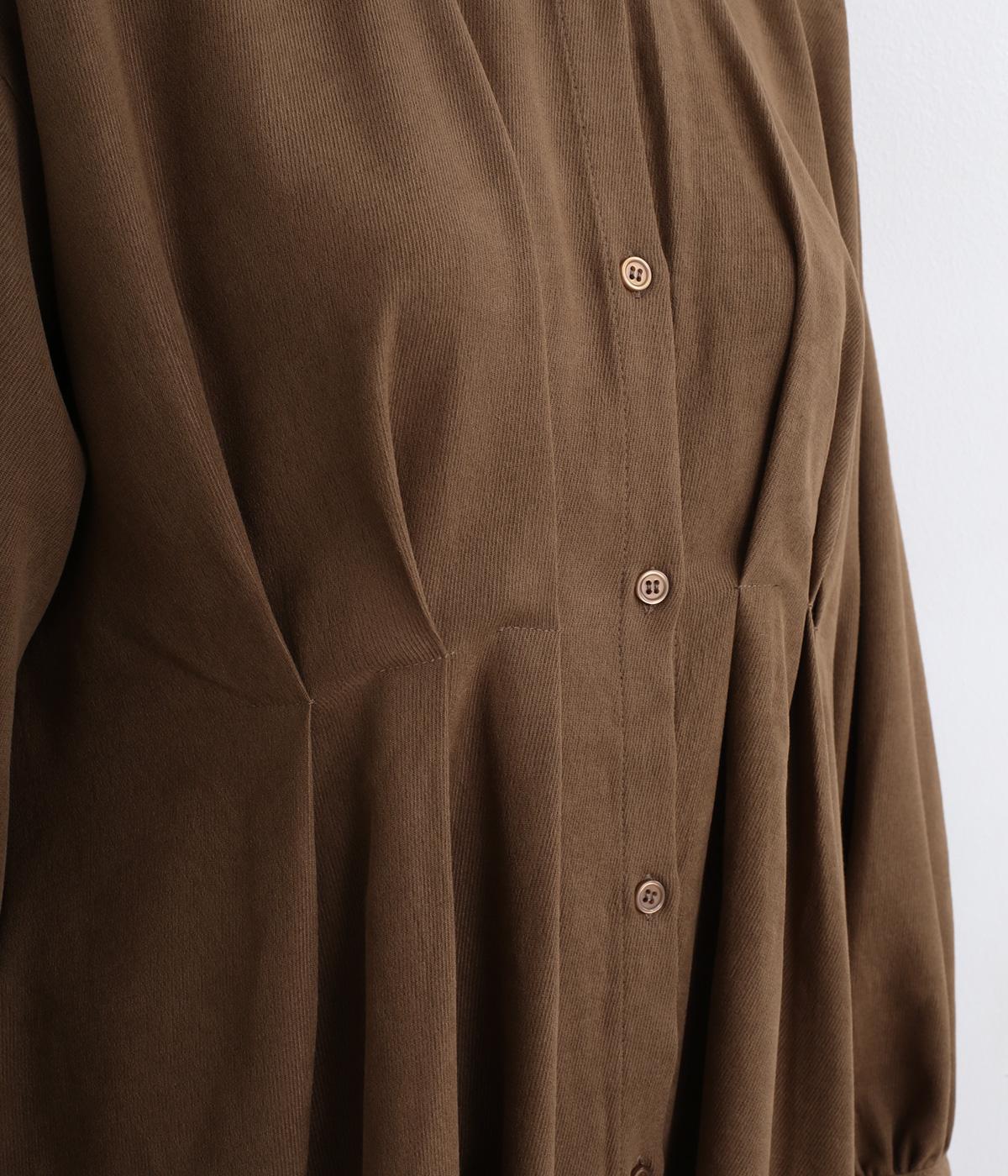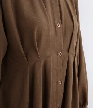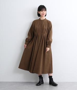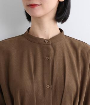 前後に入れたタックディテールが特徴的で、シンプルなのに着映えする一枚。自然なドレープ感やフレアな裾まわりが優雅な印象で、シンプルな合わせでもさまになります。前あきなので羽織り使いもこなれ感が出ておすすめ。