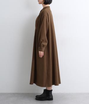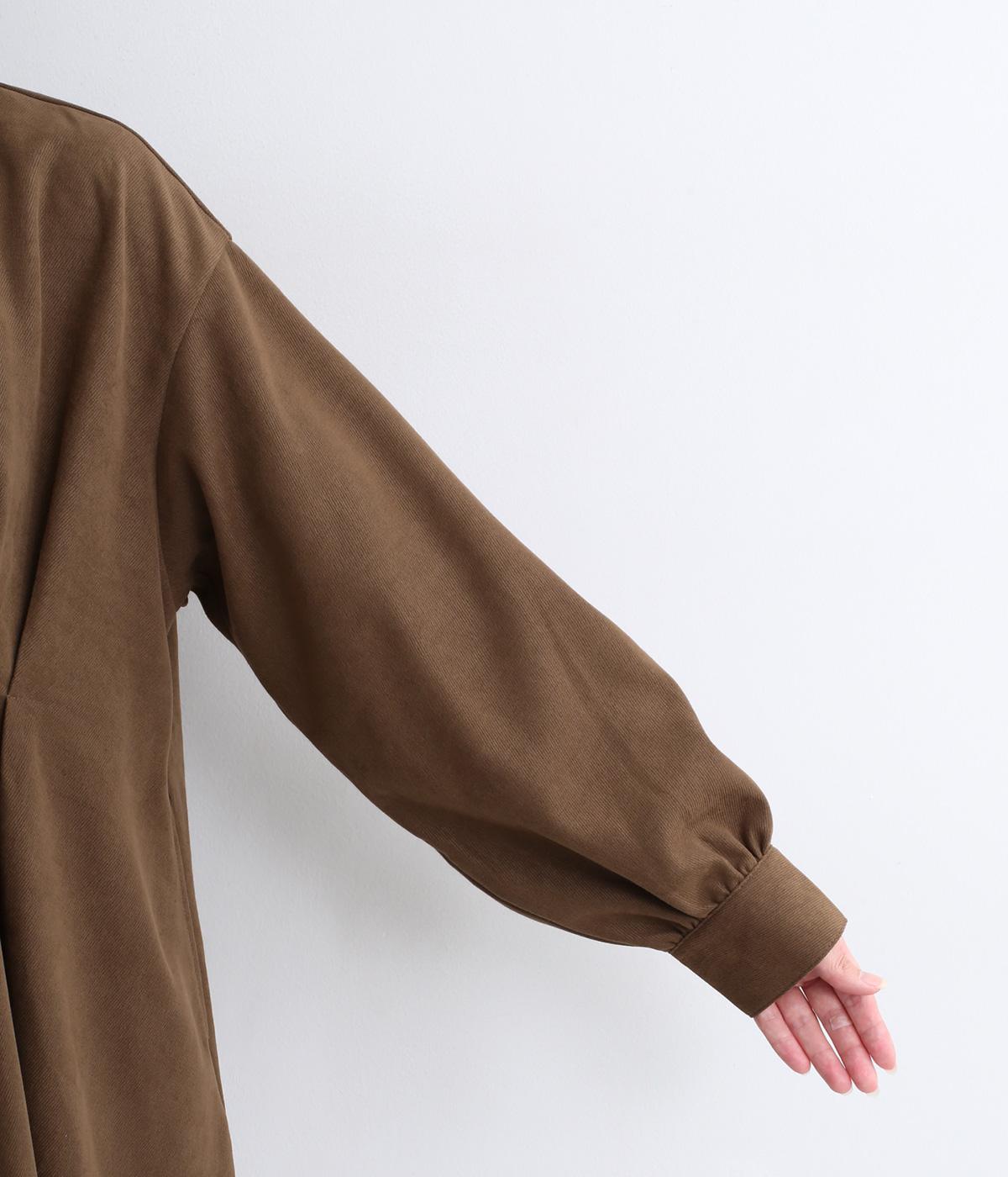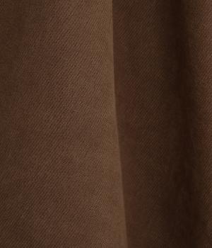 コーデュロイのような細畝感のある混紡生地を使用。ほのかな光沢やソフトであたたかみのある表面感が特徴で、肉厚すぎず着こなしやすい生地感です。