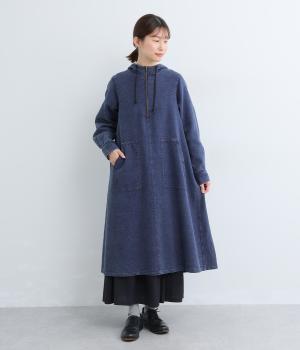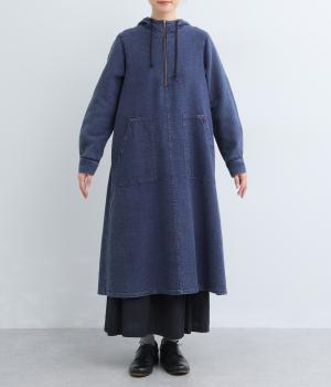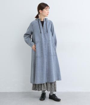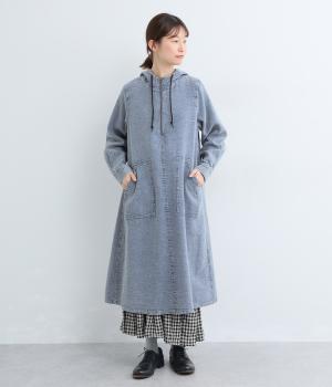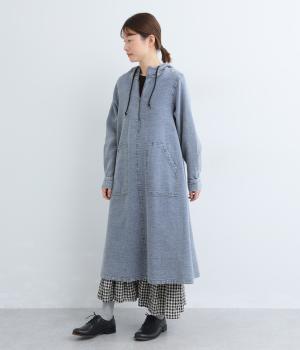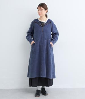 くったりとしたフードがカジュアル感を後押しするワンピースです。サッと一枚で着るだけでスタイリングが完成し、ほどよいゆとりのあるシルエットでスカートやパンツと重ねたレイヤードスタイルもおすすめです。