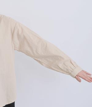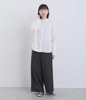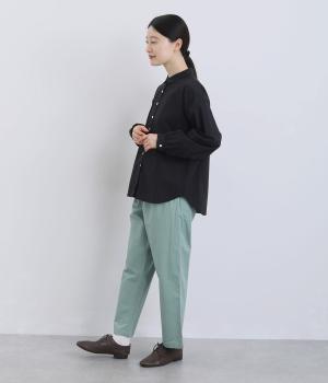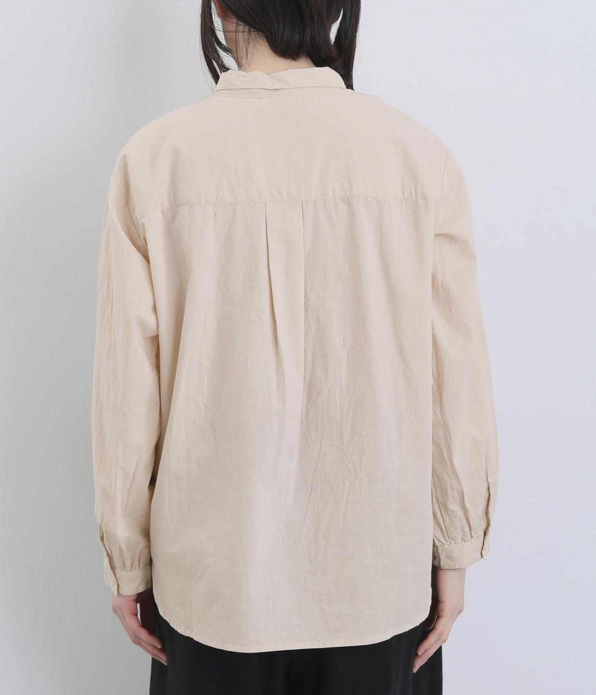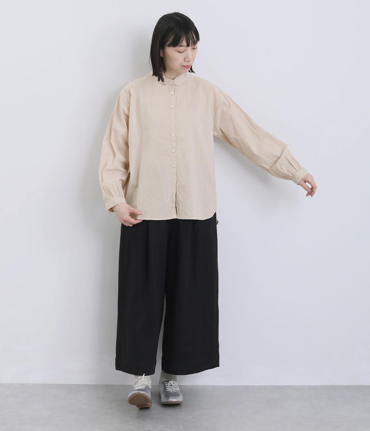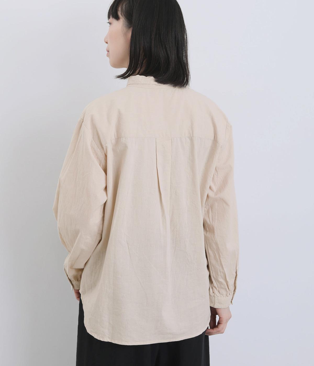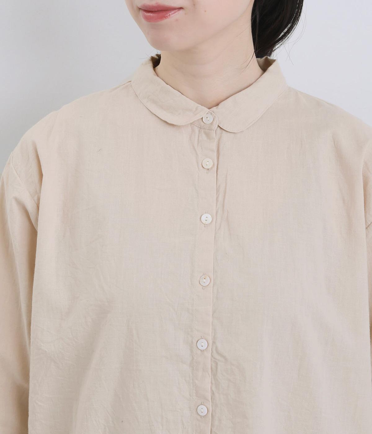 シンプルで着まわしやすいレギュラーシャツを、ほどよくフィットするサイズ感で仕立てました。丸みのある襟元と袖口に寄せたギャザーがやさしい表情を添え、女性らしい印象に。インナーとして重ねるのはもちろん、前をあけて羽織りとしてもたのしめる、着まわしに活躍する一枚です。